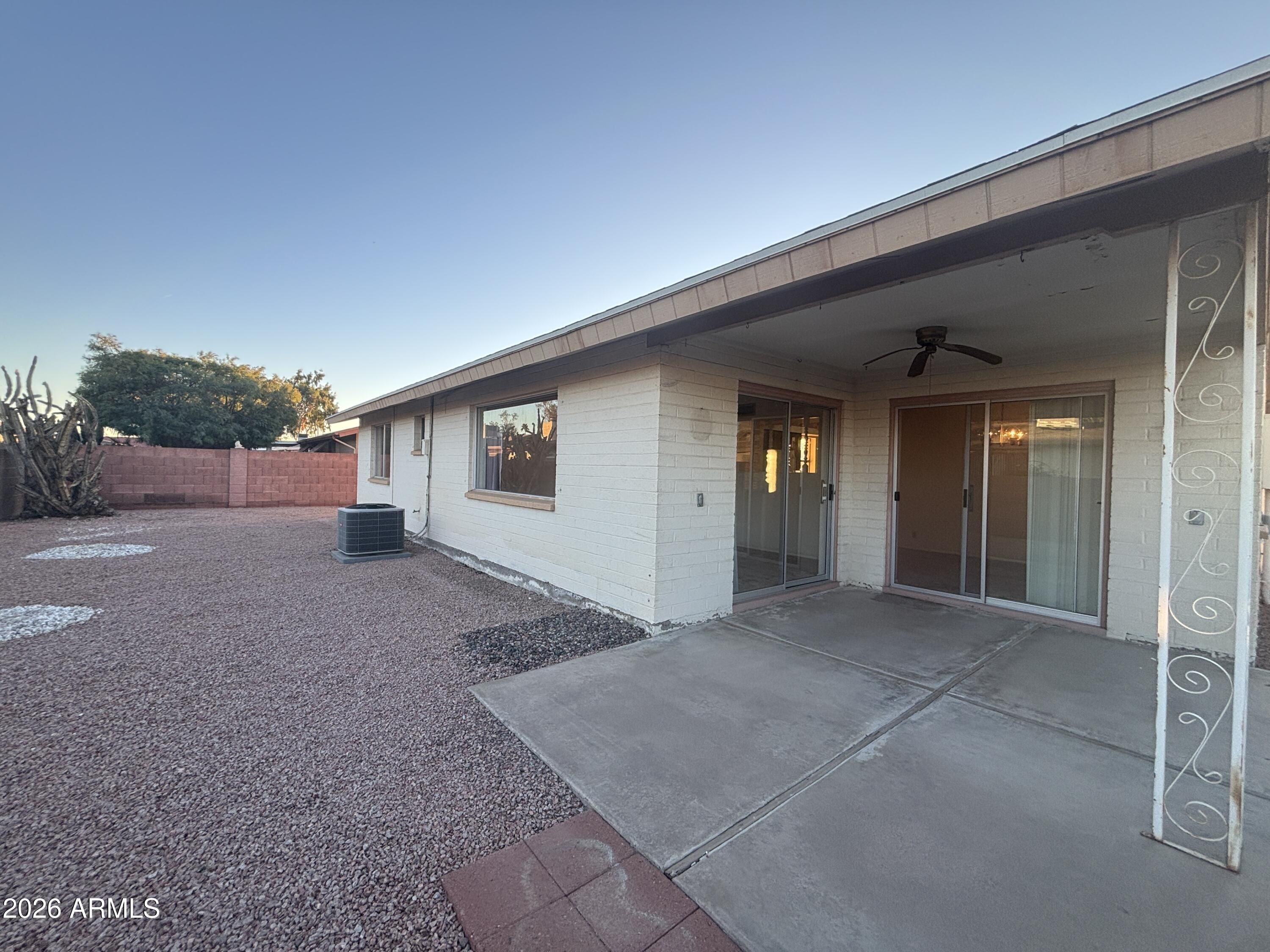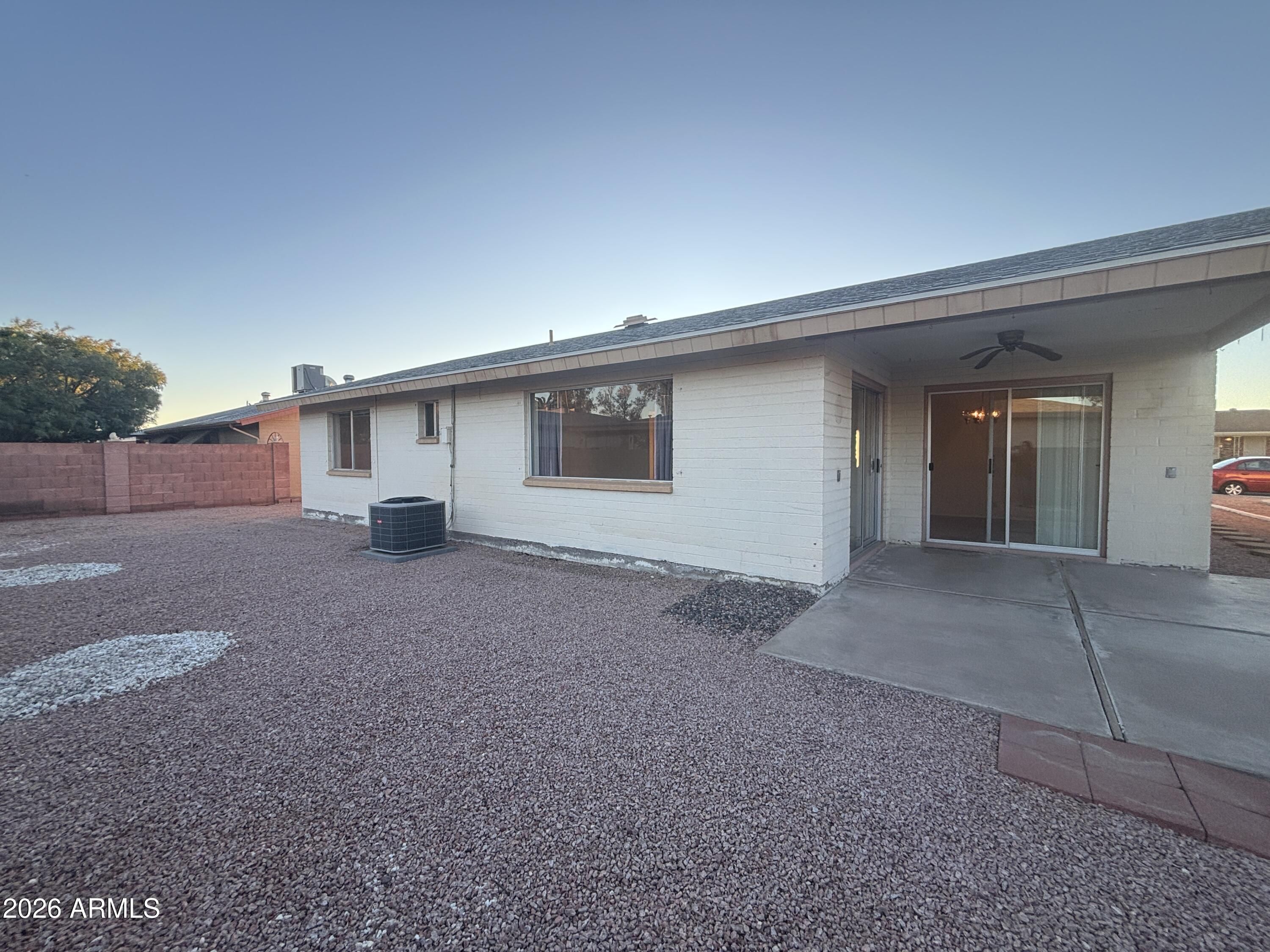 Charming 2 bedroom, 2 bathroom home in Sunland Village, a 55+ Community. West/East facing, 1262 sq ft. Main bedroom has full bath. Second bedroom has walk-in closet. Kitchen equipped with refrigerator and wall oven with connecting formal dining room. Indoor washer and dryer included. Covered back patio with lovely back yard. Priced for current condition, being sold AS IS, no repairs. Sunland Village has many community amenities, events and activities for all interests. Buyer to pay one time $2000 Capital Improvement Fee.