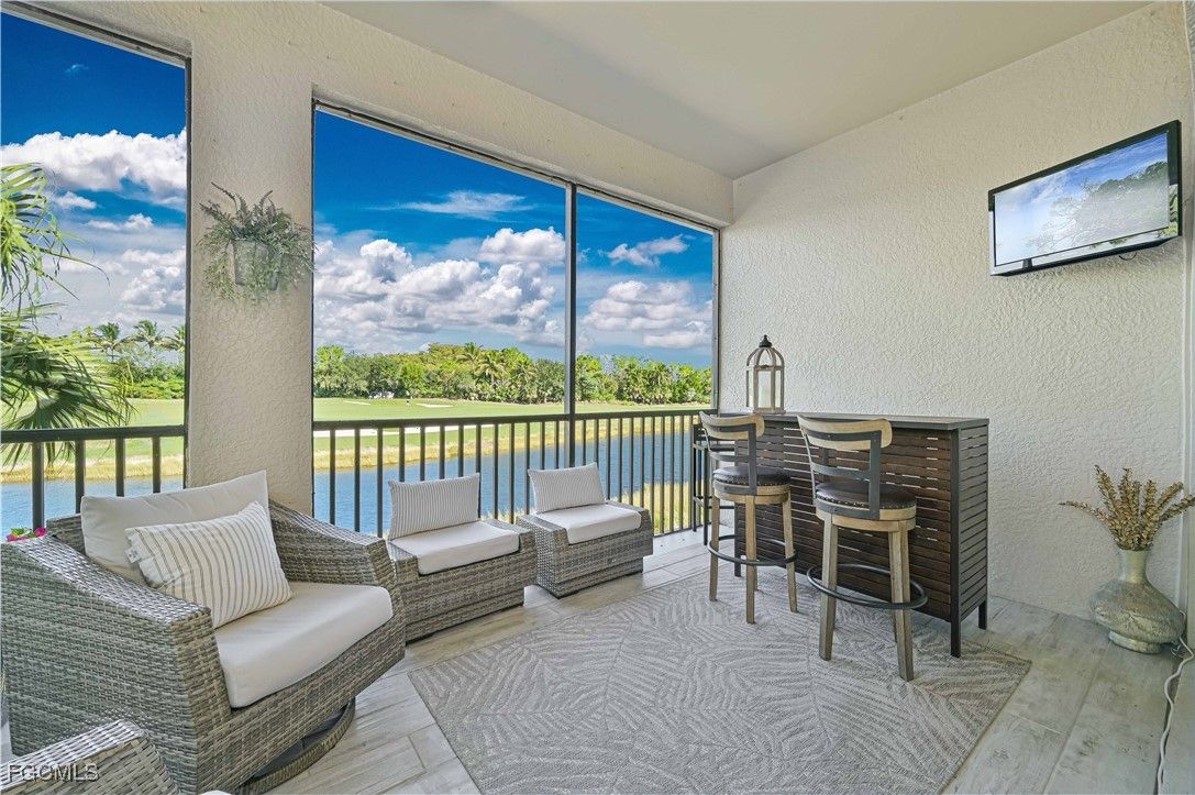 Welcome to your private retreat in The Plantation Somerset, where exceptional comfort meets serene golf and lake views. This beautifully maintained second-floor carriage home is being offered TURNKEY. The home features 3 bedrooms plus a den, 2.5 baths, and 2,297 square feet of light, open living space overlooking the 7th fairway. The upgraded kitchen stands out with new quartz countertops, a farmhouse-style sink, upgraded cabinetry & backspash, stainless steel appliances, and Instant Hot Water. The great room offers coffered ceilings, diagonal tile flooring, and a bright breakfast area surrounded by windows. Dual sliding glass doors open to an expansive screened lanai that provides both privacy and spectacular views. The spacious owner’s suite enjoys the same tranquil outlook, along with electric room-darkening shades, two walk-in closets, and a spa-inspired bath featuring split vanities, new quartz counters, a soaking tub, and a separate walk-in shower. The den works perfectly as a home office, while two additional guest bedrooms offer plenty of space for family and visitors. A two-car garage adds convenience and storage. Residents of Somerset enjoy low HOA fees that include cable, high-speed internet, lawn and landscape care, pest control, water, trash, exterior maintenance and insurance, plus access to a full lineup of amenities. Enjoy tennis, pickleball, bocce ball, a fitness center, two resort-style pools and spa, vibrant social activities, and more. Within the community gates sits The Plantation Golf & Country Club, home to a championship Hurdzan-Fry designed 18-hole course, clubhouse, and dining options. Membership remains optional, allowing you to tailor your lifestyle. Located minutes from I-75, top shopping and dining, RSW airport, and beautiful Gulf Coast beaches, this home delivers the ultimate blend of relaxation, recreation, and convenience. A must-see opportunity for those seeking the best of Fort Myers living.