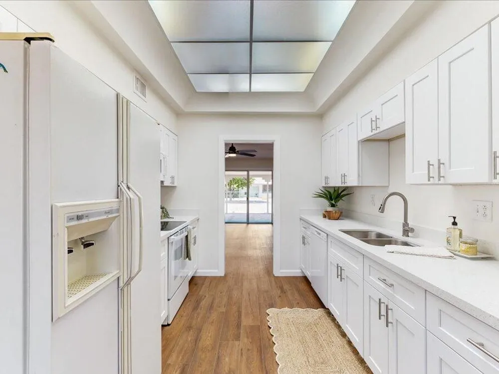 Beautifully renovated home on an excellent interior lot. Inside you'll find an open floorplan featuring a huge, light-filled great room, casual dining area & new luxury vinyl plank flooring throughout. Completely updated kitchen features NEW cabinets, quartz counter-tops, hardware, oven, microwave, dishwasher, sink & pull-down faucet. Bathrooms have new cabinets, quarts countertops, sinks & faucets. Freshly painted inside & out. The home boast a generous laundry area & versatile craft/hobby room with wash sink, workbench & brand new wall AC/Heat unit. Garage cabinets provide tons of extra storage. This home also features a huge extended covered patio w/ brand new roof. Enjoy all that Sun City has to offer including GOLF courses & Recreation. Conveniently located near the AZ-101 . This charming 2-bedroom, 2-bathroom single level home is nestled perfectly in the heart of it all with 1541 sq ft of living space, plus a bonus room for your office, hobbies or crafts. Spacious backyard with huge covered patio & gas BBQ for your outdoor enjoyment. But what truly sets this house apart is its location in Sun City; a master-planned community that continues to attract residents from all over the country due to its outstanding amenities: 8 Recreation Centers: Each offering unique amenities and activities. With state-of-the art fitness and indoor/outdoor pools pickleball courts, tennis, racquetball and basketball courts, staying active has never been easier. Golf Courses: The community features 8 golf courses and a golf simulator for residents to enjoy. Enjoy year round. Clubs and Activities: Over 120 chartered clubs and organizations, there is something for everyone, from arts and crafts to sports, dance, photography, woodworking, and social activities. Bowling Centers: Two bowling centers are available for residents. Social halls provide spaces for meetings, dances and other gatherings. Fitness Centers: State-of-the-art fitness centers are available at various locations. Swimming Pools: Multiple indoor and outdoor swimming pools, including lap pools and spas. Performance & Arts -Enjoy concerts, live theatre, art classes and gallery exhibits right in your own neighborhood. Community Events- Crafts fairs, Farmer's markets, car shows and seasonal festivals to keep your social calendar booked. Residents can also enjoy activities like pickleball (20 pickleball courts), tennis, racquetball, softball, mini-golf, shuffleboard, billiards, and darts. Convenient location- close to healthcare, shopping, dining and major freeways, the Cardinal Stadium, and Spring training ballparks. Sun City is not just a place to live. It is a place to enjoy a community and active lifestyle!