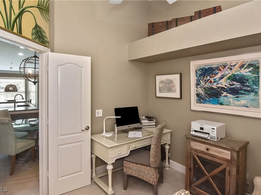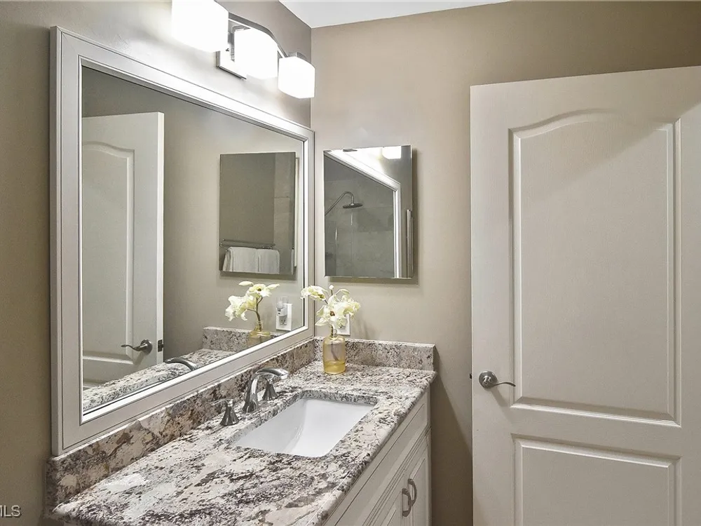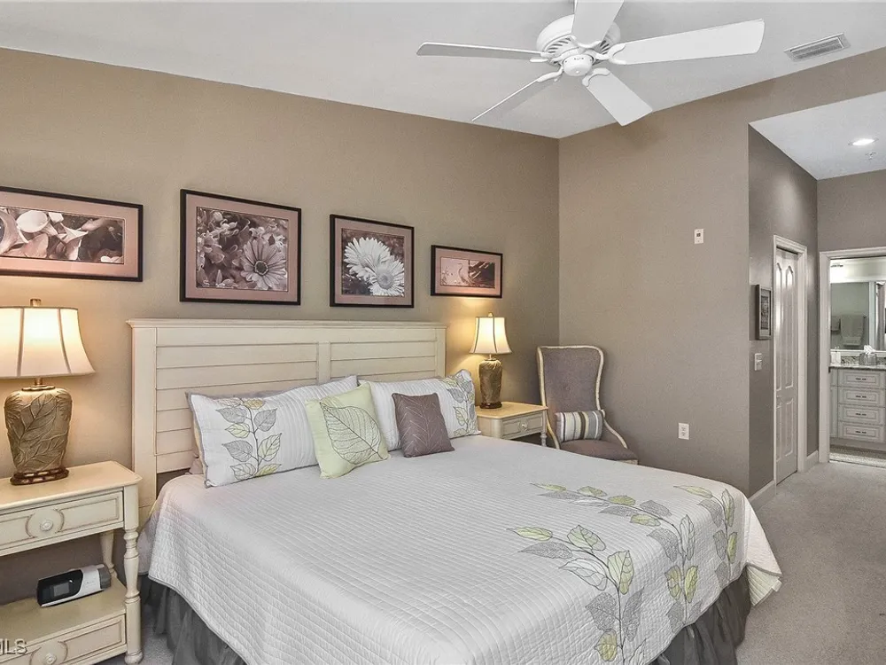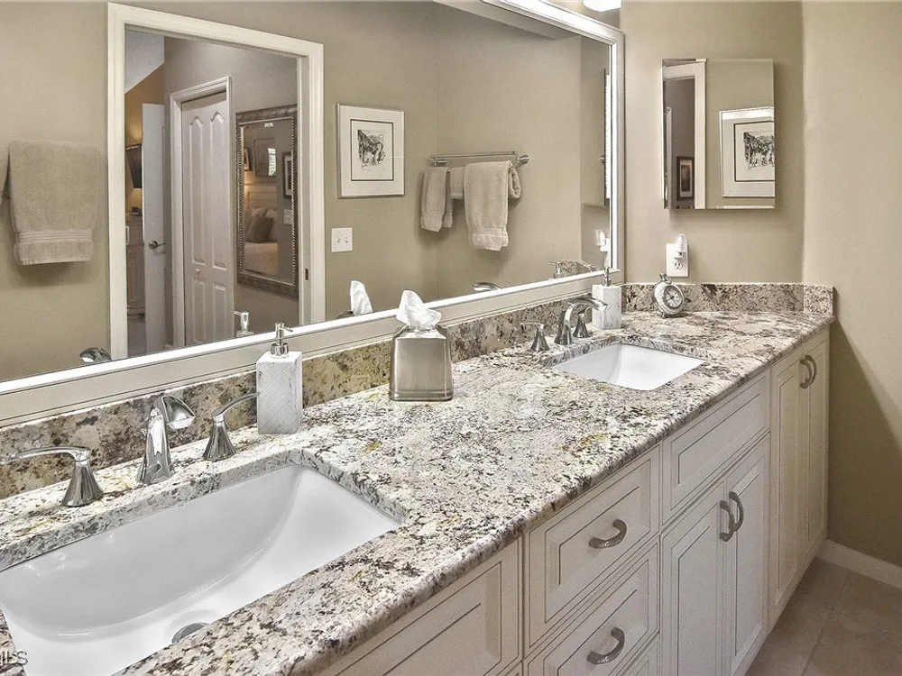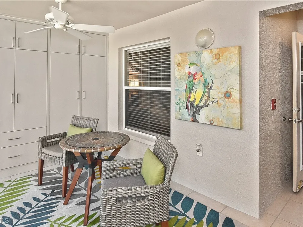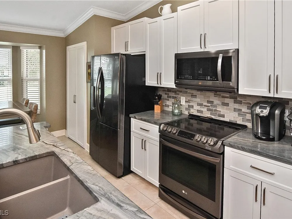 UPDATED AND MOVE IN READY! This beautiful condo definitely checks all the boxes! The sought-after Dogwood floor plan shines with thoughtful renovations and modern upgrades. Enjoy breathtaking lake and golf course views overlooking the 16th hole of Royal with southern exposure with sliding doors that pocket. Featuring 2 bedroom+ den 2 bath, and private garage, this home blends style with comfort. The kitchen impresses with granite countertops, sleek backsplash, crisp white cabinetry, LED canned lights, updated fixtures and newer LG appliances (2019). Both bathrooms offer step in showers tiled to ceiling, frameless glass doors and beautiful vanities while tile seamlessly flows throughout main living space. You will have peace of mind knowing your home is equipped with Storm Smart electric screen on lanai and 3 impact glass windows in kitchen. MORE HIGHLIGHTS include brand new washer & dryer in 2025, both AC unit and water heater were replaced late 2021, lead glass entrance door, new garage door opener (2024) and custom California Closets on lanai for additional storage and extra wide baseboards throughout! Meticulously cared for, this condo is a true gem! Even the air ducts have been cleaned and sanitized this year! This building sit on a quiet street and close to the neighborhood pool. Located in the highly desirable Heritage Palms Golf & Country Club, a gated community offering amenities including 36 holes of championship golf with a driving range, practice putting and chipping greens. The community also features 8 tennis courts, 4 pickleball courts, 9 community pools total, along with a newly, almost completed, OASIS/ TIKI POOL BAR. Conveniently located for easy access to I-75, Minnesota Twins Spring Training Facility, JetBlue Park, and RSW International Airport, this property is the ideal spot to enjoy SW Florida living at its finest. SCHEDULE YOUR SHOWING TODAY!