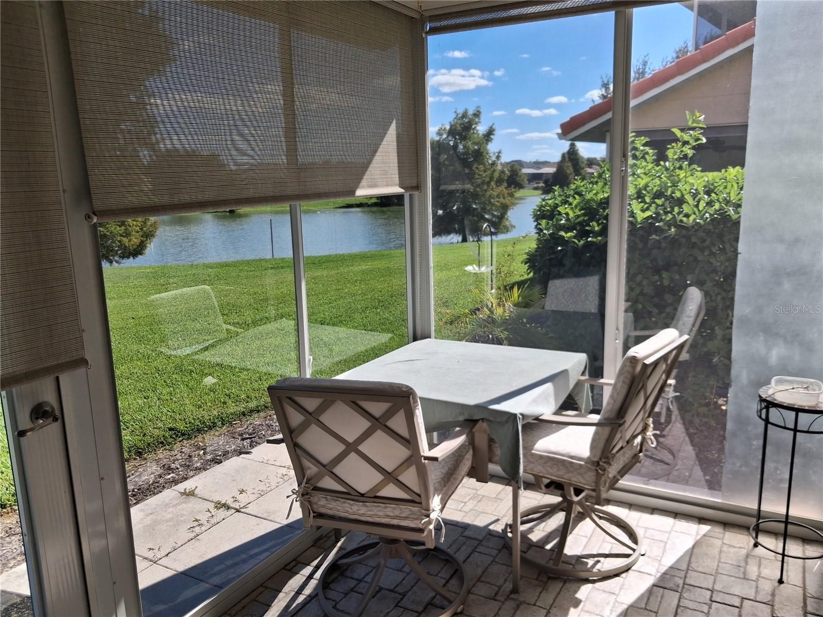 HONEY STOP THE CAR! Want an affordable lake side home? - This lovely pristine 2 bedroom condo has a restful view of the lake. Shown with furniture, it is priced as vacant. However all furniture dishes etc are available at a nominal additional price. This sweet unit makes an excellent safe home for Snowbirds or a great home for visiting friends, family or as a profitable rental. It's a maintenance free condo located in beautiful Lakeside Landings. Centrally located at the edge of the Villages, A quick drive to shopping and entertainment in any of The Villages Squares that boast nightly entertainment and plenty of shops. Just a short walk to impressive clubhouse with a fitness center, billiards room, card room, library, banquet hall with dance floor, stage and catering kitchen. Also includes a Resort Rated pool with waterfalls,pool, spa, cabana and tennis courts, along with another smaller pool with hot tub. You will love it here in this home.