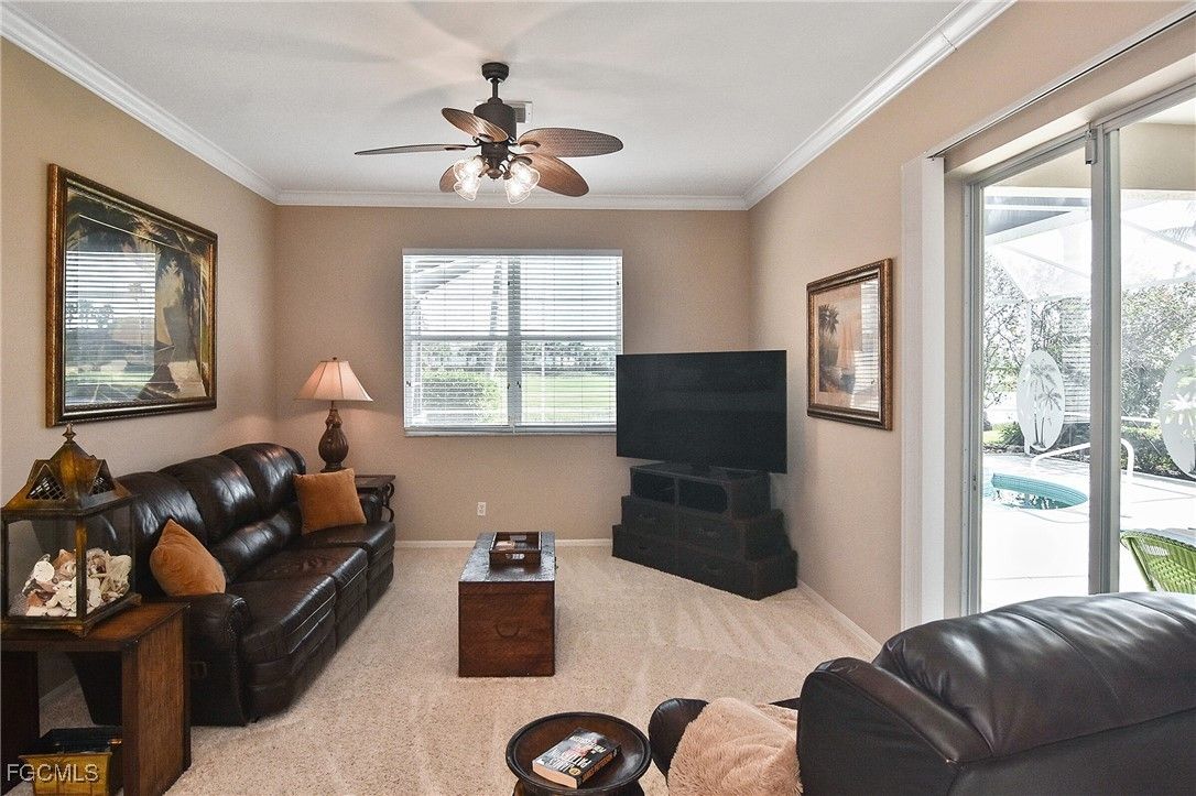 This is the home you have been waiting for! The largest floor plan of all villas in Heritage Palms, this DOVER FLEX with a pool and golf course view is now available! With over 1800 sqft of living space, this 3 bedroom, 2 bathroom home offers an open floor plan with an extended family room great for large families or entertaining. Located at the end of a quiet road, you will appreciate the beautiful lake view while watching the golfers on your spacious lanai. Kitchen has new cabinets and newer stainless-steel appliances. Heritage Palms truly has something for everyone: 36 holes of golf, Active tennis & pickleball, 9 pools, Full fitness center with classes & Endless clubs, activities & social events. Surrounded by nature preserves with walking trails and just minutes to shopping, dining, entertainment, RSW Airport, and more, Heritage Palms Golf & Country Club is the ideal Southwest Florida lifestyle. Schedule your showing today—and don’t forget to explore the Virtual Tour for even more stunning photos