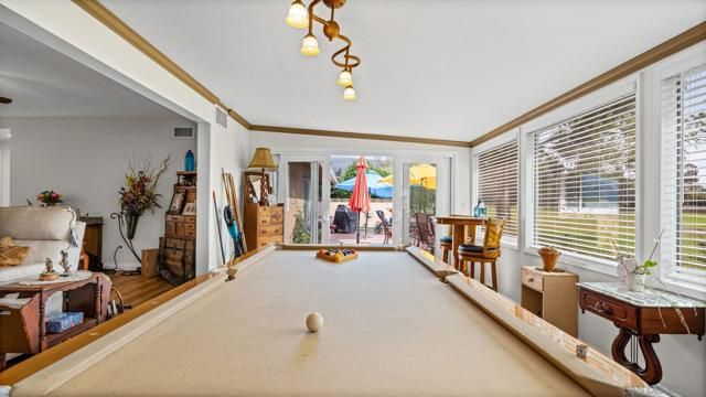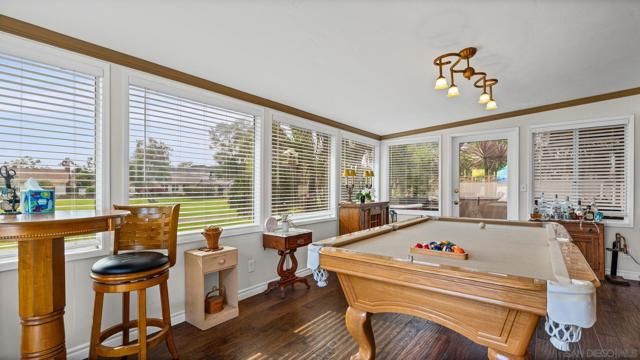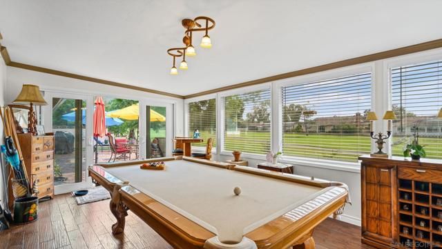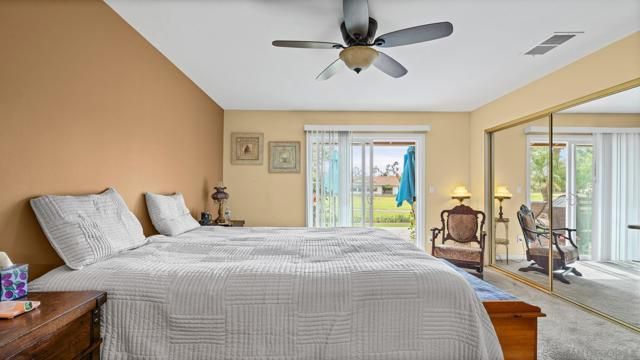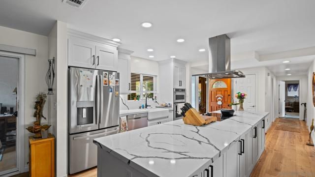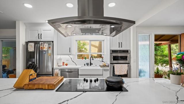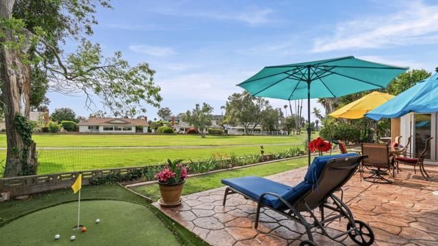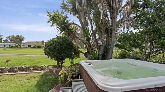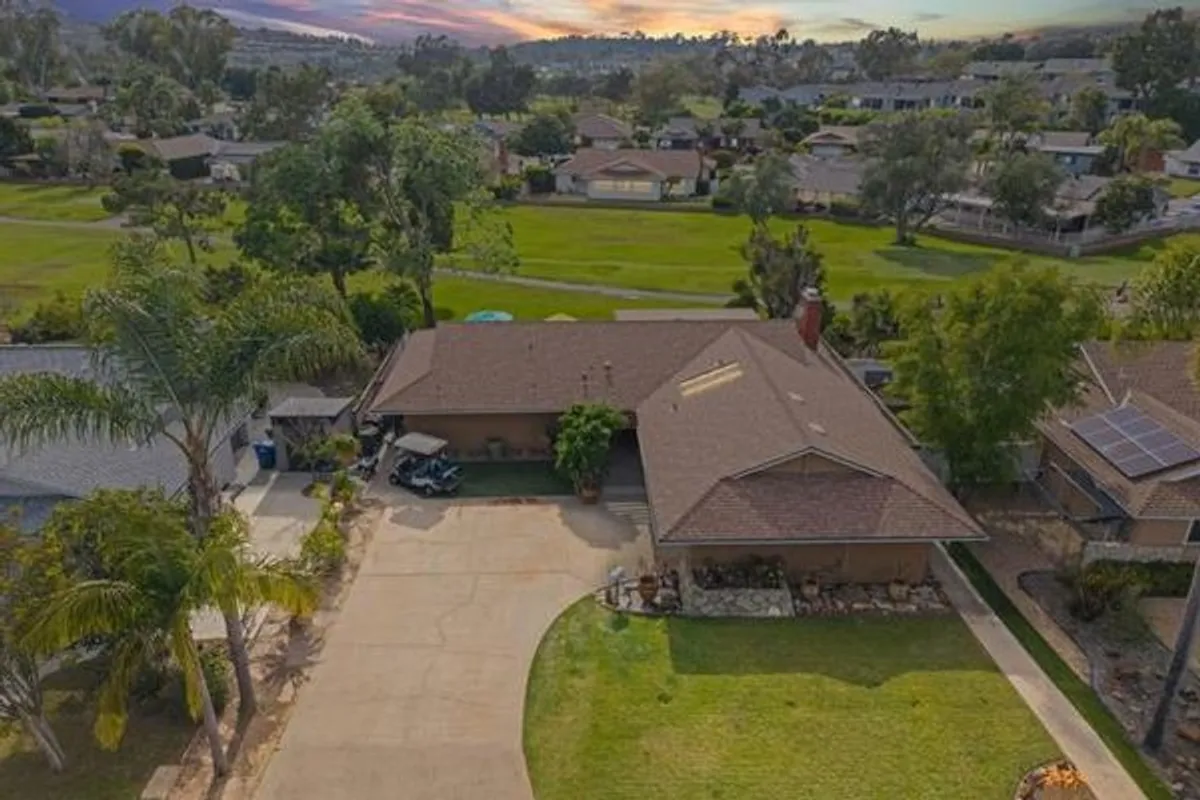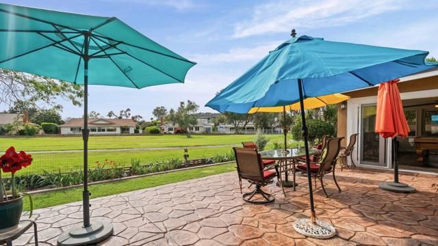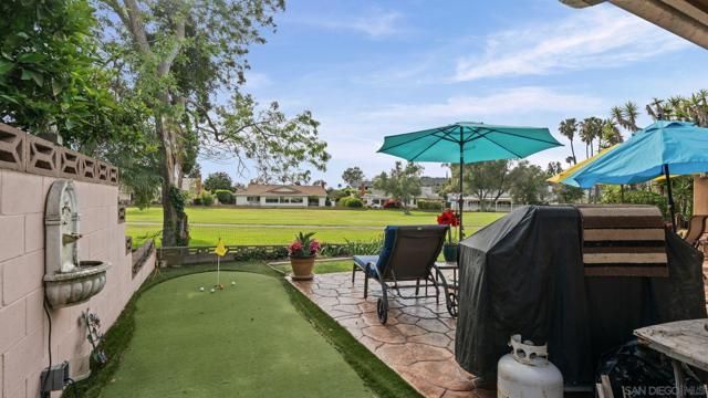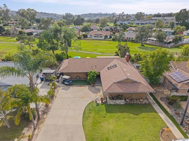 Set directly on the 12th fairway of The Links at Lakehouse Resort, this is one of the rare homes in Lake San Marcos where the golf course really is the backyard. It's a 2-bedroom, 2-bathroom, 1,700-square-foot single-level home, carefully updated to pair the warmth of its mid-century roots with the polish of a modern remodel. Inside, an open floor plan fills with natural light and fairway views framed by mature oaks. The remodeled kitchen sits at the center, with a generous island, quartz counters, wood cabinetry, and stainless steel appliances that work as well for a morning cup of coffee as they do for hosting a crowd. A gas fireplace warms the living area, and the living and dining spaces open toward the course, so the fairway ends up feeling like part of the floor plan.The primary suite looks out over the 12th hole, with morning light and end-of-day color that never gets old. The second bedroom works easily as a guest room, a home office, or a studio, and both bathrooms have been refreshed with clean, modern finishes. Beneath the finishes, the big-ticket items have already been handled: new roof, new HVAC, and a complete re-pipe. With a $540/year HOA and no Mello-Roos, the carrying cost stays refreshingly low for a home on The Links. Beyond the property line, the Lake San Marcos lifestyle does most of the talking. A 75-acre private lake, two 18-hole courses, a full marina, pickleball and tennis, resort pools, and Brickman's just off the 18th green. Carlsbad beaches are twenty minutes west; downtown San Diego is forty-five south.