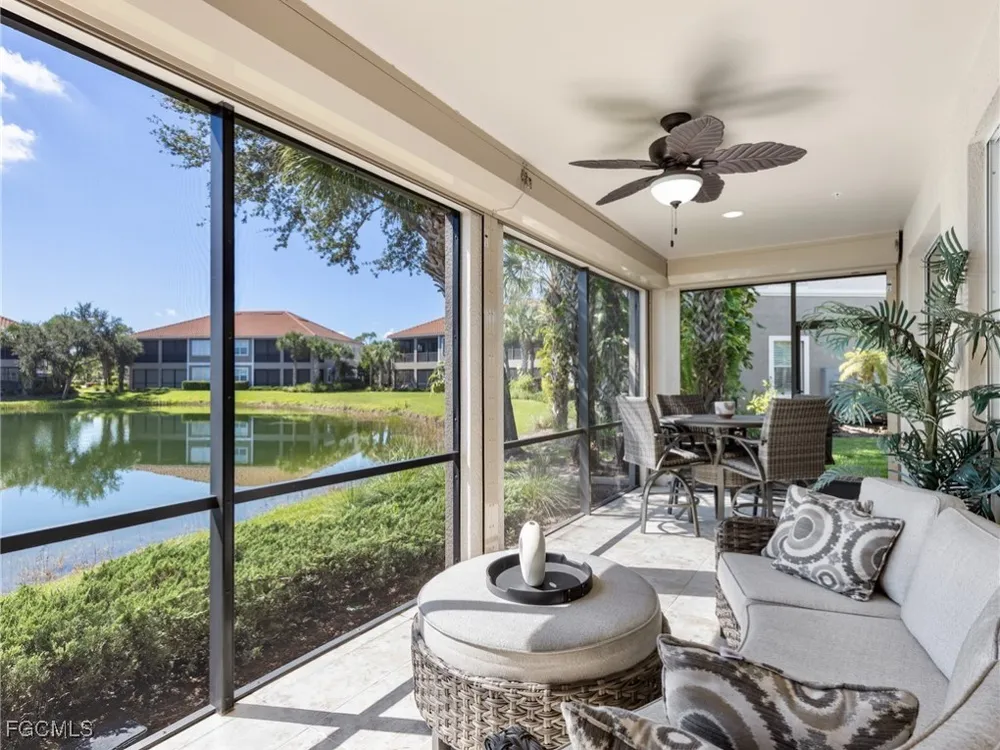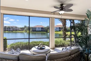 Discover the opportunity to reside in one of Southwest Florida's most sought-after communities—Somerset at The Plantation. This "Turnkey" first-floor condo features 2 bedrooms plus a den and offers more than 1,500 square feet of living space. Enjoy breathtaking views of lush landscaping and the expansive lake from your home. The main living areas of the condo are adorned with tile flooring, while the bedrooms are comfortably carpeted. The open and bright layout ensures abundant natural light throughout. The primary bedroom is designed for privacy, being split from the other rooms, and includes two spacious walk-in closets. Designer elements enhance the condo, such as a glass-etched entry door, a tile backsplash in the kitchen, and stylish tile on the outdoor lanai. The kitchen is equipped with granite countertops and stainless steel appliances, making it both functional and visually appealing. Step out onto the large, spacious lanai, perfect for relaxing and enjoying stunning western sunsets throughout the year. Electric hurricane shutters for protection and comfort. Affordable HOA fees cover insurance, cable, internet, water, and more. You are just minutes away from the impressive amenity center, which boasts a resort-style pool and spa, tennis courts, pickleball, a fitness center, and much more. For those interested in golf or additional social opportunities, the Country Club is available, with golf membership being optional. Somerset at The Plantation is conveniently located near fine dining, excellent entertainment options, premier shopping, Major League Baseball, and the Southwest Florida International Airport. Welcome home!