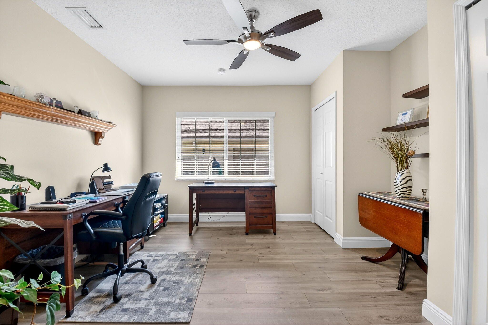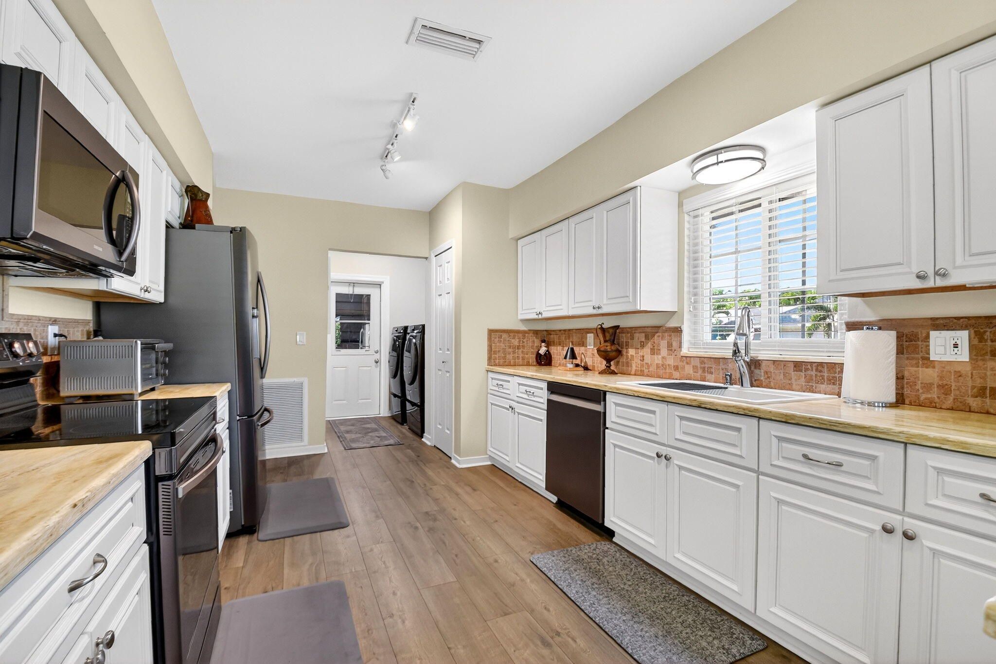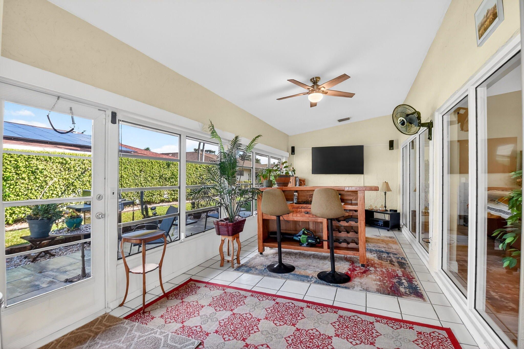 Welcome to 10260 Greentrail Drive N, a meticulously upgraded residence in the heart of Boynton Beach, Florida. This elegant home offers 2,304 square feet of thoughtfully designed living space, featuring three spacious bedrooms and a host of modern amenities that cater to both comfort and style. From 2020 to 2023, this property has undergone significant enhancements to ensure a seamless living experience. The home is equipped with a state-of-the-art Lennox Merit series HVAC system and a Lennox Elite series air handler, both backed by an extended 10-year manufacturer warranty, ensuring peace of mind for years to come. In 2022, the kitchen was upgraded with new Samsung appliances, including a refrigerator, stove, microwave, and dishwasher, providing a contemporary culinary experience. The entire home, both interior and exterior, has been freshly painted, offering a clean and inviting atmosphere. In 2021, new seamless gutters and leaders were installed, and in 2023, Tremron pavers were added to the back porch, courtyard, and side garage door, enhancing the property's curb appeal and functionality. For energy efficiency, the home features blown-in insulation with an R-38 value, installed in 2020. Safety and security are prioritized with new impact-resistant living room picture windows, a kitchen slider, front door, and garage side door, all installed in 2020, completing the whole-home impact safety, including the garage door. The flooring throughout the house, excluding the kitchen, consists of Franklin Oak laminate plank, complemented by new 6-inch baseboards. The bathrooms and enclosed back porch feature durable tile flooring. In 2021, a new Kraus 33" single bowl kitchen sink and Moen ¾ hp garbage disposal were installed, adding to the kitchen's functionality. Additional features include a Race Deck floating garage floor set for 2024, a Chamberlain model B6753T garage door opener with a camera and smartphone app for remote control and alerts, and a well pump for landscaping, reducing city water usage. Ceiling fans are installed in all rooms, and the bathrooms have been updated for modern convenience. Cable connections are available in every room, including the garage, ensuring seamless connectivity. This property is a testament to quality and thoughtful upgrades, offering a blend of modern amenities and timeless appeal. Located in a desirable area of Boynton Beach, it provides easy access to local amenities, schools, and recreational facilities. Don't miss the opportunity to own this exceptional home. Schedule a private viewing today
