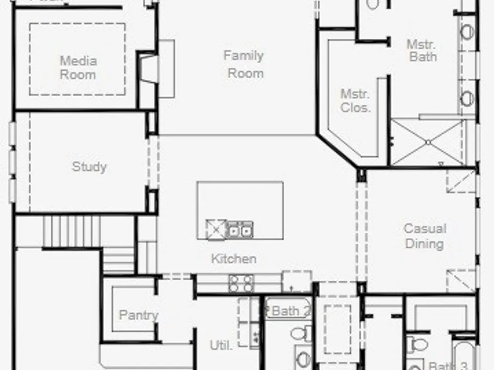 This stunning new one-story home is quickly becoming a favorite of Coventry Homes. Featuring 3 bedrooms and 3.5 baths, it showcases soaring 14-foot ceilings from the kitchen through to the great room. The game room flows into a media room and opens to a spacious covered patio—ideal for outdoor entertaining. A generous study with elegant French doors sits just off the main living area, offering a quiet space to work or unwind. Each bedroom includes its own private bath, providing comfort and privacy for guests. The secluded, luxurious primary suite features a beautiful bay window, perfect for a sitting area. The primary bath includes a large walk-in shower with a built-in seat. This home truly has it all. Don’t miss your chance to make it yours—schedule a tour today!
