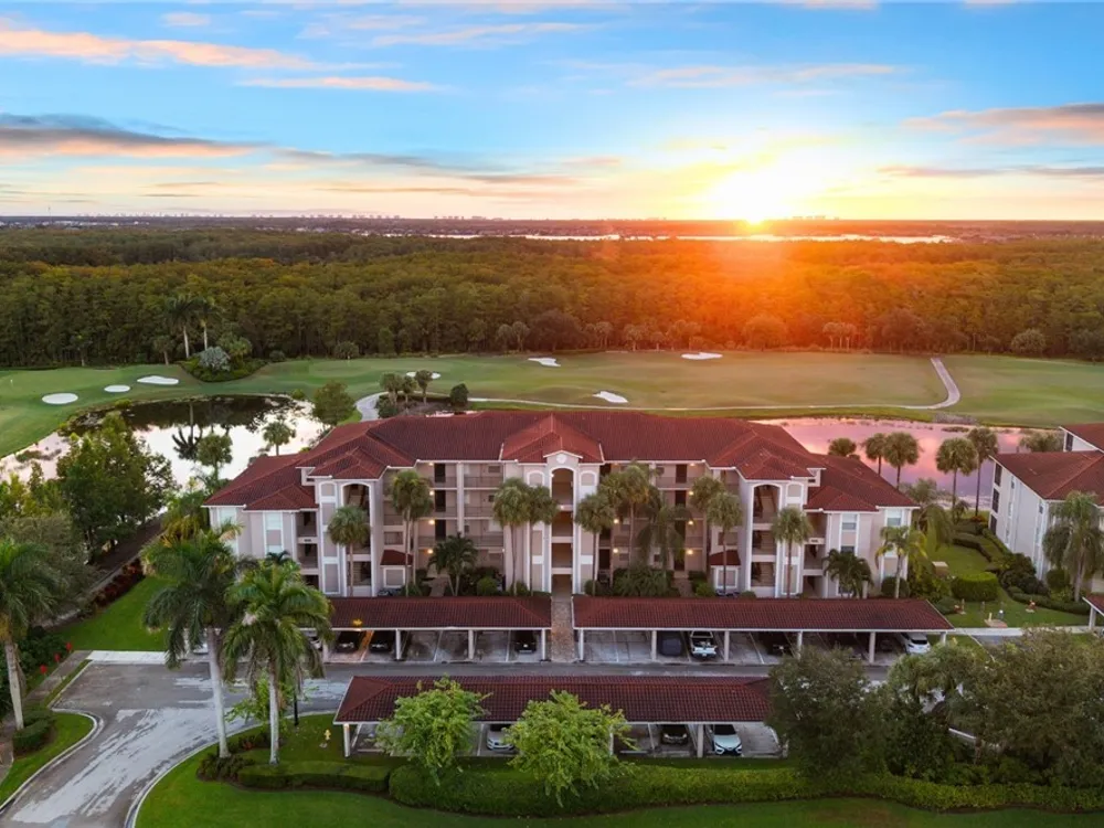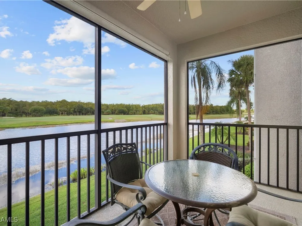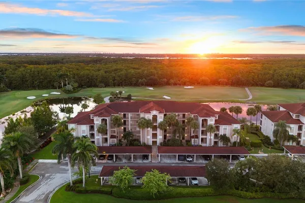 Immaculate 2nd floor "Brookside" model Terrace condo at Heritage Bay, where your FULL membership to 27 holes of championship golf is INCLUDED with purchase! Located in the very first Terrace condo building, about 1/3 of a mile from the bag drop, aqua range and putting greens, clubhouse, tennis, pickle ball, & bocce courts, and the resort-style pool & poolside "Cabana" bar & grille! The "Brookside" model features an open, great room layout, and this one has a GORGEOUS panoramic golf, water, & preserve view that you can watch the sun go down behind every night from your screened lanai! Tastefully decorated and furnished, fully turnkey (MOVE IN READY, just bring your golf clubs!) with high quality furnishings and fixtures, and added luxury wood-like flooring in the bedrooms. This condo features hurricane IMPACT glass and windows throughout for peace of mind, and the A/C was replaced in 2021. There is also a generously sized storage unit outside the front door, with plenty of space to put all of your stuff! Heritage Bay pairs luxury living with endless recreation, starting with its 27-hole Lewis-Azinger designed golf course and aqua driving range. The grand clubhouse anchors the community with diverse dining options, elegant event spaces, and a lively social scene. Dine at The Grille Room, a casual indoor/outdoor bar & dining area showcasing an incredible southern view of the 27th green. Outdoors, a resort-style pool area with heated spa is complemented by “The Cabana” poolside bar & grille featuring a full-service kitchen. Heritage Bay also features top-notch tennis program with 7 Har-Tru clay courts, plus pickleball and bocce courts, and a state-of-the-art fitness center. With a calendar full of events and activities, Heritage Bay delivers a vibrant, luxurious lifestyle—ideal for golf enthusiasts and those seeking serene views and refined living.