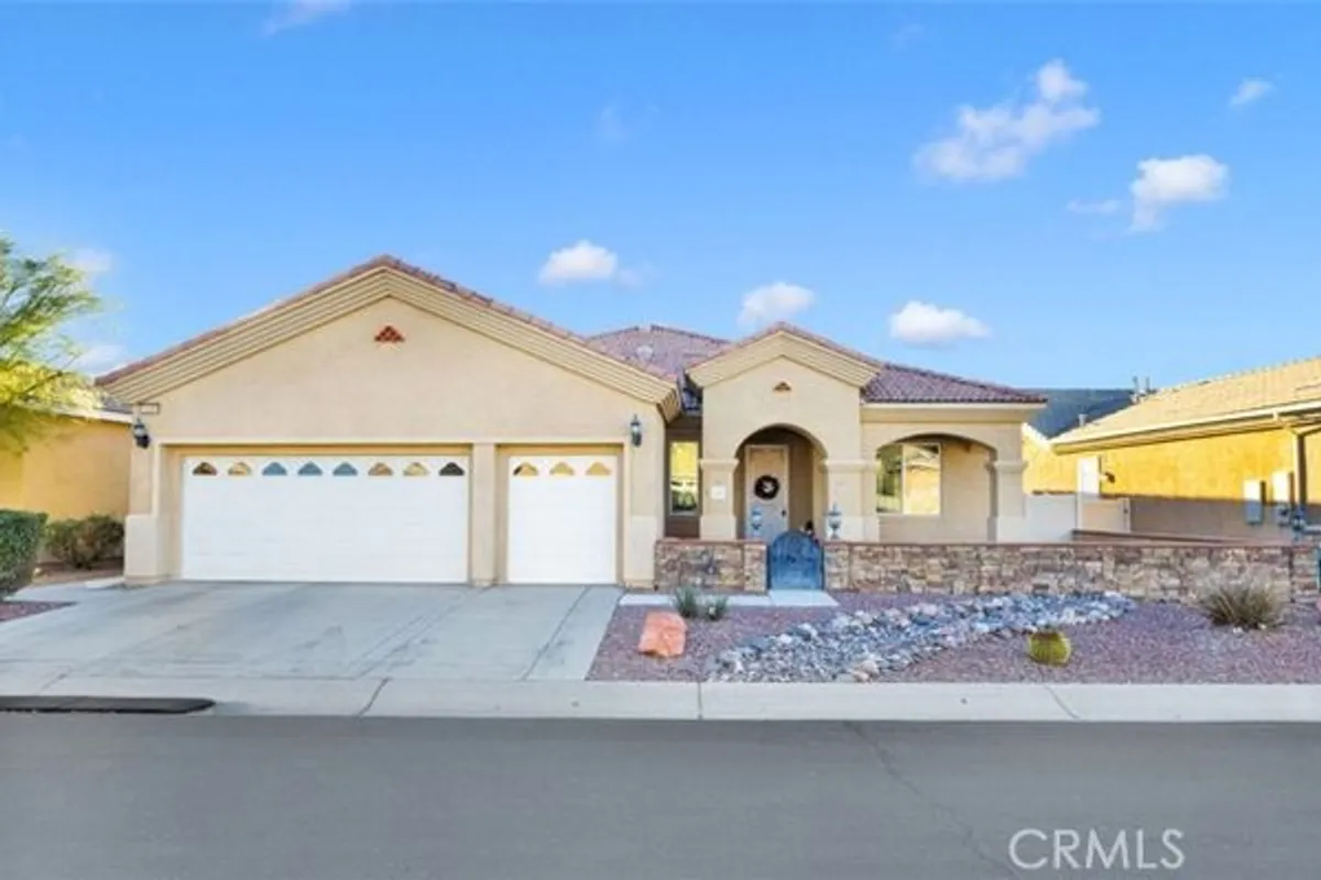 Gorgeous Open Concept Home in the 55 plus community at Solera in Apple Valley Ca. This spacious 2236 sq. ft. home has 2 Bedrooms and 2.5 Bathrooms with a Bonus Room and Separate Dining! The Large kitchen, with Double Ovens, Breakfast Nook, Corian Countertops, plenty of prep space, Large Island and ample Cabinets make this a dream kitchen which is open to a Large Great Room with a view of the Patio and Golf Course. There is also a fireplace to enjoy on cool evenings. The primary suite is spacious and inviting. The suite's bathroom includes a large walk in shower, vanity with double sinks, water closet, and huge walk in closet. The secondary bedroom and bathroom is spacious and located on the opposite side of the house. The Laundry room is large, has a sink, and storage. From here you have access to a large garage which includes space for a golf cart and extra floor to ceiling cabinets. All of this plus community swimming pools, club house, fitness center, golf course, and close to restaurants and shopping.