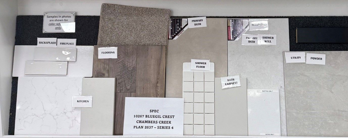 Welcome to your dream home in Chambers Creek! This beautifully designed one-story home showcases elegant designer finishes and a thoughtfully crafted layout throughout. Step into the grand foyer, where stunning ceiling details immediately set the tone for the style and comfort that fill every room. The spacious gourmet kitchen features a large island that seamlessly overlooks the great room, making it perfect for both everyday living and entertaining. The primary suite offers a generous walk-in closet and a stunning bay window with peaceful views of the backyard. Whether you're hosting guests inside or enjoying the outdoors on your Texas-sized covered patio, this home provides the ideal setting. Don’t miss your chance to make this home yours—schedule a tour today!