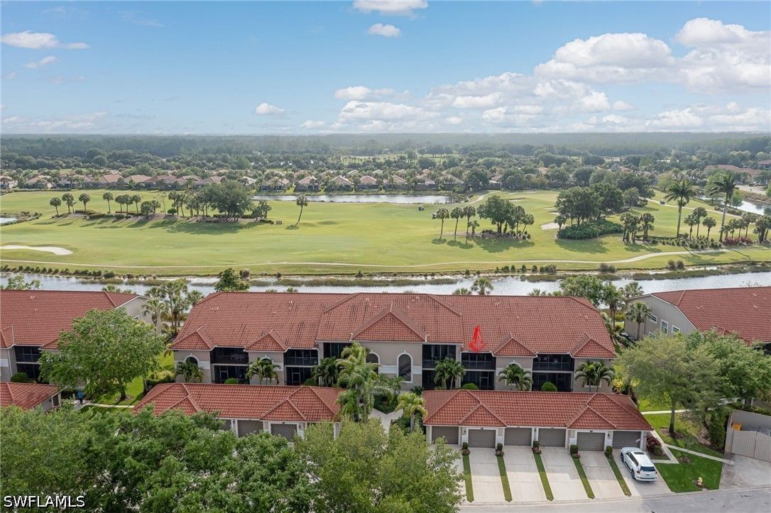 Luxury living in upper-floor Veranda with water and golf views. Pristine 2-bedroom + office/2-bathroom with sunrise and sunset views is perfectly situated in the prestigious Heritage Bay Golf & Country Club. FULL GOLF MEMBERSHIP INCLUDED. Mornings in the screened lanai overlooking golf course start with sunrise and water view of egrets and herons. Move-in ready newly lighted and freshly painted open-floor plan living area and modern kitchen with granite countertops, stainless steel appliances, wood cabinets, and brand new Washer & Dryer - a home carefully maintained by current original owners. Enjoy dinner and sunset on front lanai. Both tiled front veranda and rear lanai have upgraded "no seem " screens and custom rolldown shades. Detached garage for your car, golf clubs, bicycles and beach chairs, and the world-class amenities are all an easy walk: 27 holes of golf, har-tru tennis courts, pickleball, bocce, a staffed fitness center, a full-time activities director, and a luxurious resort-style pool with an outdoor Cabana offering full dining service with a newly renovated and expanded Grille Room. Veranda is steps away from one of the four quieter, smaller satellite pools. The perfect blend of luxurious living and recreational opportunities in this friendly community.
