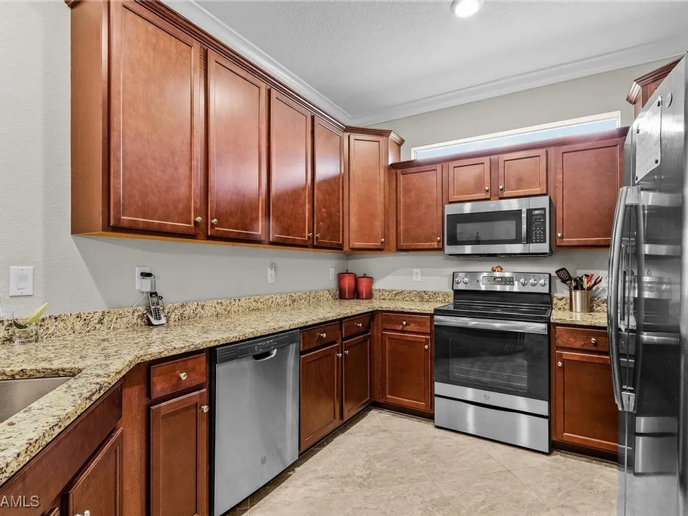 - Dryer, Dishwasher, Electric Cooktop, Freezer, Disposal, Microwave, Range, Refrigerator, Self Cleaning Oven, Washer