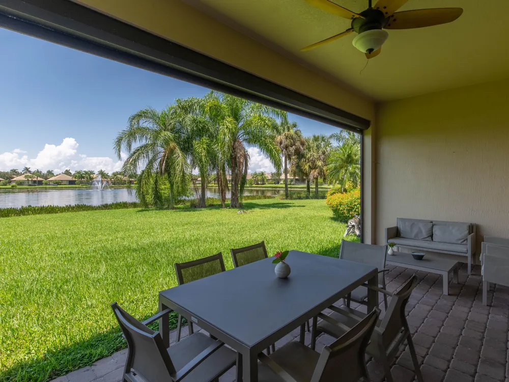This lovely 3 bedroom, 2 bath and 1 Den single family home has never been on the market for sale! Boasting almost 2,500 square feet of living space, a 2-car garage, and a great backyard with waterfront views. Situated on a spacious, immaculately landscaped lot in the gated community of Castellina. This gorgeous home has a modern open floor plan with a large kitchen island with plenty of bar seating, plantation shutters, large master with dual sinks , a walk-in shower, and a fantastic covered patio overlooking the lake. The private community of Castellina includes a resort-style clubhouse, pool and spa plus tennis courts.