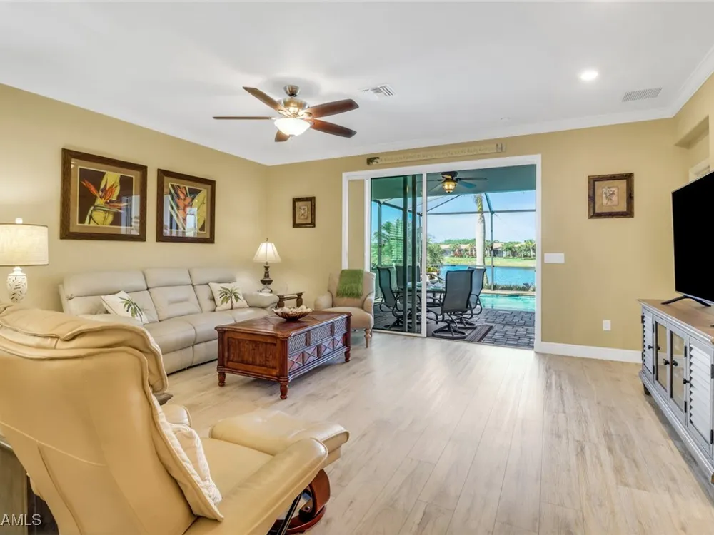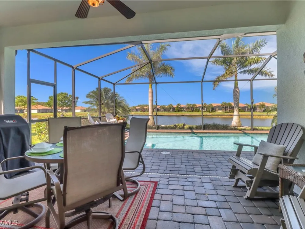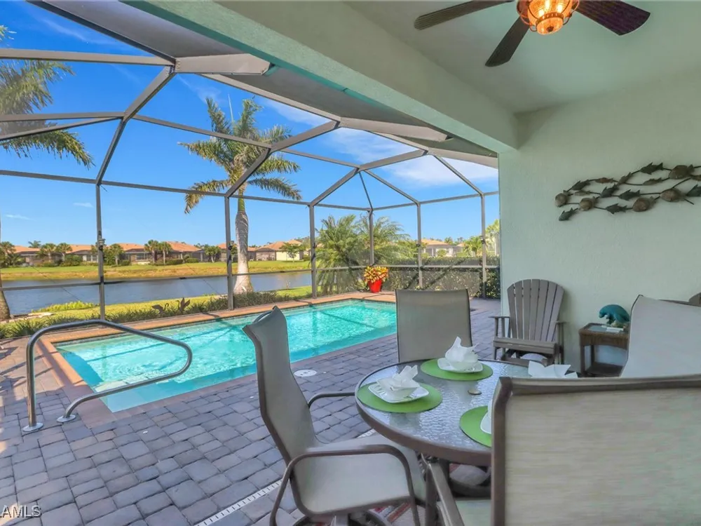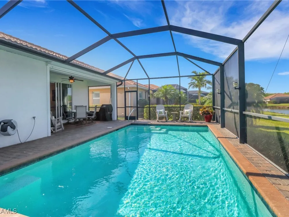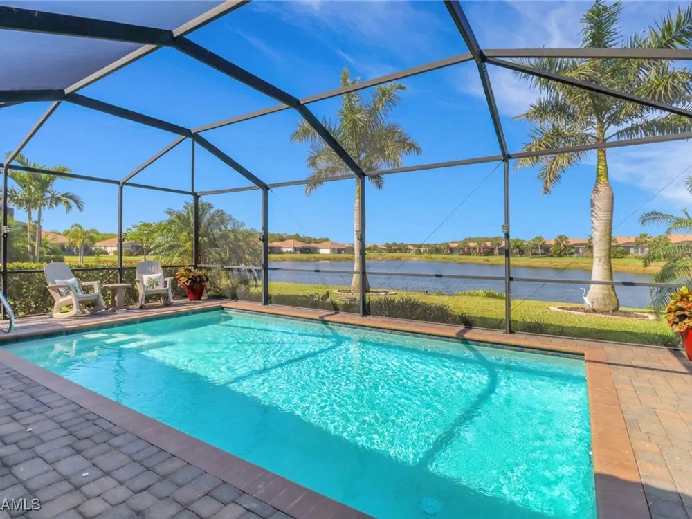 Listed below appraised value. You are welcomed when entering the home with expansive lake views, following an open floor concept. Beautiful finishes in your gourmet kitchen, featuring Whirlpool stainless steel appliances, granite counters and mosaic tile backsplash, under & above cabinet lighting, charcoal granite sink, soft-close cabinetry, pull-outs, custom crown molding & mop boards, Built-in glass-front cabinet, added pantry shelving and more. Desirable Trevi floor plan with 3 bedrooms plus den, 3 full baths, pool and 2 car garage. Additional upgrades include a whole-house Generac generator with buried 500 gallon propane tank, new AC system (Feb 2025) with hospital-grade HEPA filtration, and Storm Smart hurricane-rated windows, Interior highlights: - Luxury vinyl tile flooring throughout for easy maintenance, washer & dryer (2024) - Closet systems in both master walk-ins, Culligan water system, all new lighting/fans throughout, Motion lighting in utility & garage, Samsung garage refrigerator, Tool chests, cabinets & epoxy treated garage floor - Garage ceiling fishing pole organizer - Laser parking lights Outdoor upgrades: - New pool cage (2024) with no-see-um screen - Heated pool with child safety fence - Solar lighting around pool area - Driveway & pool pavers treated every 6 months - Tropical landscaping including Blue Tulip Agave & Royal Pygmy Palms - Screened front entry Bonus: Quartz countertops in all baths, plantation shutters, and original tile preserved under LVT. Relax in your spacious En-suite bathroom with soaking tub and walk-in shower, double vanity and large main bedroom closet with custom cabinets. Enjoy the outdoor space and expansive lake views with a large covered lanai and screened in pool area. Pelican Preserve a premier, active 55+ Resort Style community. Amenities include card rooms, you can enjoy bridge, mahjong, poker and more, Explore sewing, wood-working, art lessons, billiards, and computers, or relax and enjoy popcorn while watching movies in the theatre.There are plenty of exercise classes offered at the fitness center, including Yoga, Spin, Pilates, and Zumba. Indoor and outdoor pools. In addition also there are an indoor track, locker rooms, sauna and steam rooms, and spa treatment rooms. 8 Tennis courts and 12 Pickleball courts. Pelican Preserve has a 27 hole Private Golf Club with optional memberships. Other amenities include: Theatre, Dog Parks, Fishing Pier, Amphitheater Cafe, Library and restaurants with bar and a vibrant social calendar. Pelican Preserve is a short drive to RSW Airport and many shops and restaurants and the gulf coast beaches, making this the perfect home and location to begin life's next adventures!