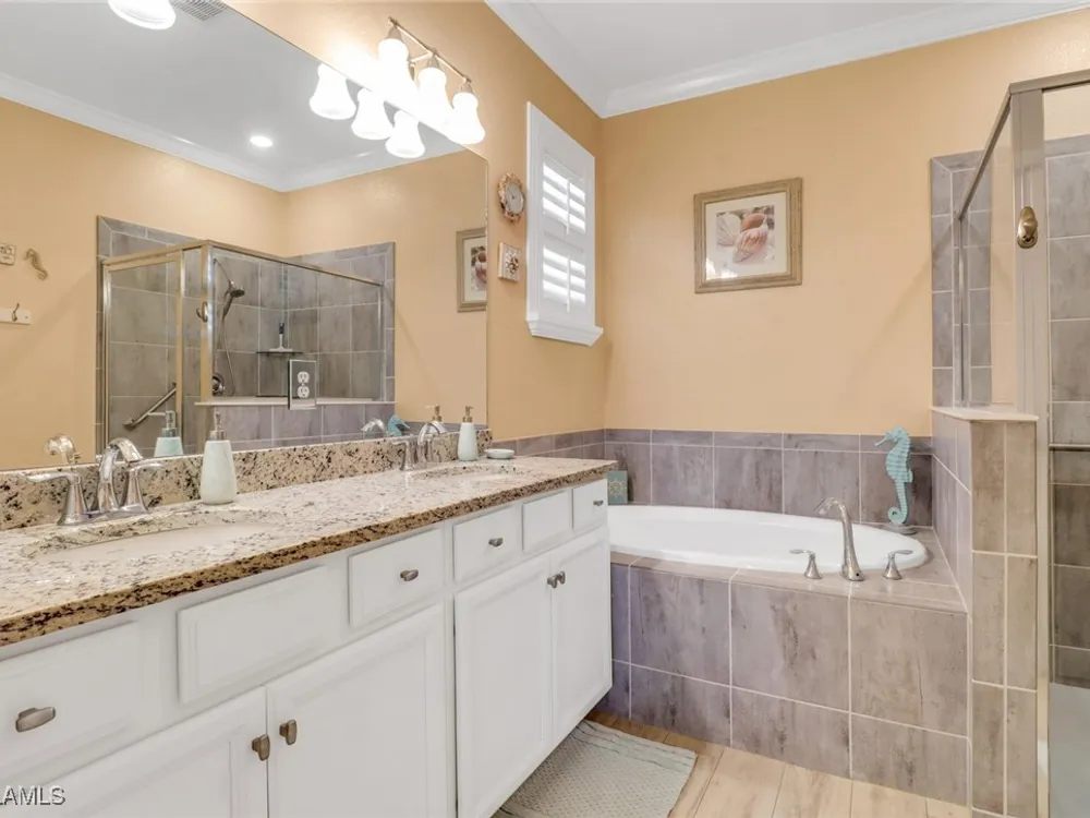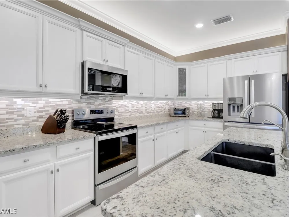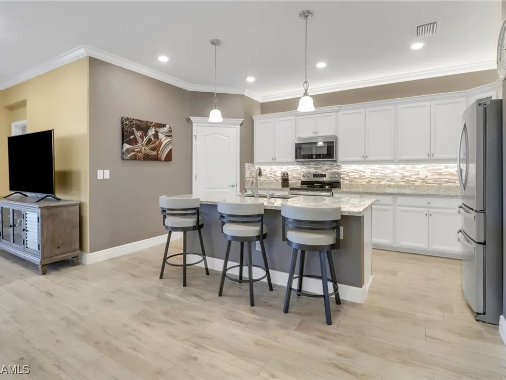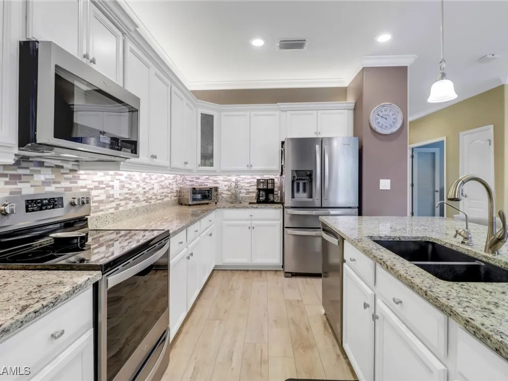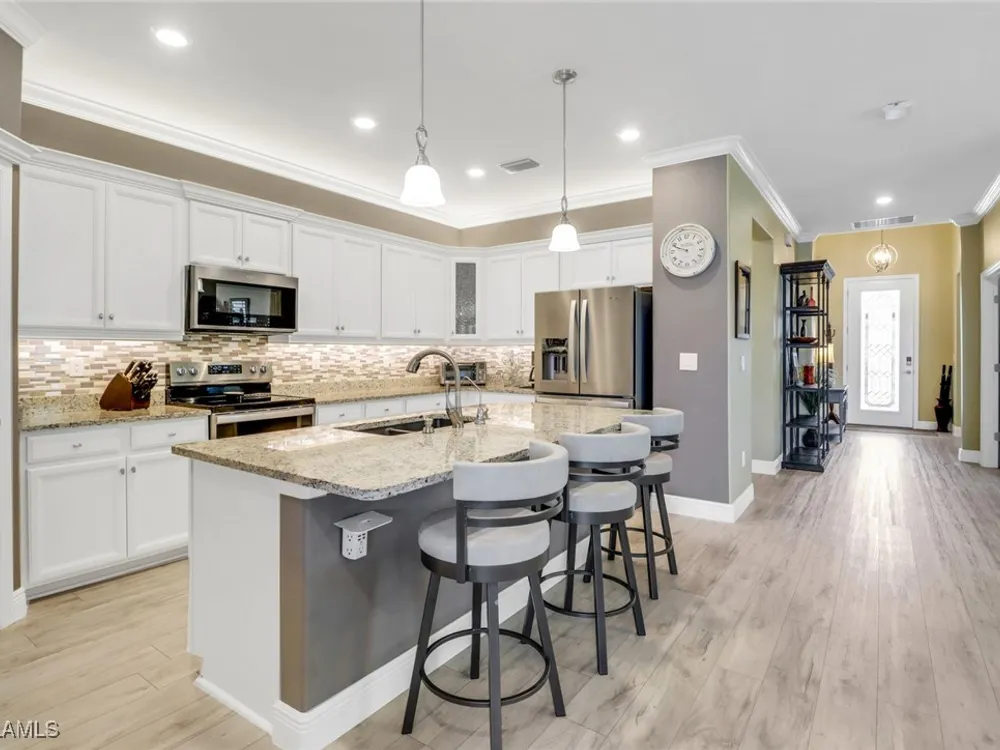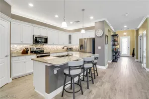 Listed below appraised value. You are welcomed when entering the home with expansive lake views, following an open floor concept. Beautiful finishes in your gourmet kitchen, featuring Whirlpool stainless steel appliances, granite counters and mosaic tile backsplash, under & above cabinet lighting, charcoal granite sink, soft-close cabinetry, pull-outs, custom crown molding & mop boards, Built-in glass-front cabinet, added pantry shelving and more. Desirable Trevi floor plan with 3 bedrooms plus den, 3 full baths, pool and 2 car garage. Additional upgrades include a whole-house Generac generator with buried 500 gallon propane tank, new AC system (Feb 2025) with hospital-grade HEPA filtration, and Storm Smart hurricane-rated windows, Interior highlights: - Luxury vinyl tile flooring throughout for easy maintenance, washer & dryer (2024) - Closet systems in both master walk-ins, Culligan water system, all new lighting/fans throughout, Motion lighting in utility & garage, Samsung garage refrigerator, Tool chests, cabinets & epoxy treated garage floor - Garage ceiling fishing pole organizer - Laser parking lights Outdoor upgrades: - New pool cage (2024) with no-see-um screen - Heated pool with child safety fence - Solar lighting around pool area - Driveway & pool pavers treated every 6 months - Tropical landscaping including Blue Tulip Agave & Royal Pygmy Palms - Screened front entry Bonus: Quartz countertops in all baths, plantation shutters, and original tile preserved under LVT. Relax in your spacious En-suite bathroom with soaking tub and walk-in shower, double vanity and large main bedroom closet with custom cabinets. Enjoy the outdoor space and expansive lake views with a large covered lanai and screened in pool area. Pelican Preserve a premier, active 55+ Resort Style community. Amenities include card rooms, you can enjoy bridge, mahjong, poker and more, Explore sewing, wood-working, art lessons, billiards, and computers, or relax and enjoy popcorn while watching movies in the theatre.There are plenty of exercise classes offered at the fitness center, including Yoga, Spin, Pilates, and Zumba. Indoor and outdoor pools. In addition also there are an indoor track, locker rooms, sauna and steam rooms, and spa treatment rooms. 8 Tennis courts and 12 Pickleball courts. Pelican Preserve has a 27 hole Private Golf Club with optional memberships. Other amenities include: Theatre, Dog Parks, Fishing Pier, Amphitheater Cafe, Library and restaurants with bar and a vibrant social calendar. Pelican Preserve is a short drive to RSW Airport and many shops and restaurants and the gulf coast beaches, making this the perfect home and location to begin life's next adventures!
