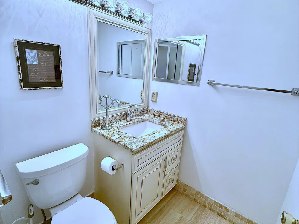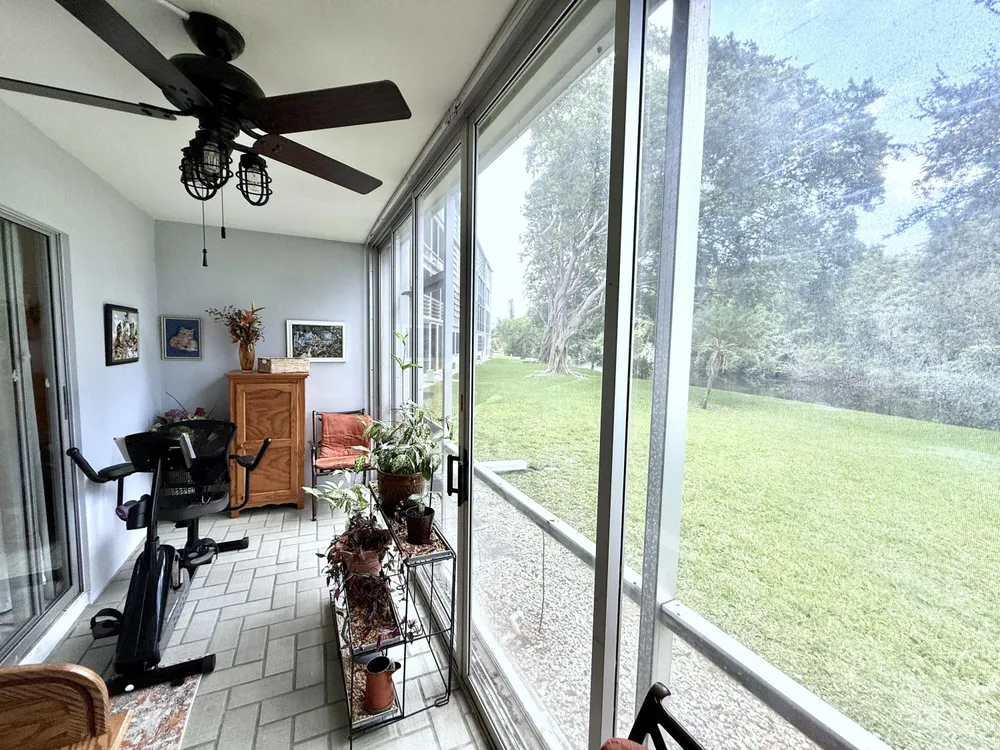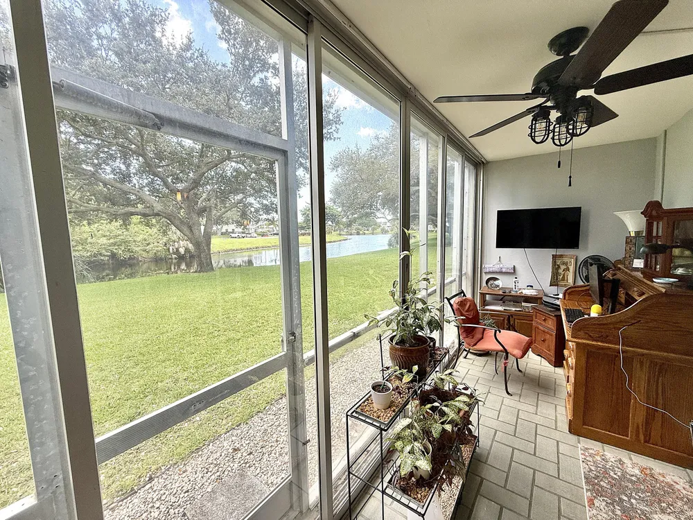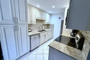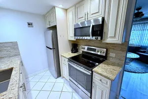 First Floor Lake View from enclosed titled patio. . Partially Furnished or Unfurnished 1 BR/1.5 Baths. Lovely renovated Galley Kitchen with high hat lighting, Granite Counters, Title Backsplash, SS Farm Sink and SS Appliances. Title & Laminate Flooring. Updated baths and walk-in shower in main bathroom. Stepts from the Newport Community pool+tennis. Clubhouse has indoor+outdoor pools, cafe, 1600 seat theater, clubs, tennis, billiards, pickleball, volleyball, ping pong, bocce, shuffleboard, fitness center, hiking+bike trails, putting green. Close to beaches, entertainment, dining, shopping. 55+ age