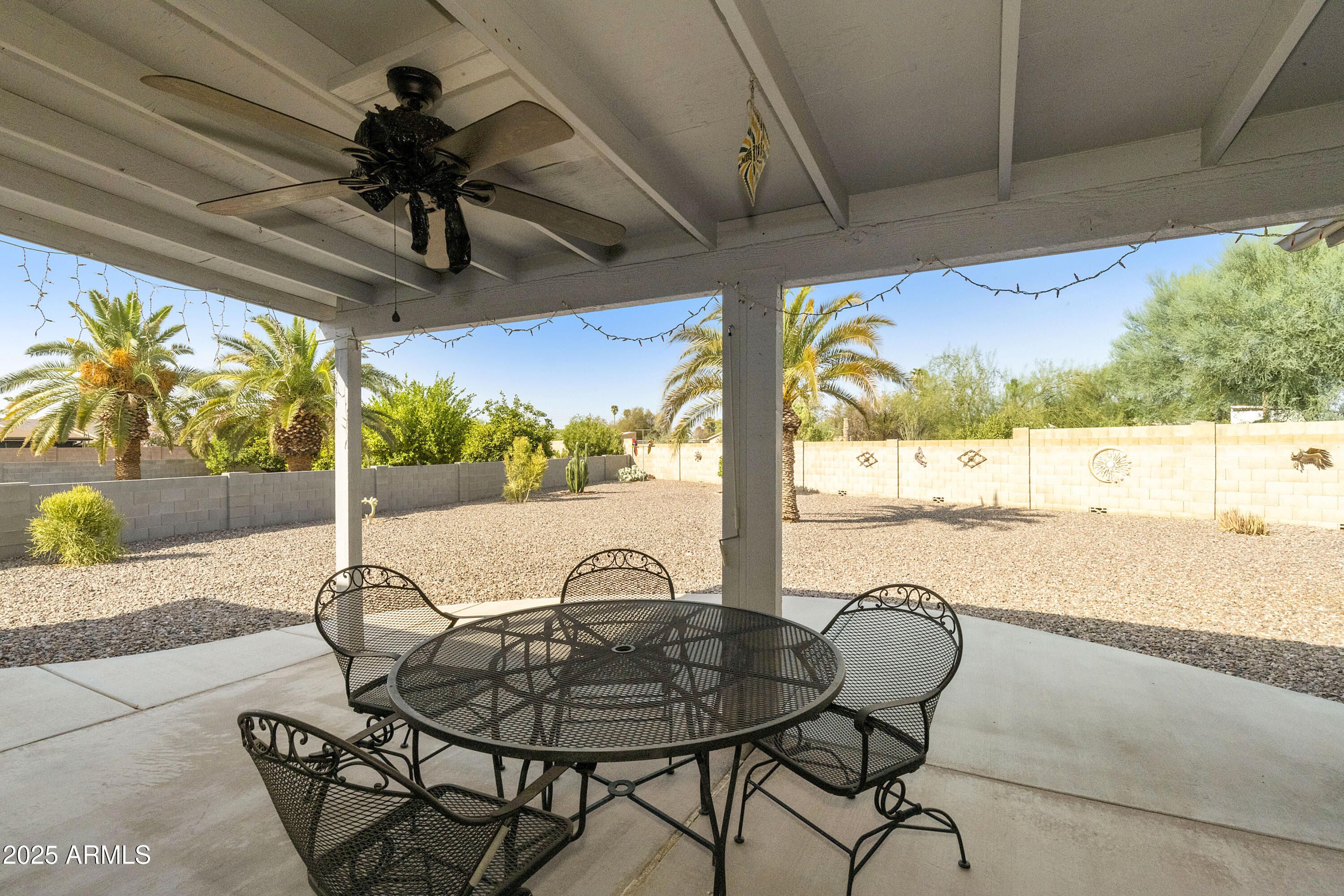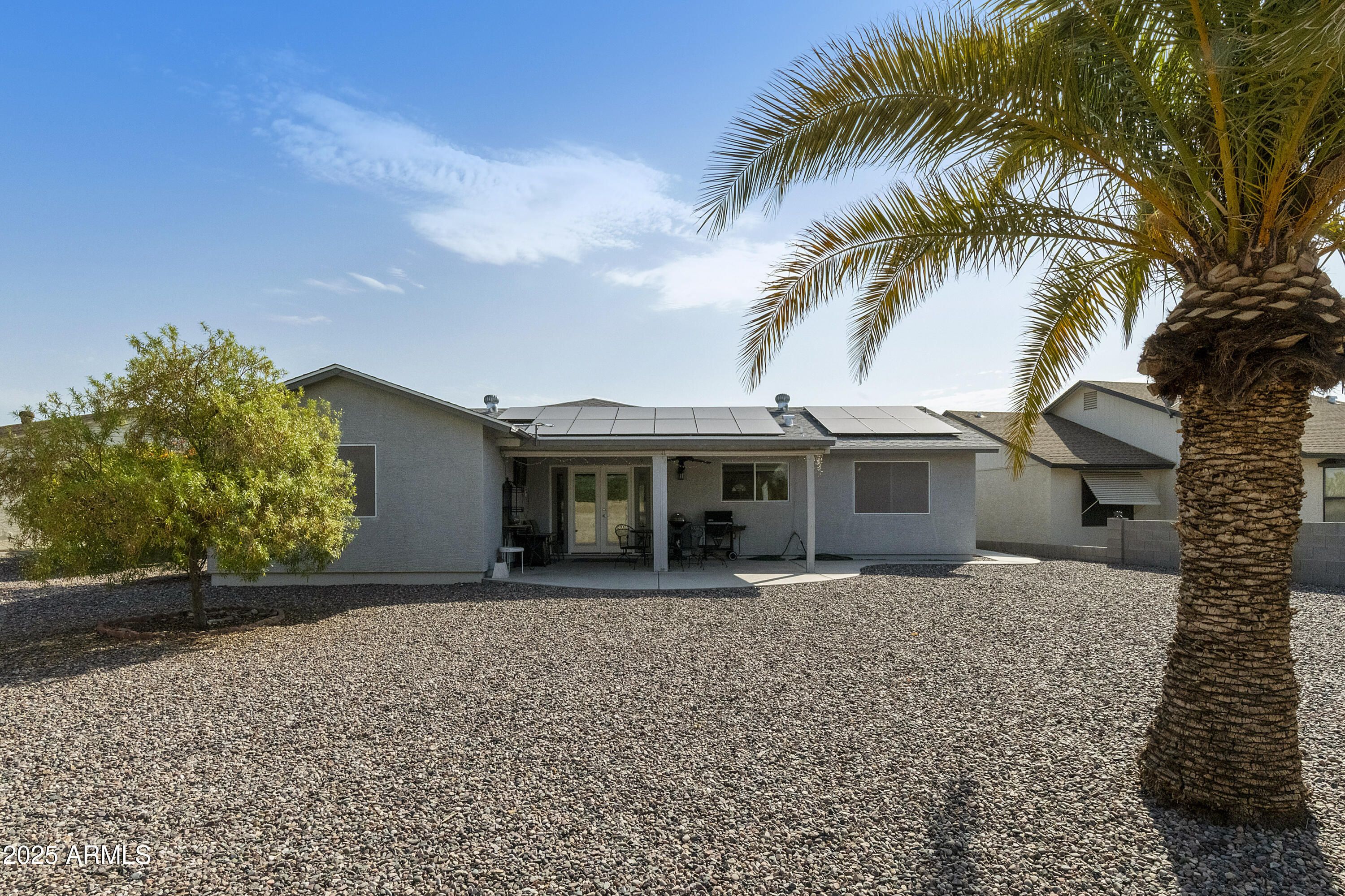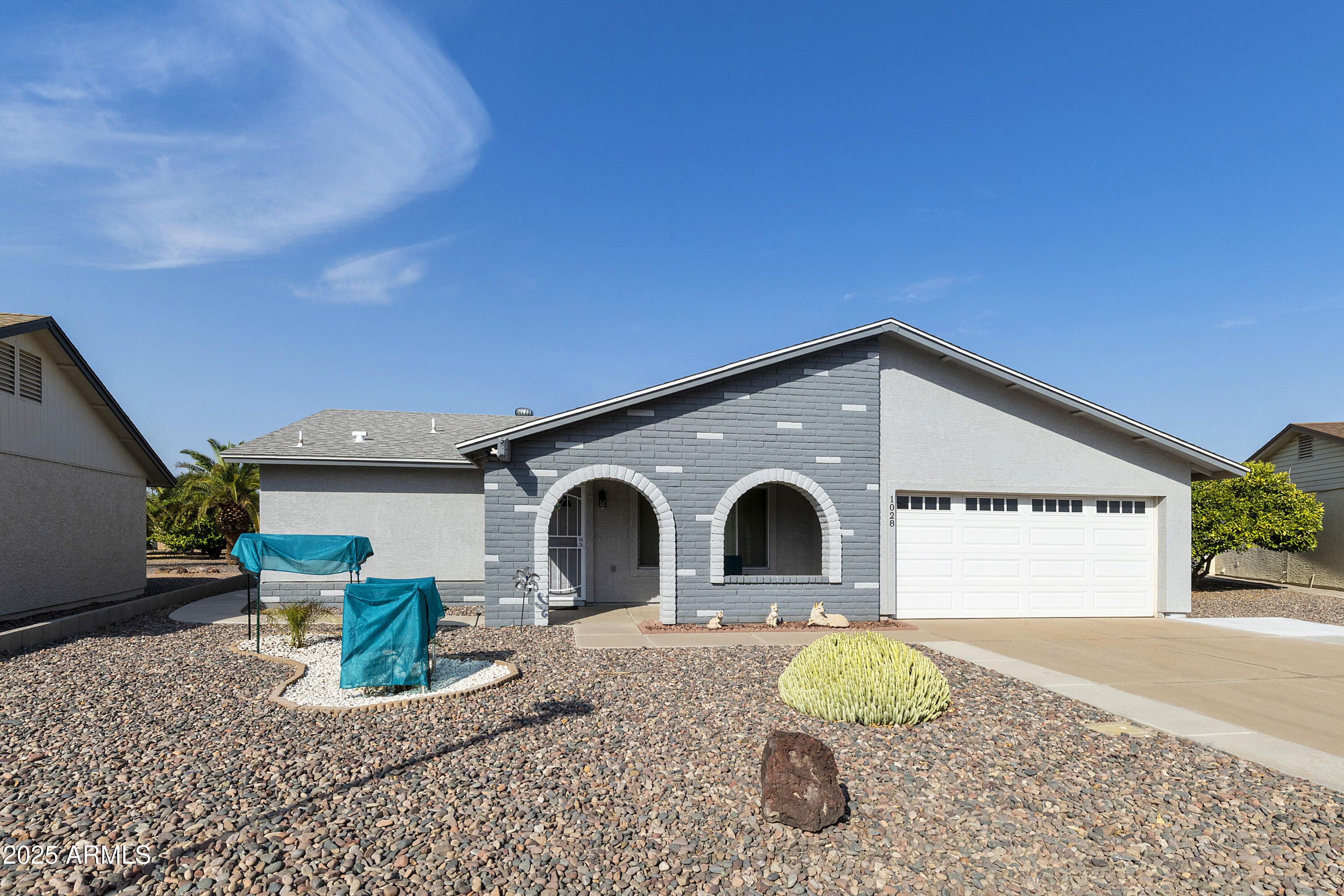 Welcome home to this beautiful located in the gated, guarded 55+ community of Fountain of the Sun. This single-level home offers comfort, accessibility, and convenience. The Hopi floor plan offers spacious living, featuring a split 2-bedroom layout and a complete kitchen remodel with ample storage. Updated bathrooms and laminate flooring throughout. Newer windows, roof, and air conditioning. Solar is owned! Outside, enjoy a large, low-maintenance yard, leaving you more time to take advantage of what the community has to offer. Enjoy the Country Club & Golf Community offering a lake, golf course, heated pool/spa and tons of planned activities: pickleball, BOCCE, fitness, billiards, library, horseshoes, arts & crafts, card room, shuffleboard, and more! Birdie's restaurant is open daily!