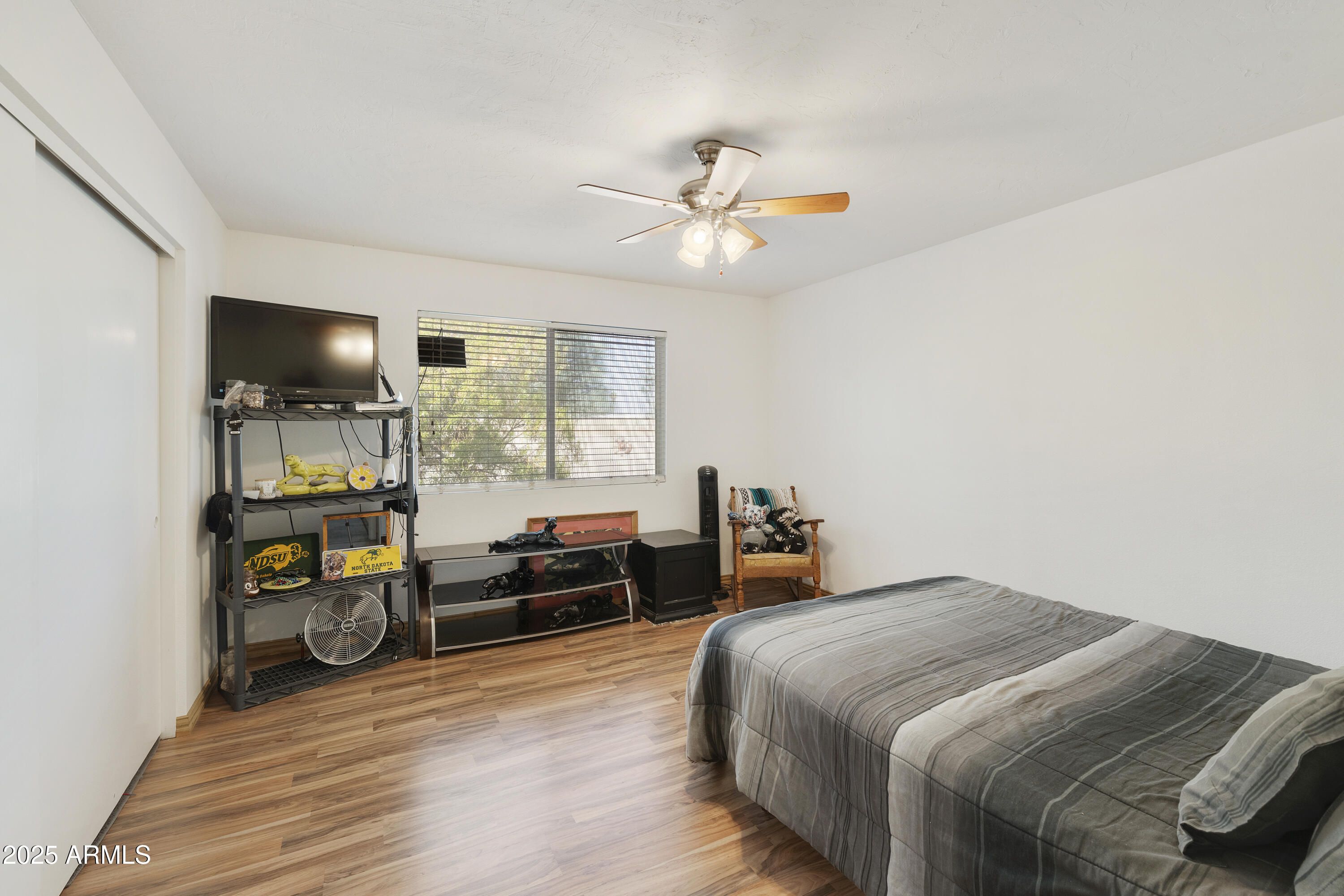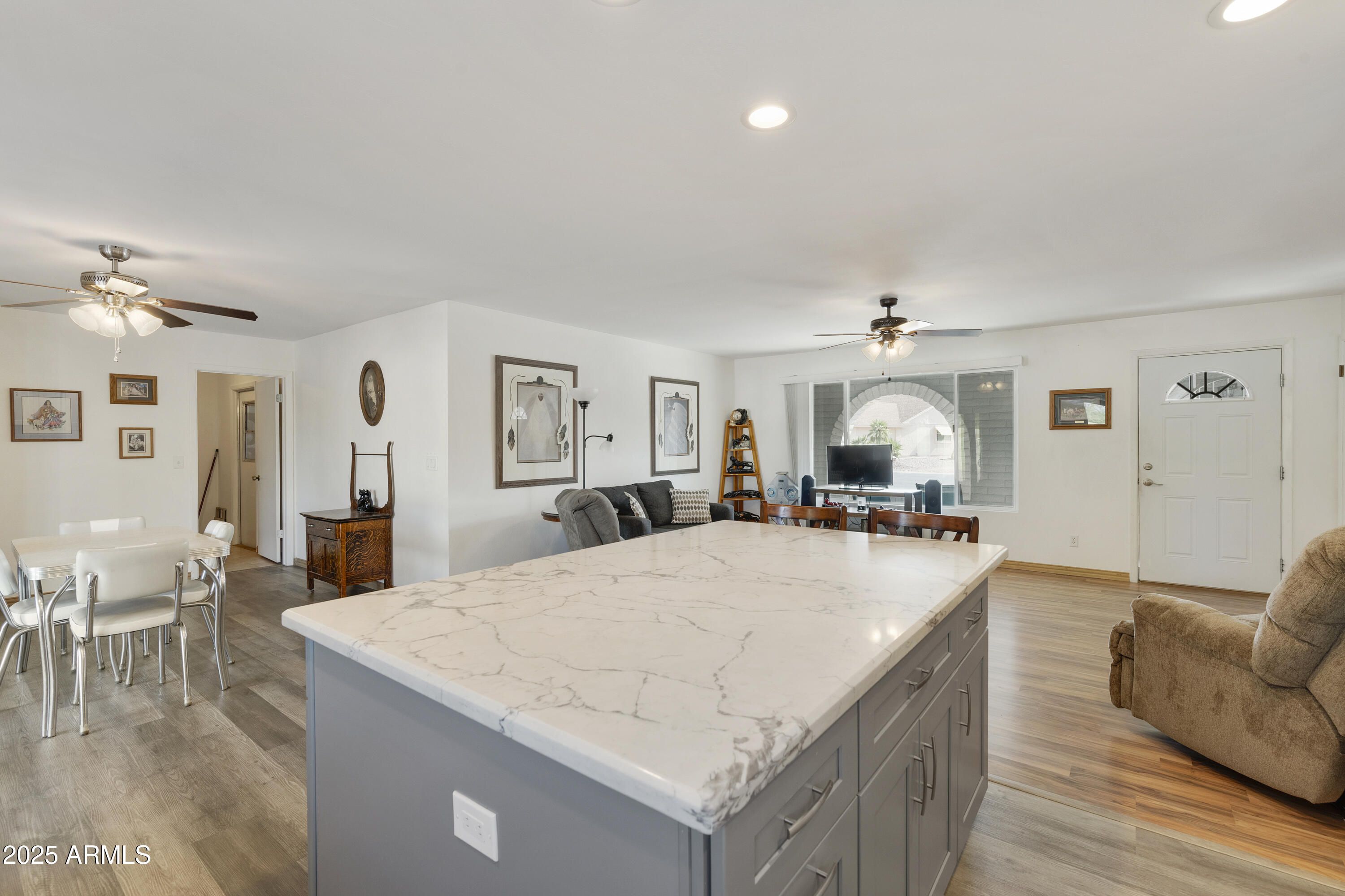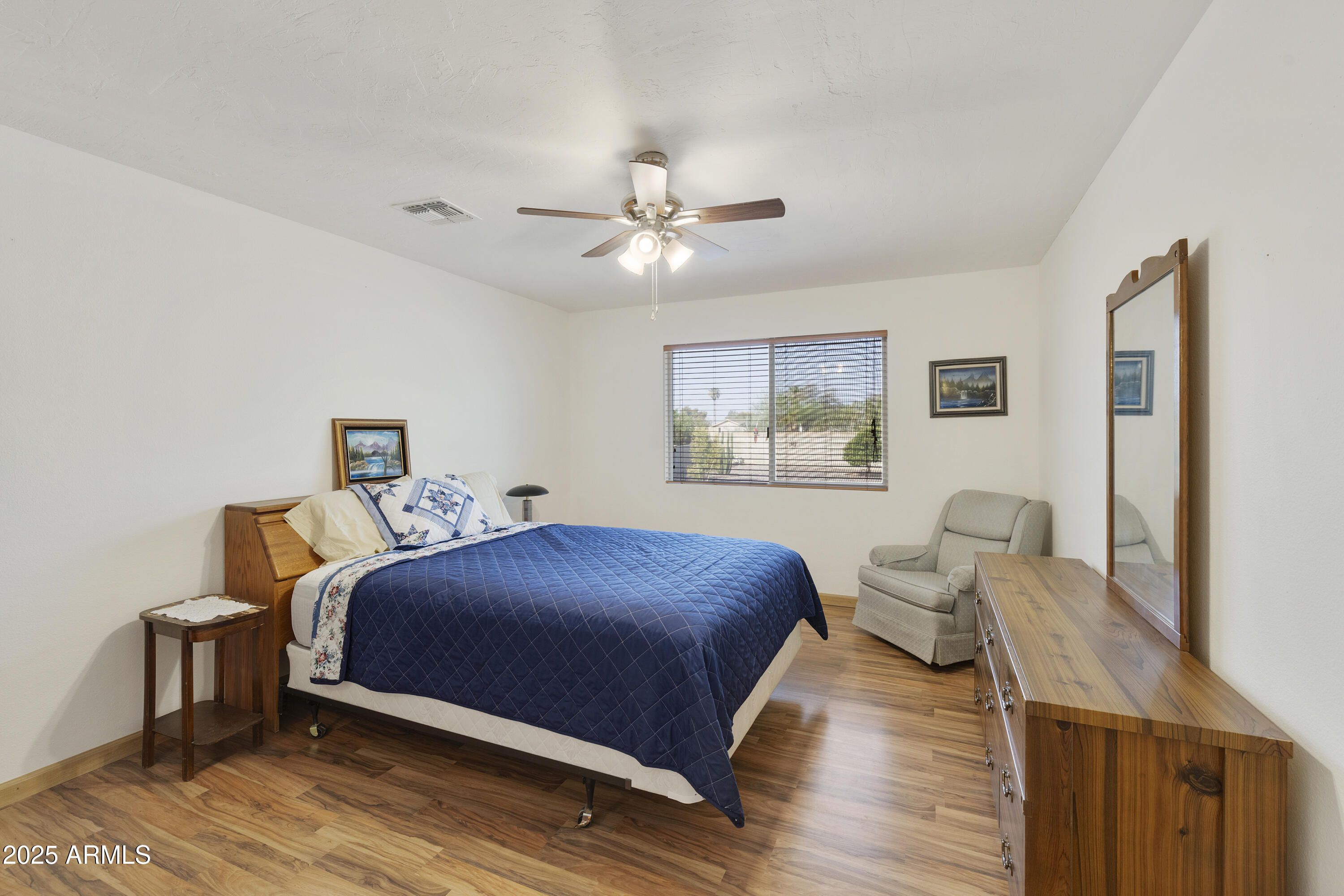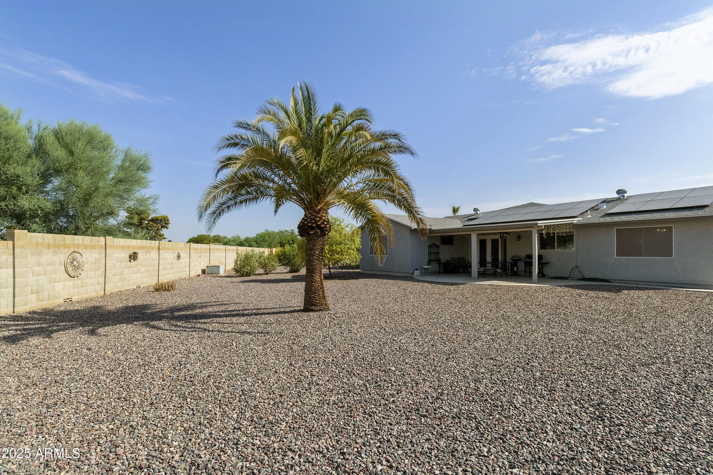Welcome home to this beautiful located in the gated, guarded 55+ community of Fountain of the Sun. This single-level home offers comfort, accessibility, and convenience. The Hopi floor plan offers spacious living, featuring a split 2-bedroom layout and a complete kitchen remodel with ample storage. Updated bathrooms and laminate flooring throughout. Newer windows, roof, and air conditioning. Solar is owned! Outside, enjoy a large, low-maintenance yard, leaving you more time to take advantage of what the community has to offer. Enjoy the Country Club & Golf Community offering a lake, golf course, heated pool/spa and tons of planned activities: pickleball, BOCCE, fitness, billiards, library, horseshoes, arts & crafts, card room, shuffleboard, and more! Birdie's restaurant is open daily!