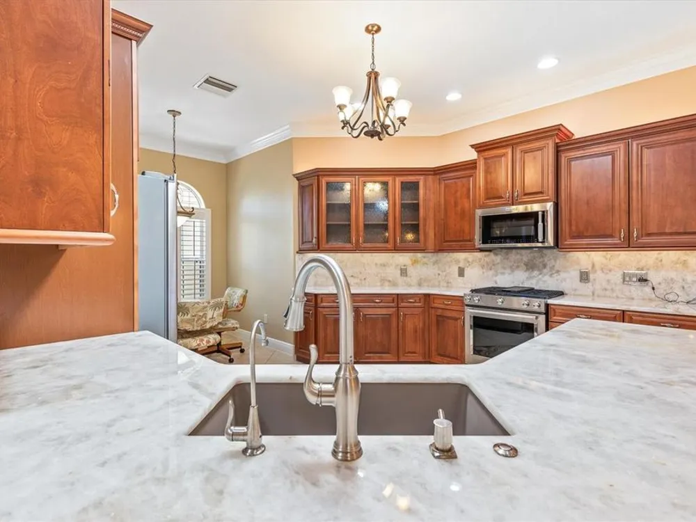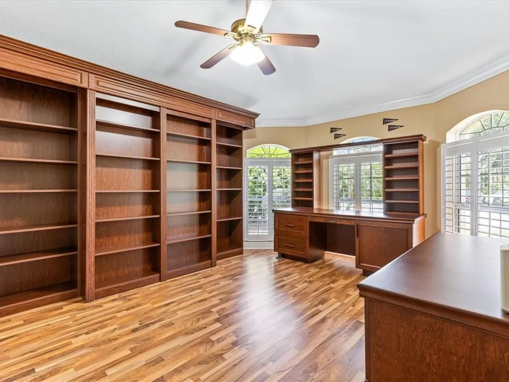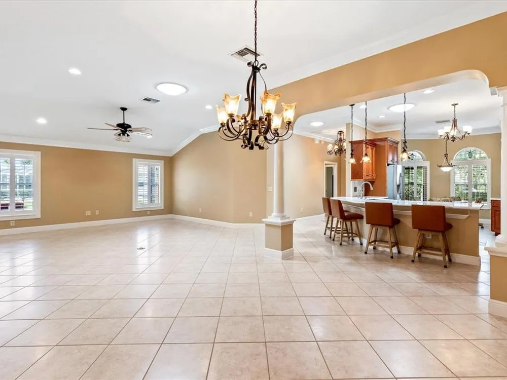 - Built-in Features, Ceiling Fan(s), Crown Molding, Eat-in Kitchen, Living/Dining Room, Open Floorplan, Split Bedrooms, Stone Counters, Tray Ceiling(s), Vaulted Ceiling(s), Walk-In Closet(s), Window Treatments