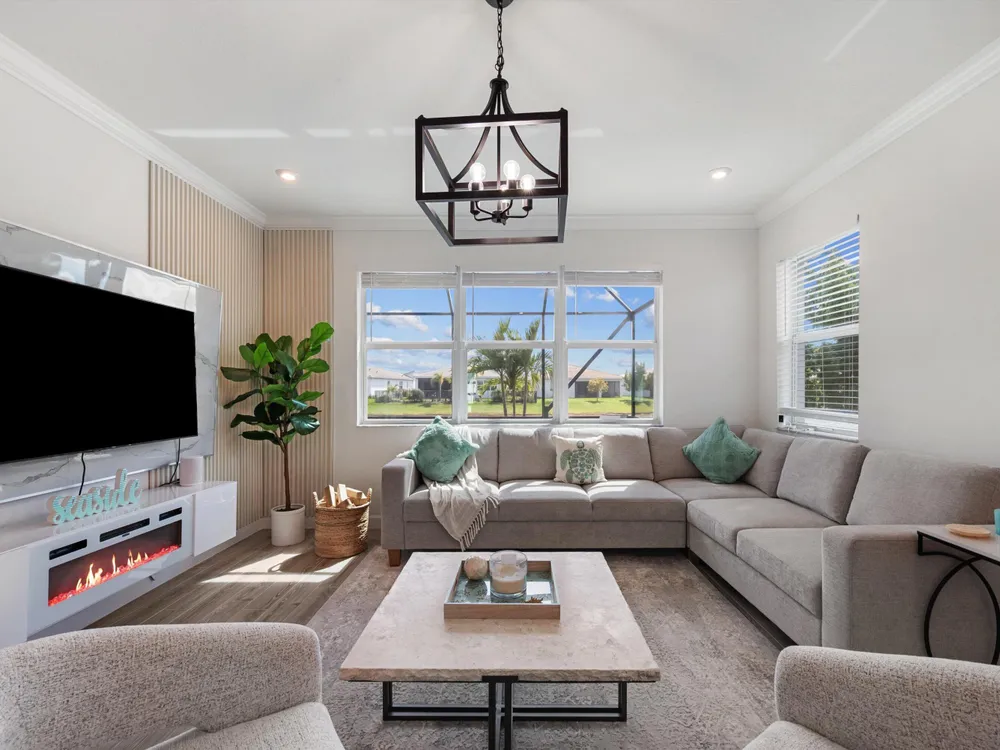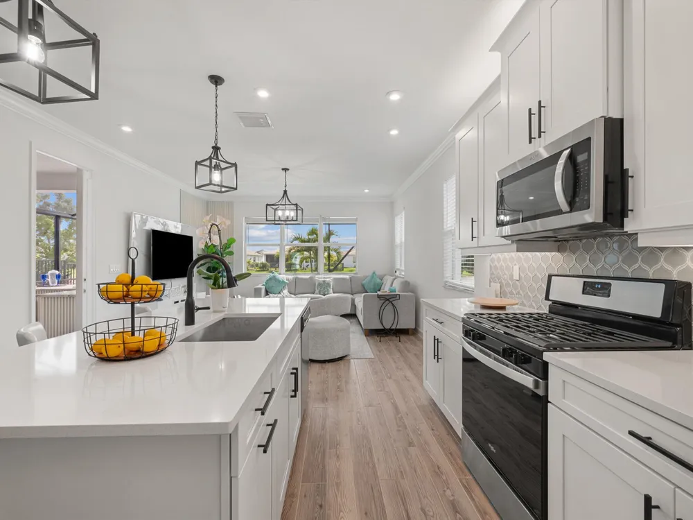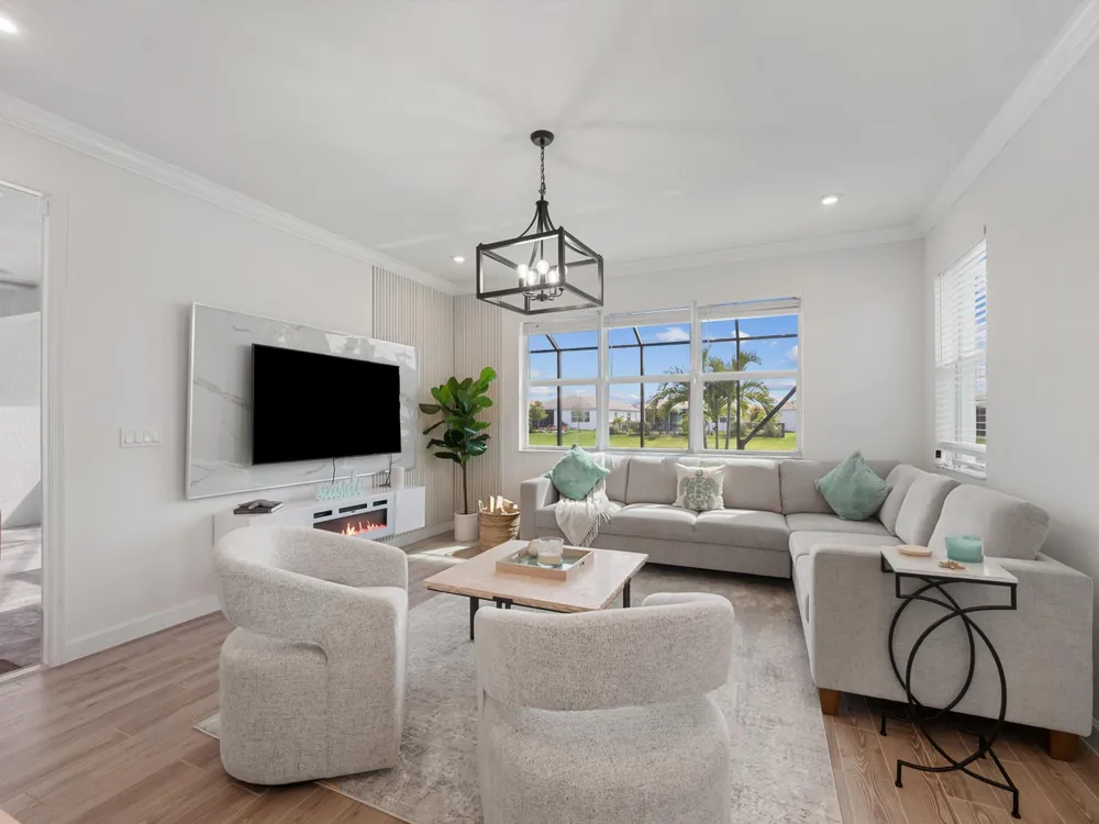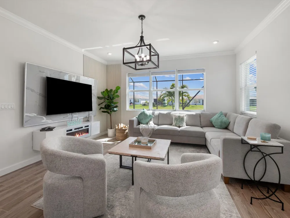 Located in the GATED Telaro at Southern Grove, this NEWER construction BARELY LIVED in villa offers stunning LAKEFRONT views and a low-maintenance lifestyle. The open-concept design seamlessly blends the kitchen, dining, and great room, leading to a covered lanai perfect for enjoying Florida's sunshine. Thoughtfully designed with impact glass windows, natural gas appliances, and elegant finishes, this home combines style and efficiency. Ideally situated in Tradition, Port St. Lucie, residents enjoy easy access to shopping, dining, and entertainment at Tradition Square, along with convenient proximity to I-95 for commuting.