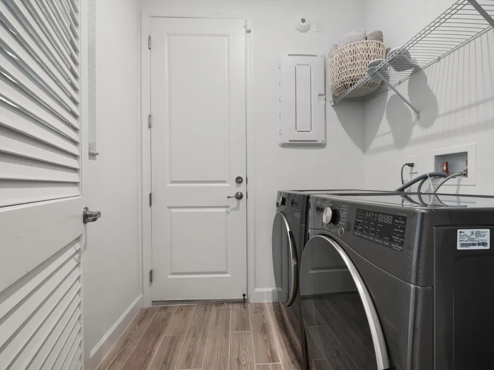 - Electric Garage Door, Dishwasher, Disposal, Dryer, Microwave, Gas Range, Washer