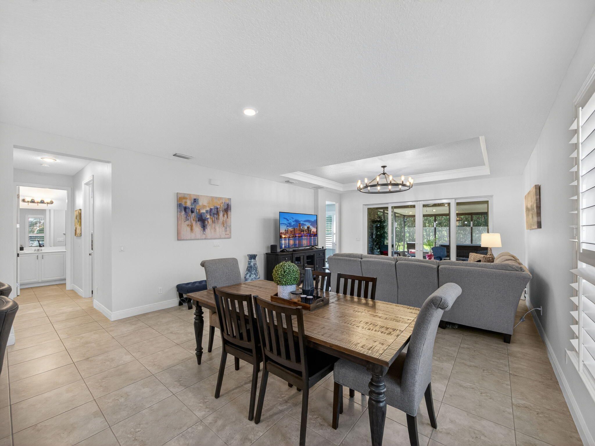Immaculate and truly move-in ready, this beautifully renovated home is nestled on a quiet cul-de-sac within the highly sought-after 55+ community of Vitalia. The light, bright, and open floor plan has been thoughtfully updated from top to bottom, featuring new flooring, a remodeled kitchen with updated countertops and backsplash, plantation shutters, gas appliances, and a new washer and dryer (2024). The home was freshly painted in 2025, adding a crisp, modern feel throughout. The layout offers two generously sized bedrooms, two full bathrooms, and a versatile nook ideal for a home office, reading area, or hobby space. Step outside to your private lanai and enjoy the oversized back and side yard—perfect for entertaining, hosting family and friends, or simply relaxing. Residents will appreciate the convenient access to the vibrant Tradition area just minutes away, offering shopping, dining, local cafés, seafood markets, entertainment, scenic lakes, nearby beaches, and abundant wildlife. Vitalia residents enjoy a truly maintenance-free lifestyle with cable, high-speed internet, landline phone service, alarm monitoring, and lawn care included, along with access to a stunning resort-style recreational facility. Experience relaxed, resort-style living and embrace the Florida lifestyle from the comfort of your own private paradise.