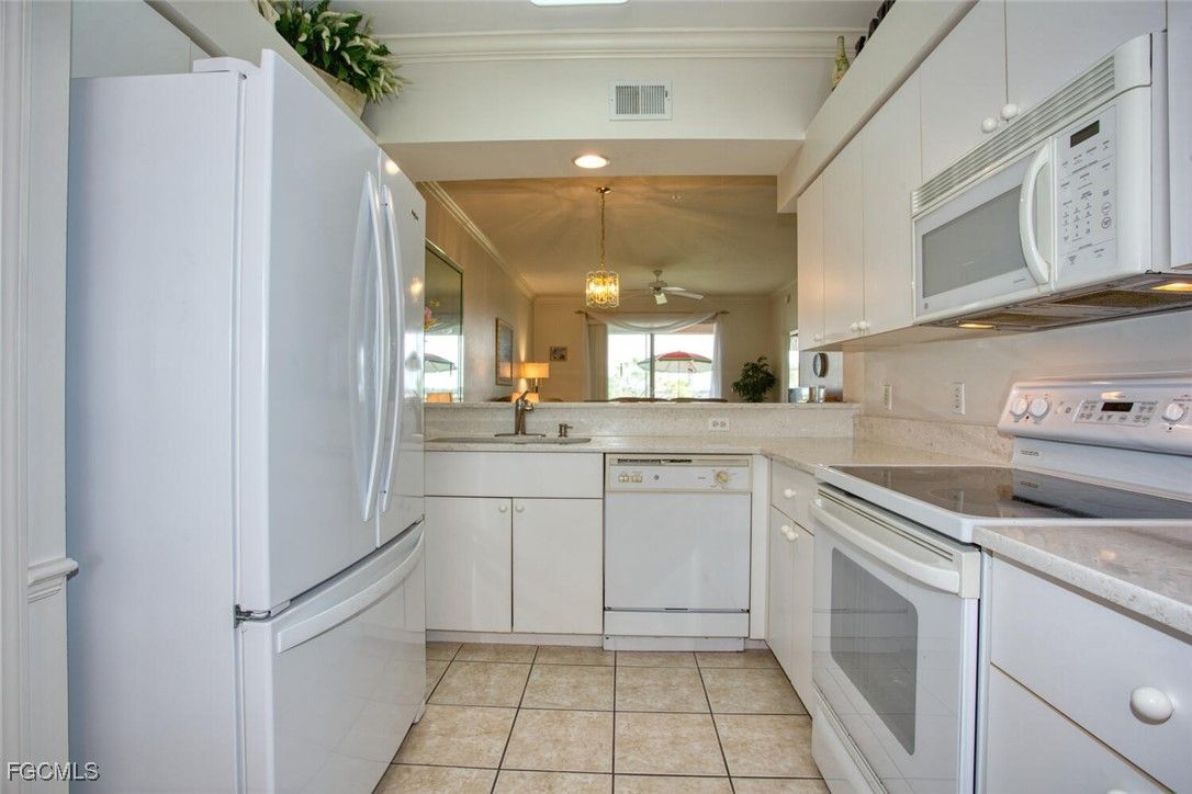 Top-Floor Ashbury with Expansive Golf Views! This top-floor Ashbury offers wide views of the Signature Island hole on the Royal Course, with a screened lanai featuring eastern exposure for sunny mornings and cool, shaded evenings as the sun sets behind the building—perfect for relaxing outdoors year-round. Inside, the kitchen showcases light and bright quartz countertops, complemented by neutral tile flooring throughout—no carpet. Both bathrooms feature updated vanities with quartz, and furnishings have been recently refreshed for a clean, modern look. Located in a quiet section of the community, yet just a short walk to the pickleball courts, community pools, main clubhouse, and activity center, this condo delivers convenience without the noise. Heritage Palms offers a vibrant, resort-style lifestyle with two golf courses, a variety of restaurant venues, and endless activities to enjoy. Get ready to live the Florida dream in a community that’s as active as it is welcoming.