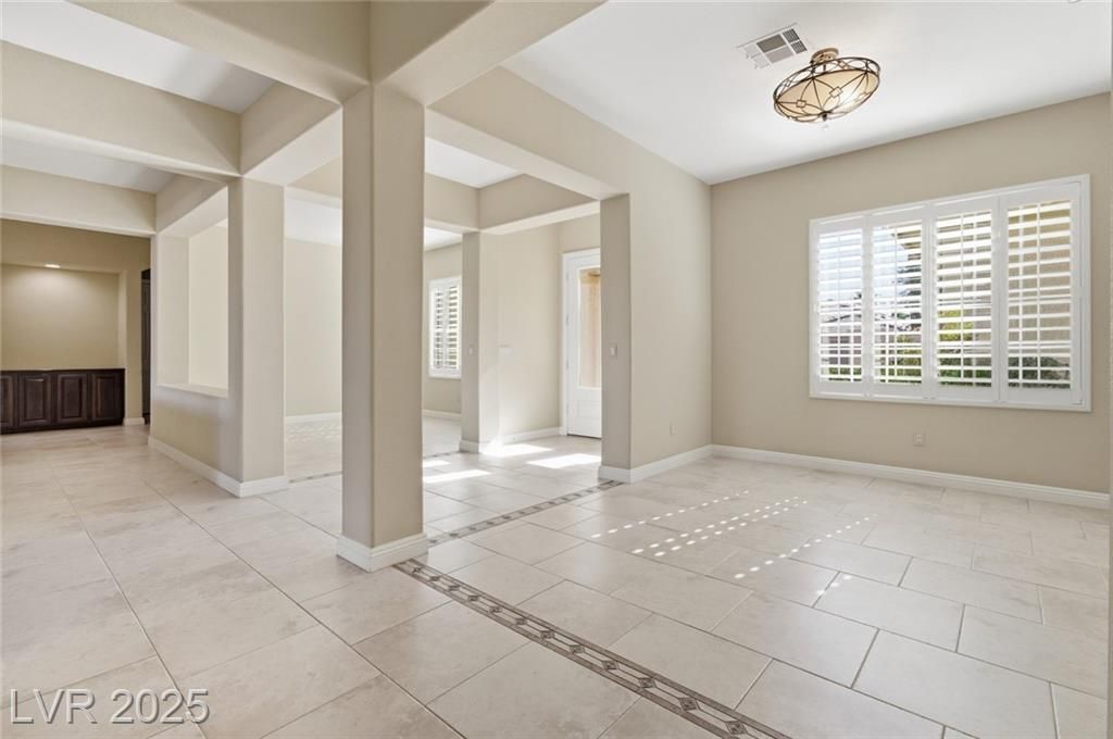 Price improved to sell! Don't miss the opportunity to own a piece of the Las Vegas paradise. Located in Siena, 55+, an age-restricted community in Summerlin. The location and outstanding views make this property extremely desirable. A beautiful and meticulously kept golf course property, located near the 13th green, and set back enough to admire the views of the Spring and Red Rock Mountains. This home features 3217 sq ft, one of the largest models, built by Sun Colony, a home developer in Summerlin. This open-concept model 8120 offers views from all rear windows, showcasing the golf course and beyond. It has three bedrooms, three full baths, including a separate casita with wood flooring, a den/office, a powder room, a formal dining room, a sunroom/living room, and a formal living room. All window coverings throughout, a skylight over the kitchen area, custom closets in the primary bedroom, and much more! It is a must-see!