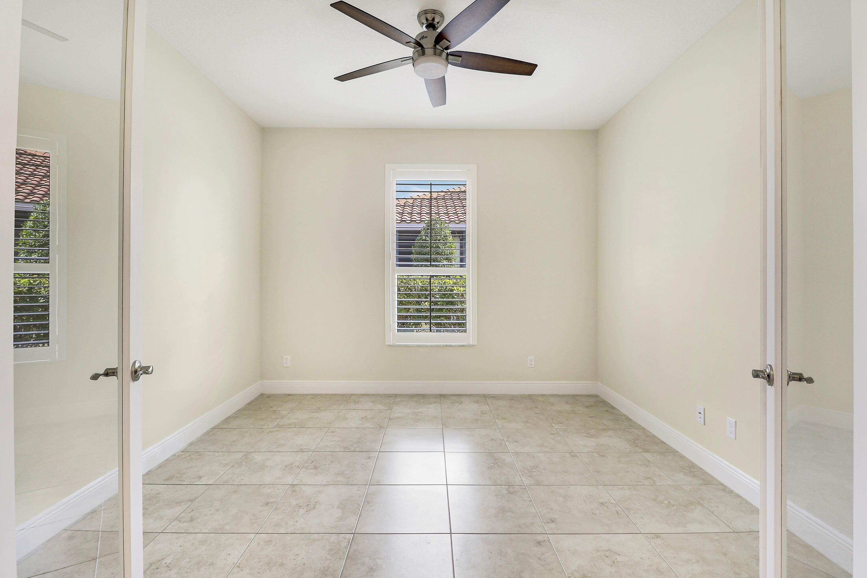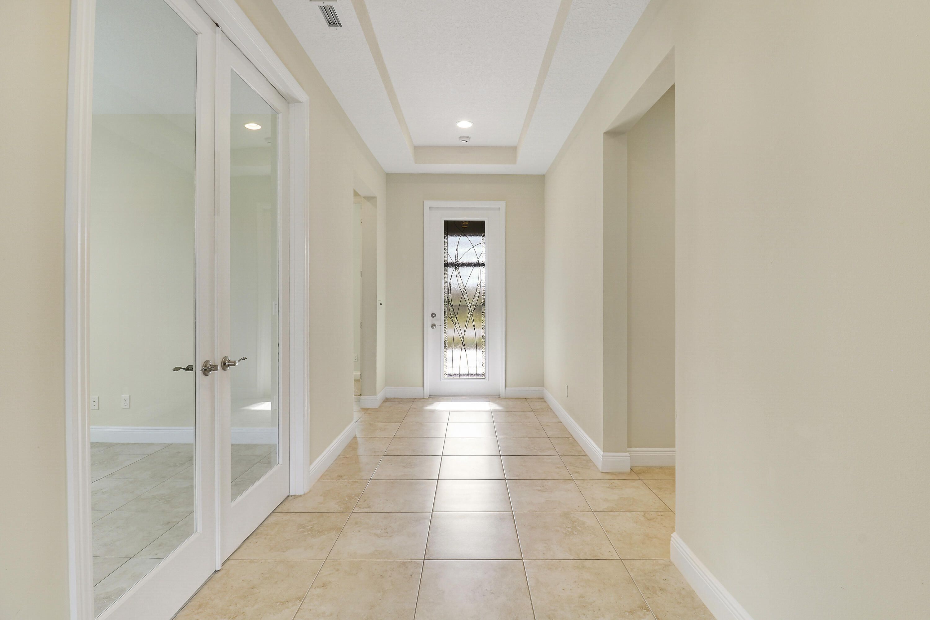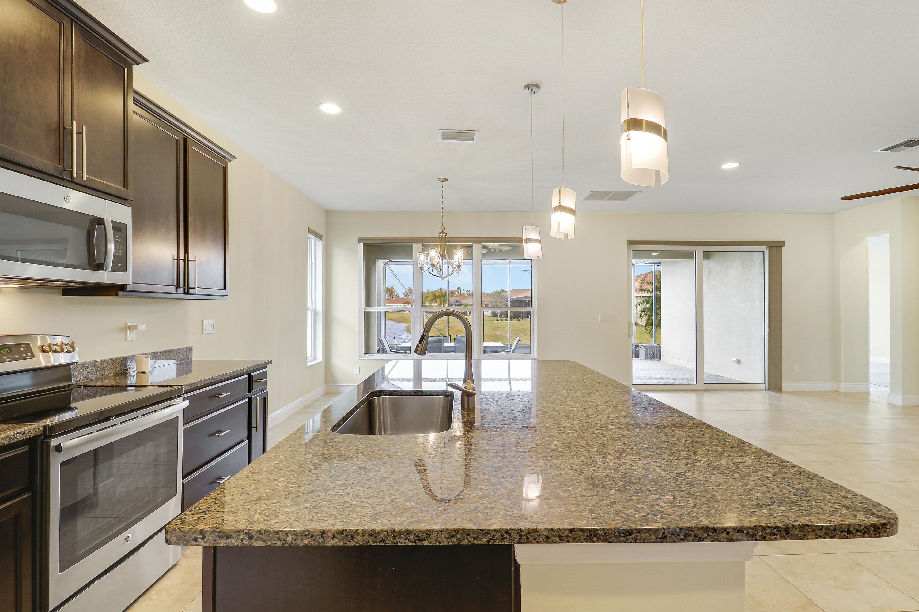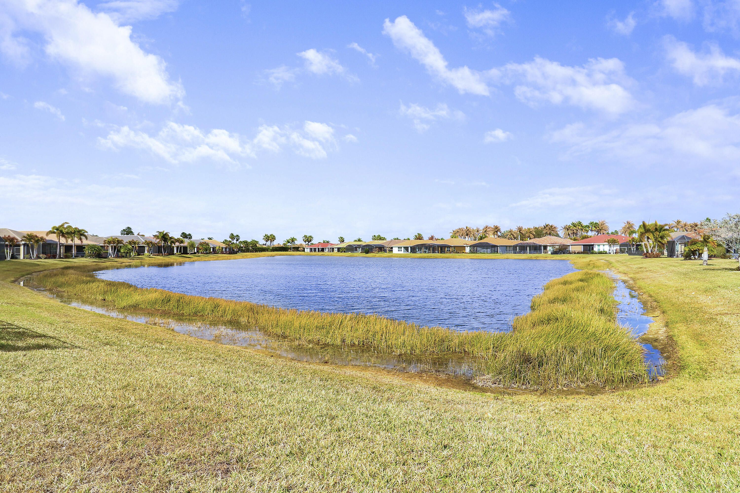Wake up to gorgeous lake views in this 2BR+Den/2BA/2CG Jensen floor plan located in the 55+ community of Vitalia at Tradition! This move-in ready home features a screened entry, decorative impact glass front door, impact glass windows & doors, open living area, extended screened lanai, barrel tile roof, large closets, custom window treatments t/o and more! The open kitchen features a plethora of 42'' wood cabinetry, granite counters, SS appliances, breakfast bar and pendant lighting. Master suite with views of the lake has multiple closets, dressing area and ensuite bathroom with dual sinks and tiled shower. Guest bedroom located adjacent to the hall bathroom. The den has double glass doors and is the perfect place for a home office, craft space or additional TV room. Florida living comes to life with the screened and partially covered oversized lanai, utilizing 'tiny mesh' extra tight screening while providing a spacious outdoor area to dine, lounge and relax. The screened entry allows for a beautiful breeze, all while enjoying the views and birds by the lake. A 4-foot garage extension with upgraded epoxy-coated flooring includes wall-mounted shelving design for heavy weight capacity. HOA dues include basic cable, internet, alarm monitoring, security, lawn care, common area maintenance and access to the community amenities. Vitalia is a resort style 55+ community with plentiful amenities including two beautiful pools, clubhouse, pickleball & tennis courts, putting green, comprehensive fitness center complete with a wide array of classes and trained staff, library, social clubs and more. Located just a short bike ride from charming Tradition town square with shopping, dining and events. Conveniently located to interstates, hospitals, beaches and airports. Wonderful opportunity to own a slice of paradise. Call today!