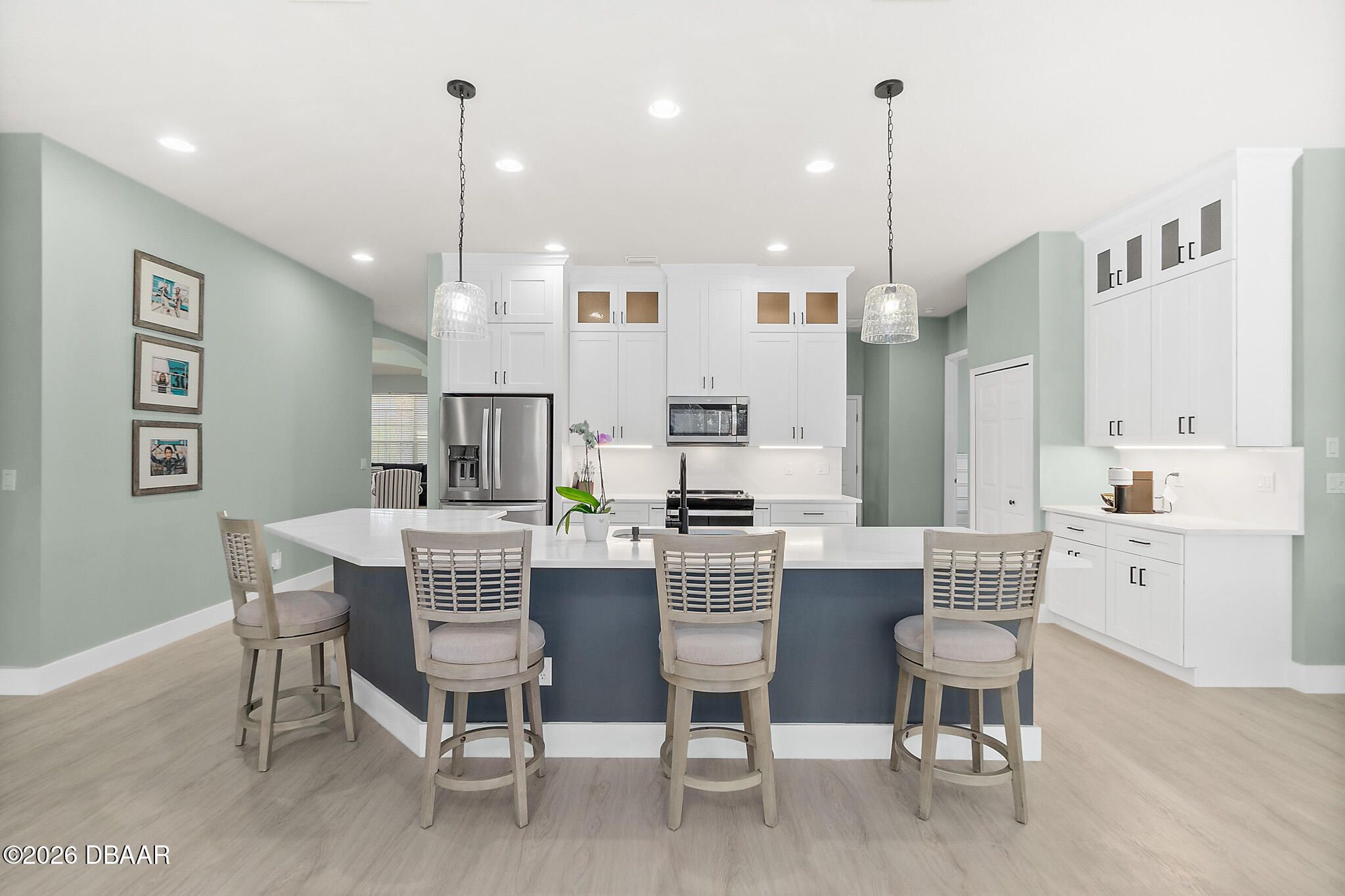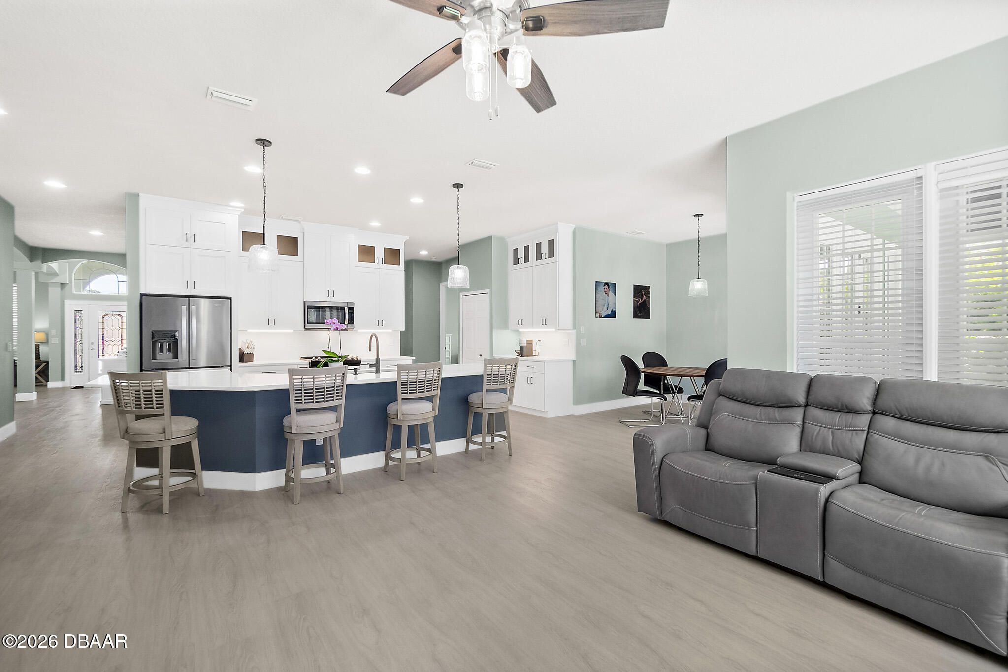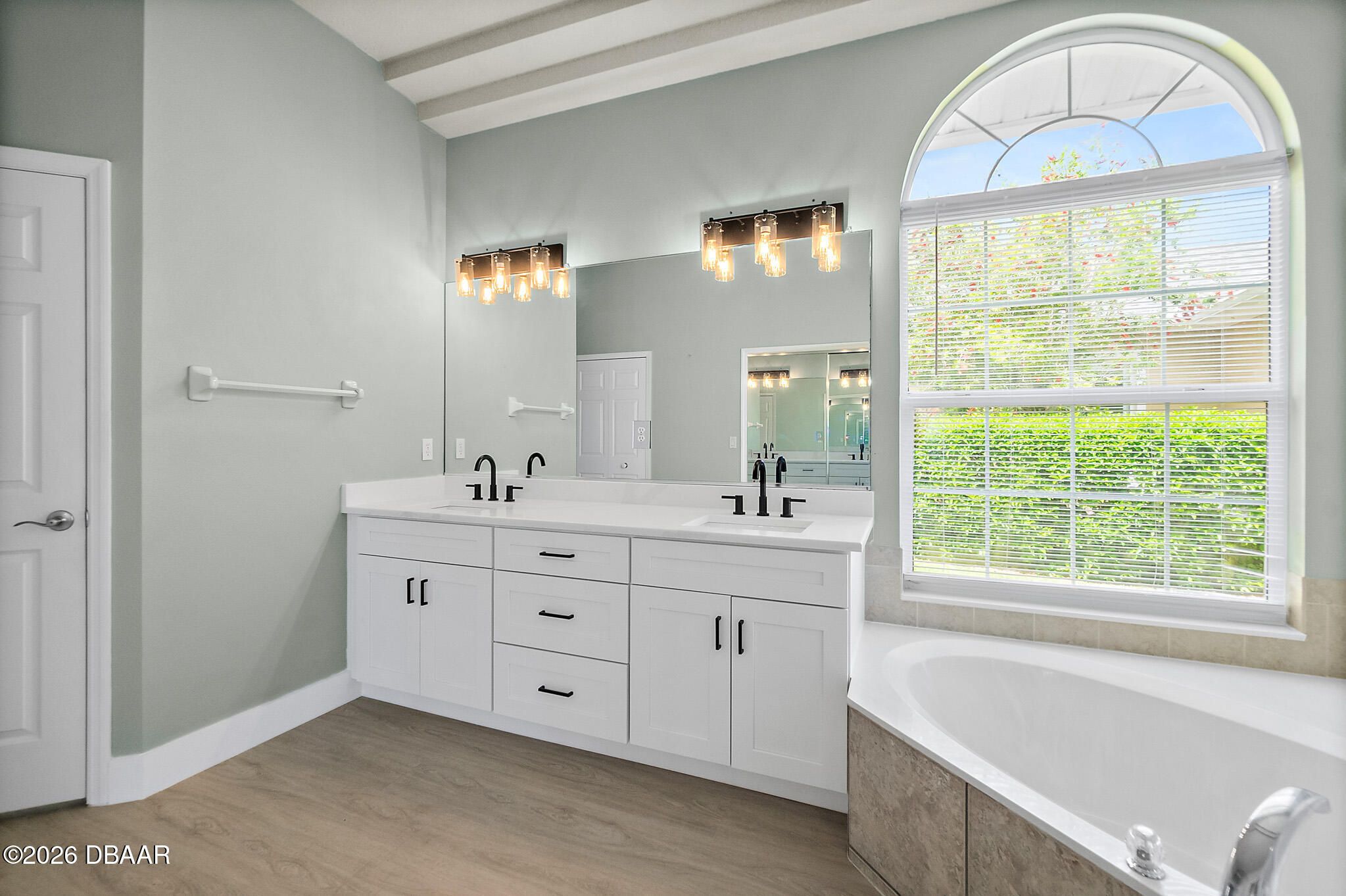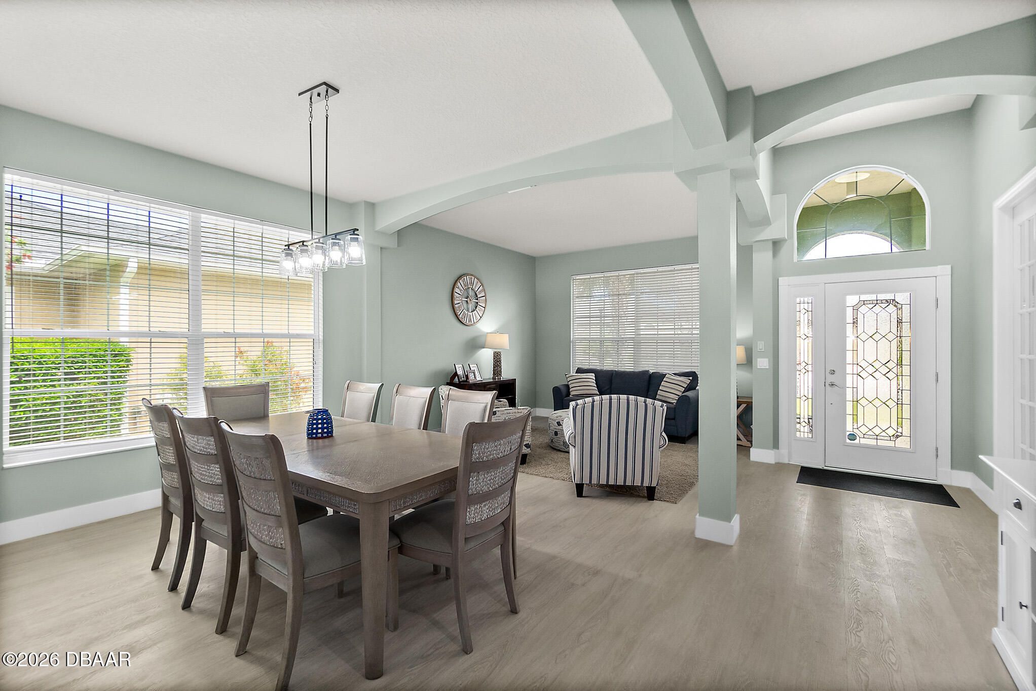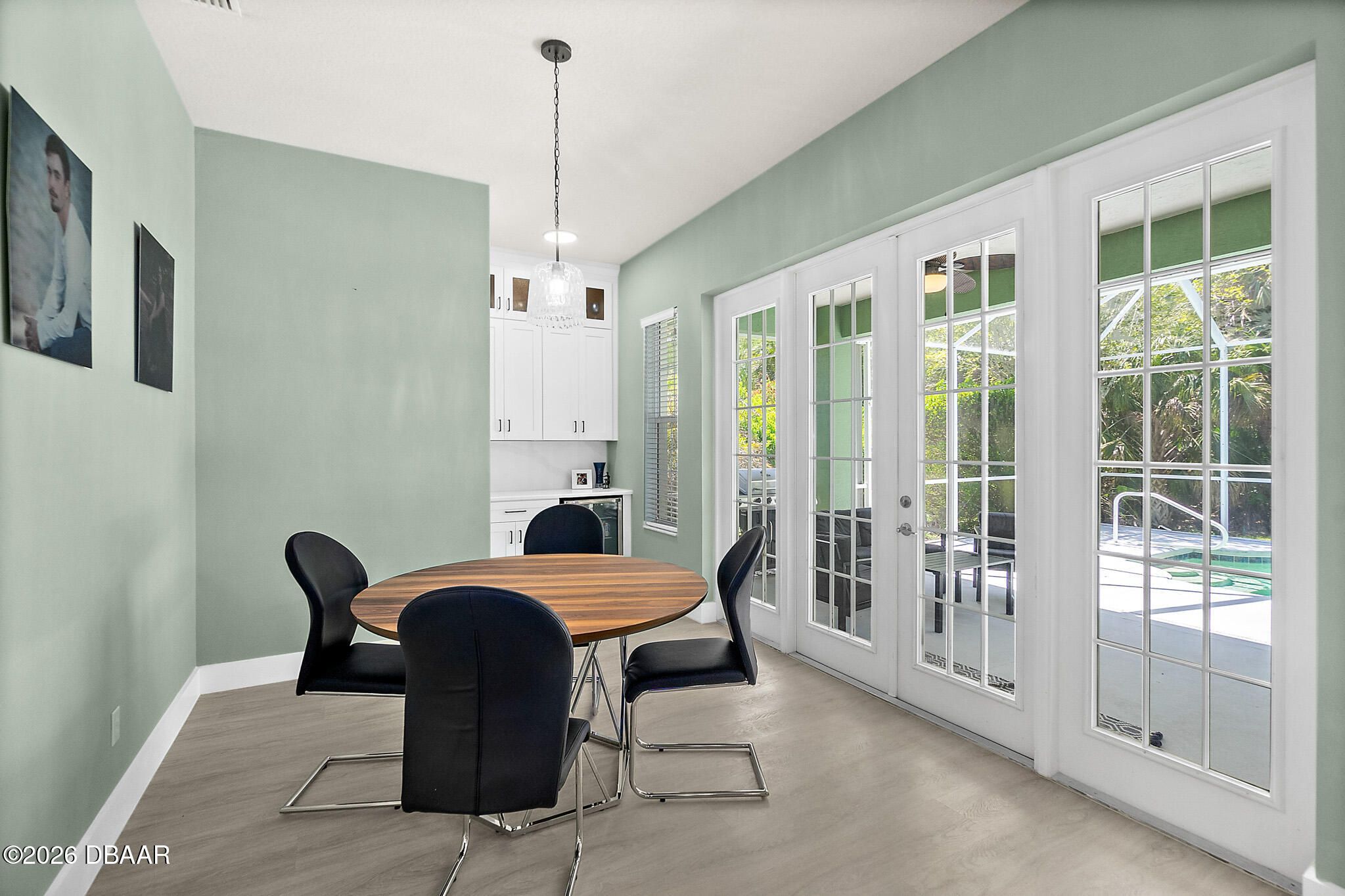 Welcome to this beautifully maintained 4-bedroom, 2-bathroom home offering 2,575 square feet of living space in the highly sought-after Plantation Bay community. Designed with a thoughtful split-bedroom layout, this home provides ultimate privacy and comfort. Step inside to discover an open floor plan, where the spacious kitchen seamlessly flows into the inviting family room and informal dining area. Large windows and french doors bring in an abundance of natural light and offer picturesque views of the sparkling pool and serene backyard. The tranquil outdoor space is perfect for relaxation or entertaining, with the pool area backing up to a peaceful nature preserve, ensuring privacy and a calm, scenic backdrop. Whether you're hosting a gathering or enjoying a quiet evening, this home provides the ideal setting for modern living. New water heater, LVP flooring, kitchen and bathroom cabinets, trim, lighting, quartz countertops, sinks and faucets 2025. New roof, gutters and sprinkler sprinkler system update 2024. Newer paint, kitchen appliances, screen enclosures and pool heater. HVAC new in 2023. Plantation Bay memberships available which provide access to wellness center, pickleball and tennis as well as golf and clubhouse. 3 car garage with built in storage/workshop, 240 outlet.