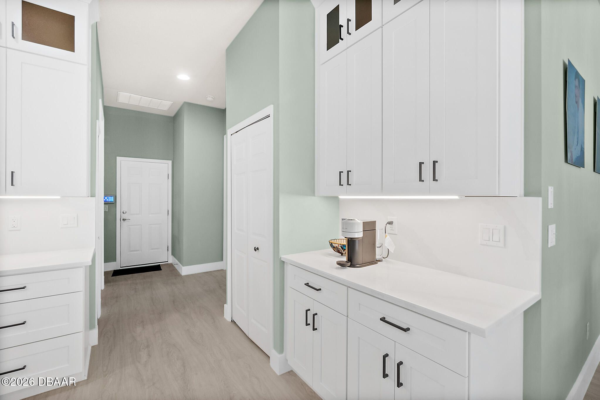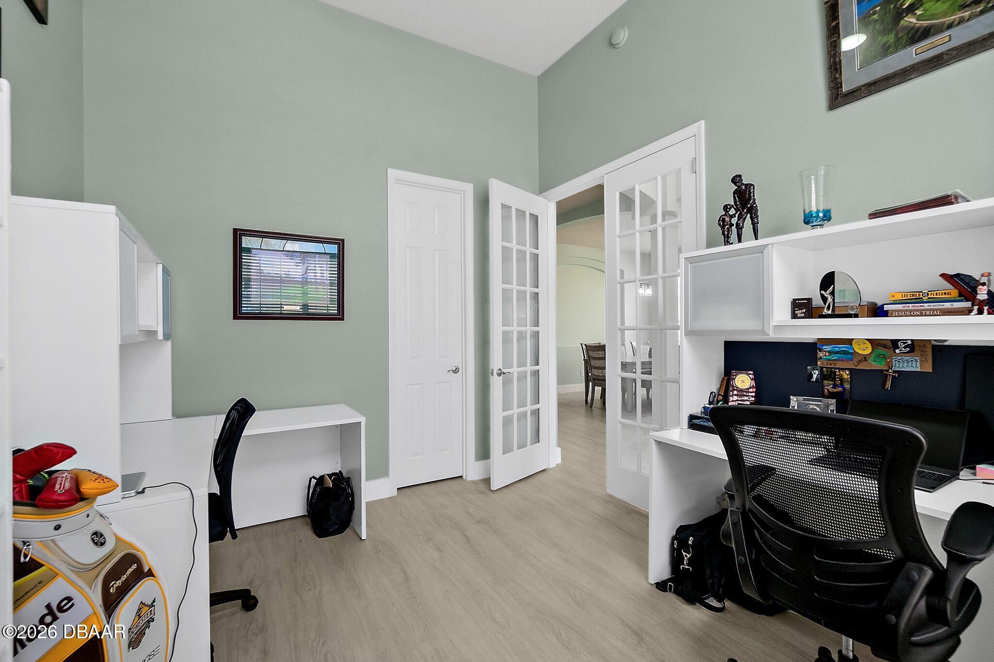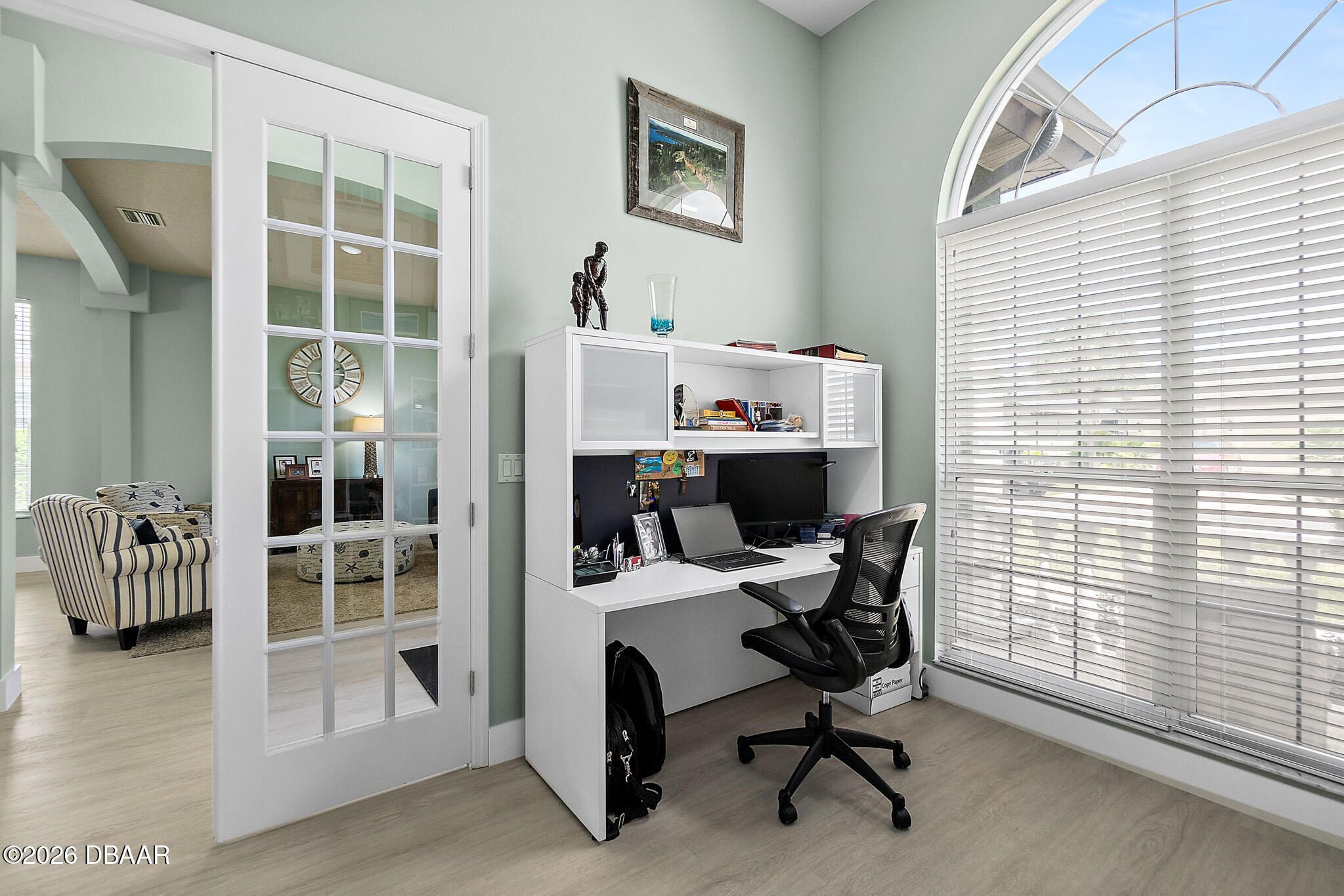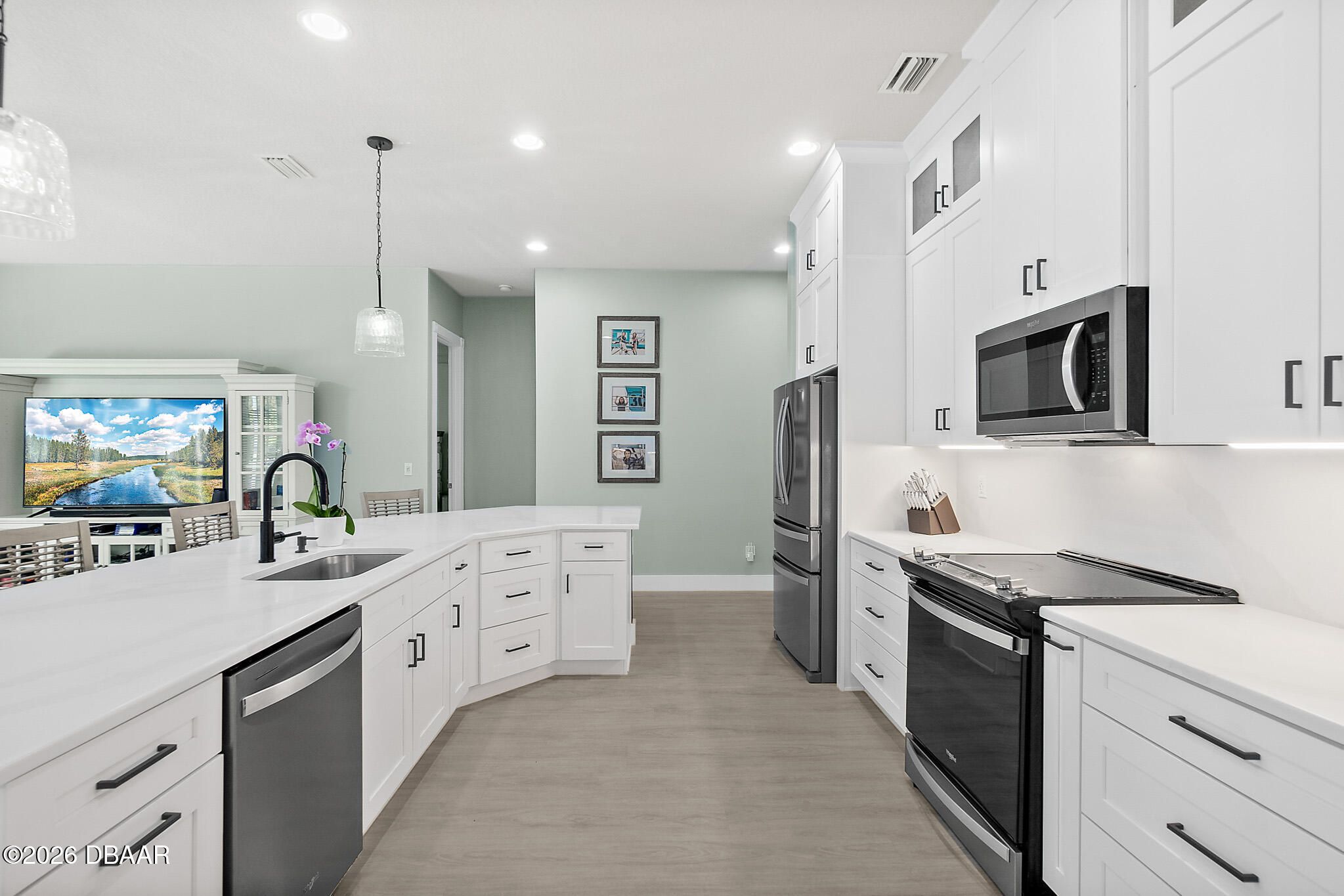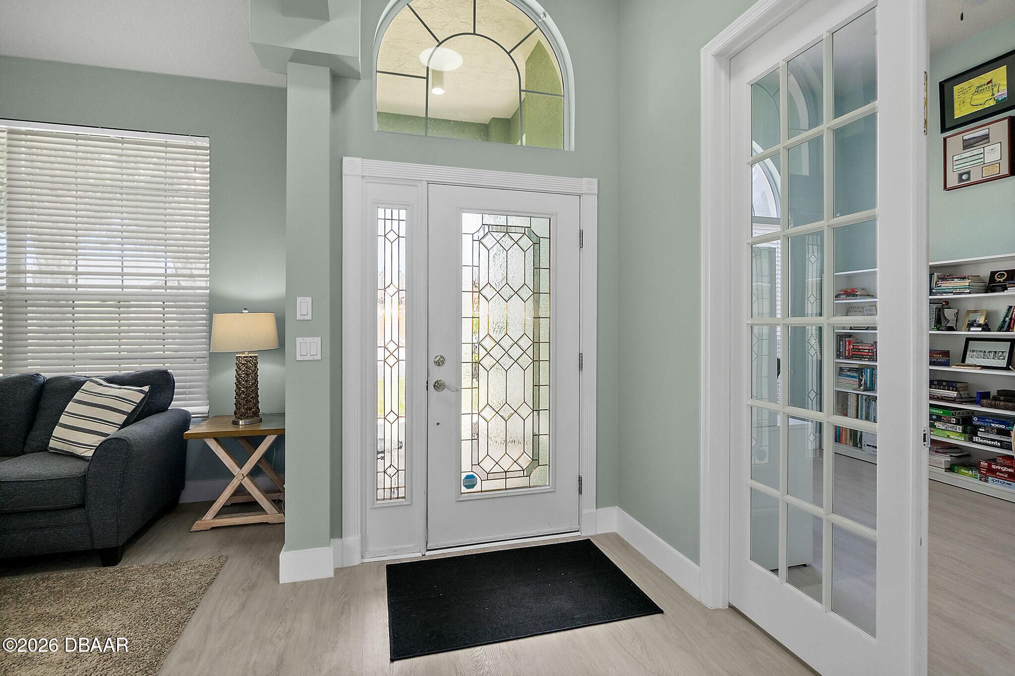 Welcome to this beautifully maintained 4-bedroom, 2-bathroom home offering 2,575 square feet of living space in the highly sought-after Plantation Bay community. Designed with a thoughtful split-bedroom layout, this home provides ultimate privacy and comfort. Step inside to discover an open floor plan, where the spacious kitchen seamlessly flows into the inviting family room and informal dining area. Large windows and french doors bring in an abundance of natural light and offer picturesque views of the sparkling pool and serene backyard. The tranquil outdoor space is perfect for relaxation or entertaining, with the pool area backing up to a peaceful nature preserve, ensuring privacy and a calm, scenic backdrop. Whether you're hosting a gathering or enjoying a quiet evening, this home provides the ideal setting for modern living. New water heater, LVP flooring, kitchen and bathroom cabinets, trim, lighting, quartz countertops, sinks and faucets 2025. New roof, gutters and sprinkler sprinkler system update 2024. Newer paint, kitchen appliances, screen enclosures and pool heater. HVAC new in 2023. Plantation Bay memberships available which provide access to wellness center, pickleball and tennis as well as golf and clubhouse. 3 car garage with built in storage/workshop, 240 outlet.