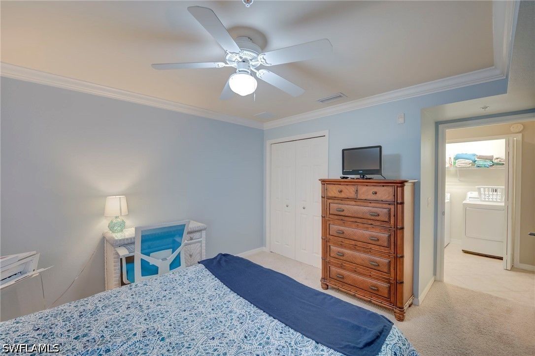 Welcome to your slice of paradise in Heritage Bay Golf & Country Club! This beautifully maintained 2-bedroom plus den 2-bathroom second-floor VERANDA offers the perfect blend of comfort, style, and resort-style living in the heart of Naples .Step inside to find an open and airy floor plan filled with natural light, complemented by tasteful finishes and a neutral palette that creates a warm, inviting atmosphere. The spacious kitchen features ample cabinetry, modern appliances, and a convenient breakfast bar—perfect for casual dining or entertaining guests. The living and dining areas flow seamlessly onto a private screened lanai, where you can relax and take in serene views of the golf course and lush landscaping. The primary suite offers a peaceful retreat with generous closet space and an en-suite bath, while the guest bedroom provides comfort and privacy for visitors. This property includes bundled golf, giving you access to Heritage Bay’s 27-hole championship course designed for players of all skill levels. Residents also enjoy an impressive array of amenities, including a resort-style pool, clubhouse, fitness center, tennis courts, pickleball, dining options, and a vibrant social calendar.