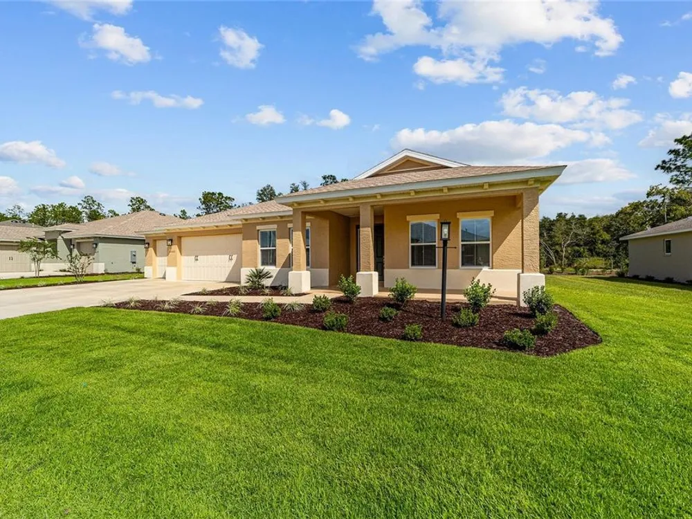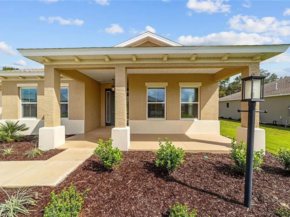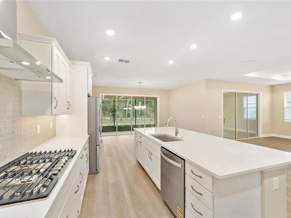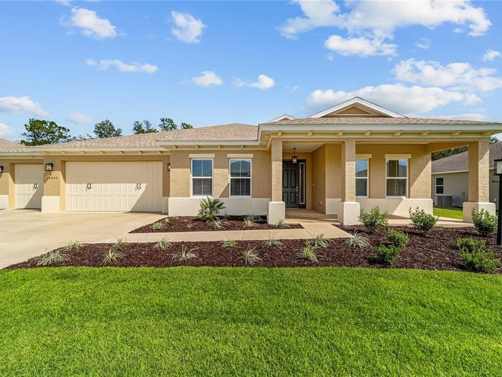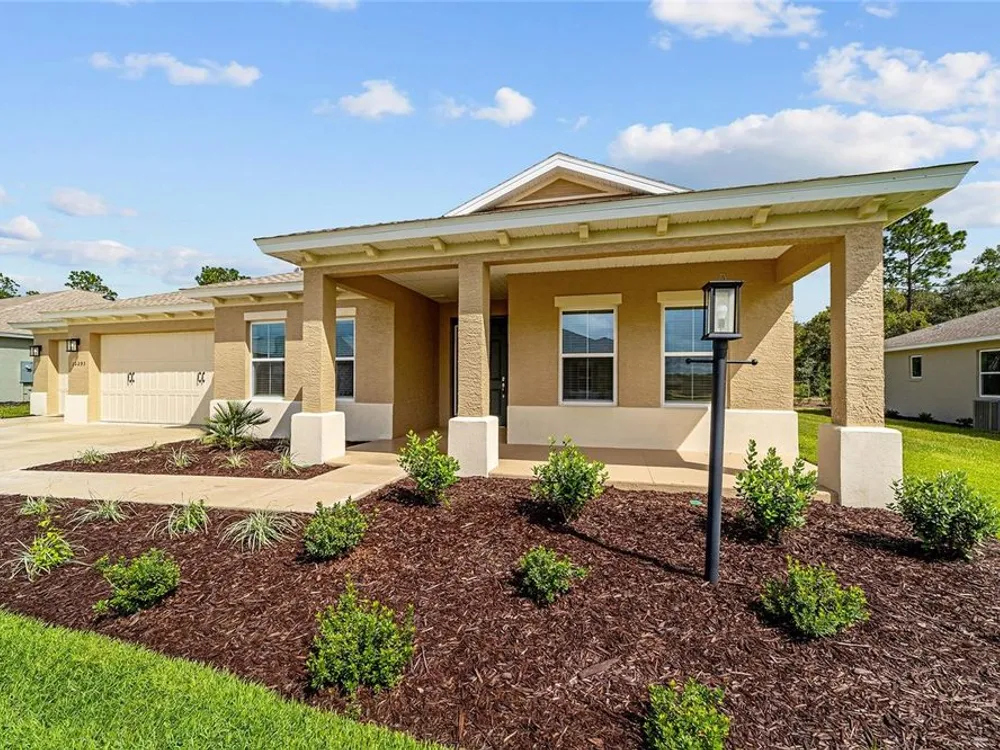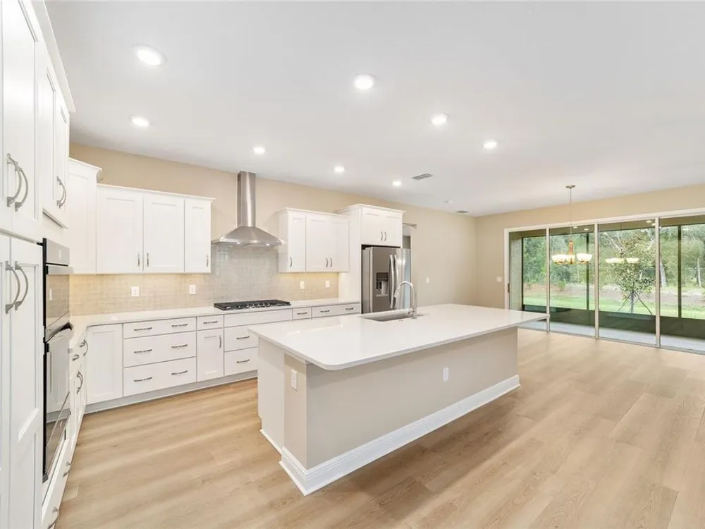 Elegant Arlington Model in LongLeaf Ridge at On Top of the World! This stunning new construction home offers 3 bedrooms, 3 bathrooms, and a spacious 3-car garage with an additional workshop area, perfect for extra storage or projects. Step inside to discover an open floor plan with tray ceilings and abundant natural light. The gourmet kitchen is a showstopper, featuring premium white staggered cabinets with crown molding, under-cabinet lighting, quartz countertops, a built-in oven and microwave, a 5-burner cooktop, and a walk-in pantry—ideal for anyone who loves to cook or entertain. Two sets of sliding glass doors lead to the screened lanai, offering peaceful views with no rear neighbors—the perfect space for relaxing or hosting guests. Located in the sought-after LongLeaf Ridge neighborhood within Ocala’s premier 55+ community, On Top of the World, this Arlington Model combines elegant design, quality craftsmanship, and the best of Florida living. Call for your private showing today!