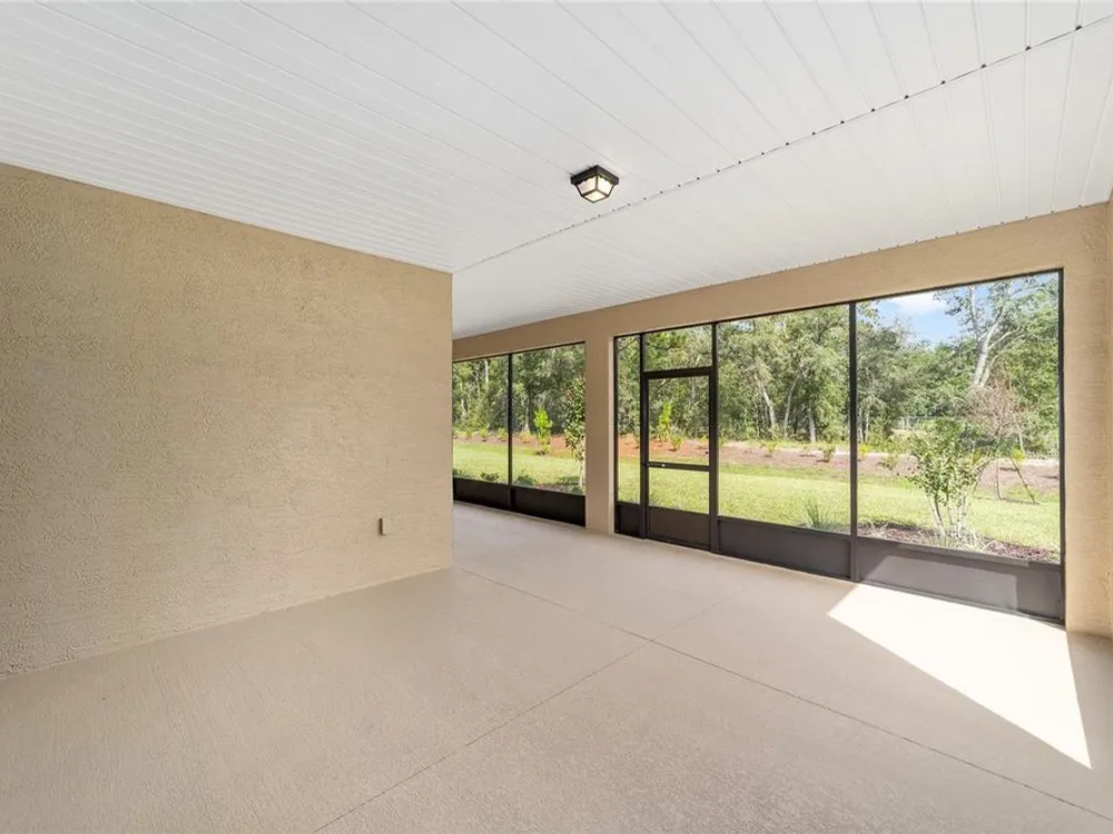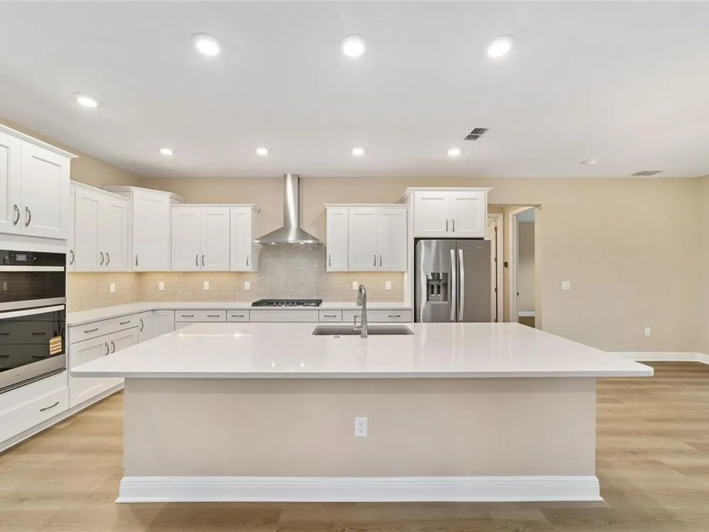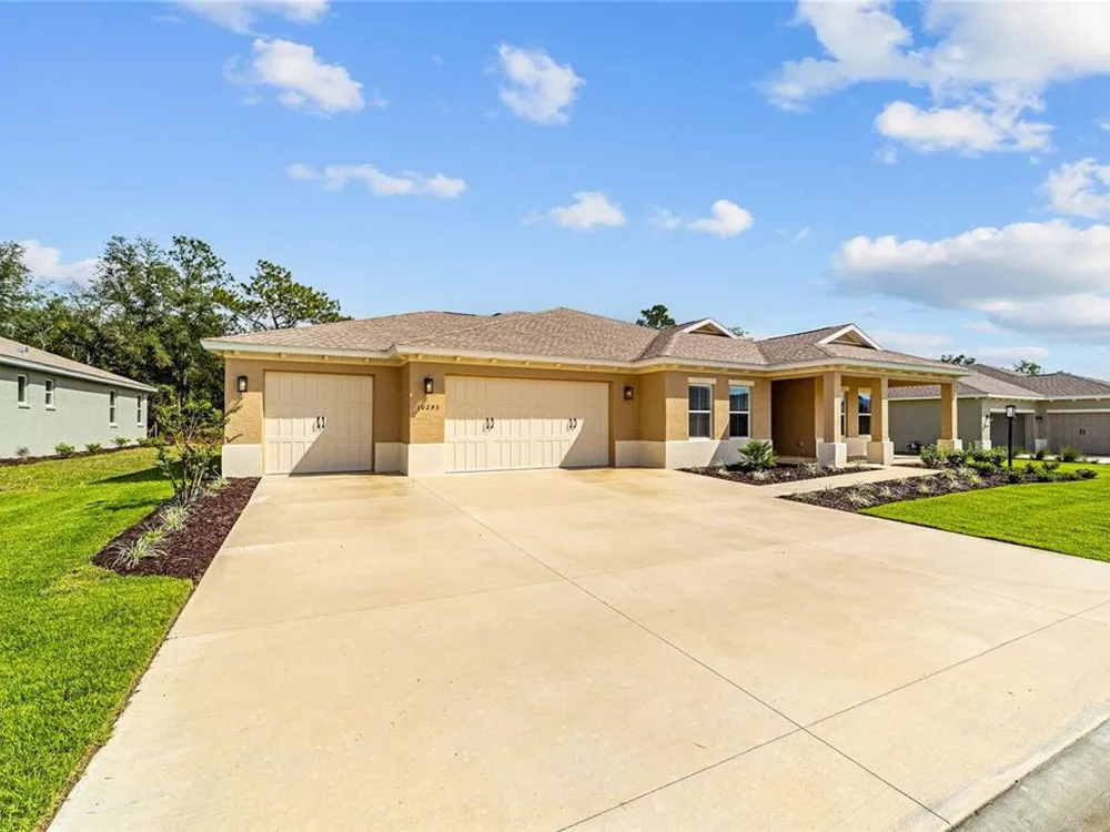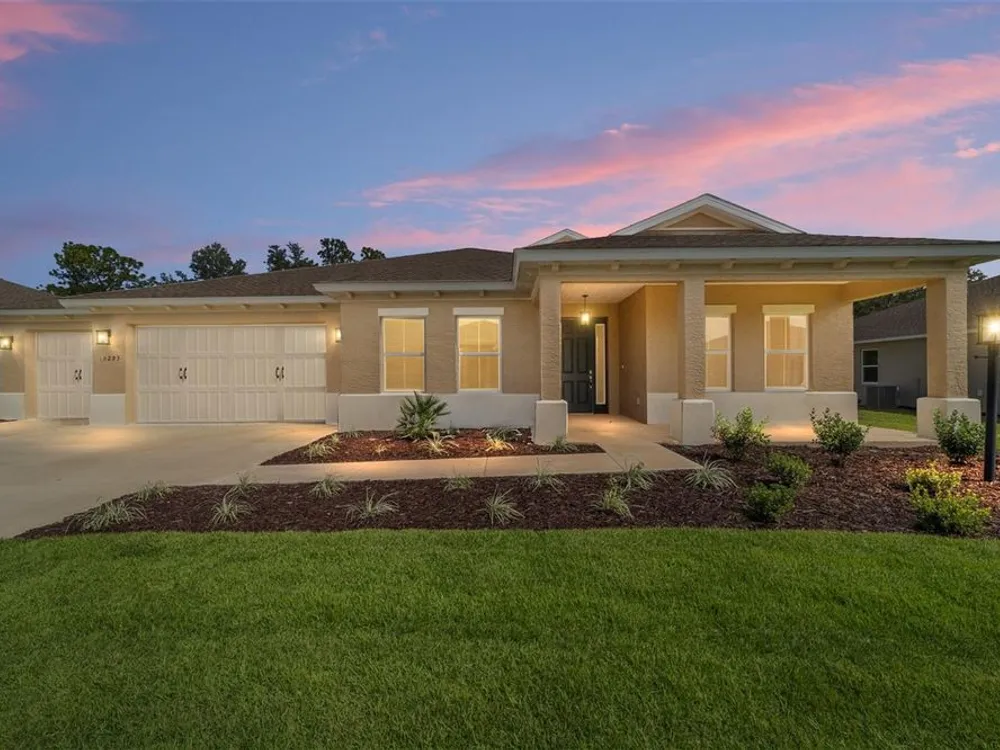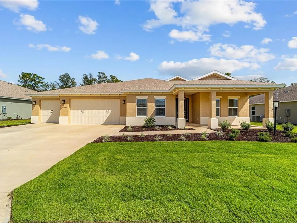 Elegant Arlington Model in LongLeaf Ridge at On Top of the World! This stunning new construction home offers 3 bedrooms, 3 bathrooms, and a spacious 3-car garage with an additional workshop area, perfect for extra storage or projects. Step inside to discover an open floor plan with tray ceilings and abundant natural light. The gourmet kitchen is a showstopper, featuring premium white staggered cabinets with crown molding, under-cabinet lighting, quartz countertops, a built-in oven and microwave, a 5-burner cooktop, and a walk-in pantry—ideal for anyone who loves to cook or entertain. Two sets of sliding glass doors lead to the screened lanai, offering peaceful views with no rear neighbors—the perfect space for relaxing or hosting guests. Located in the sought-after LongLeaf Ridge neighborhood within Ocala’s premier 55+ community, On Top of the World, this Arlington Model combines elegant design, quality craftsmanship, and the best of Florida living. Call for your private showing today!