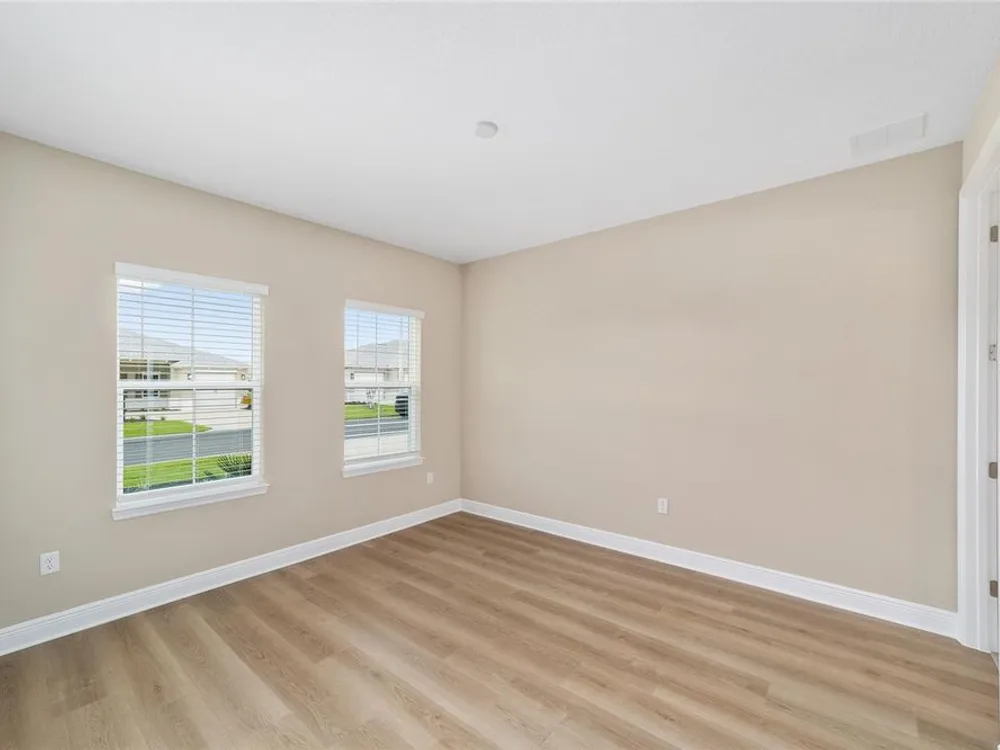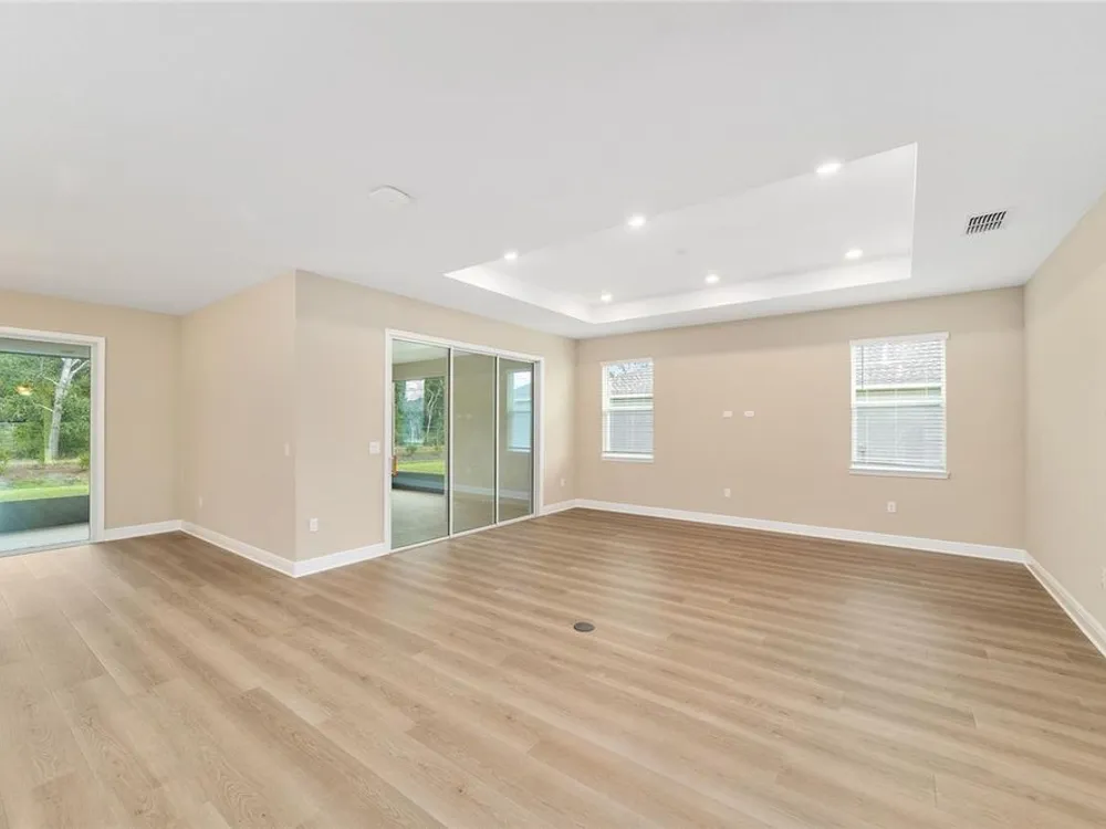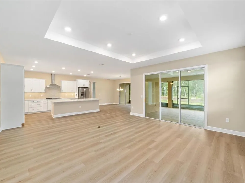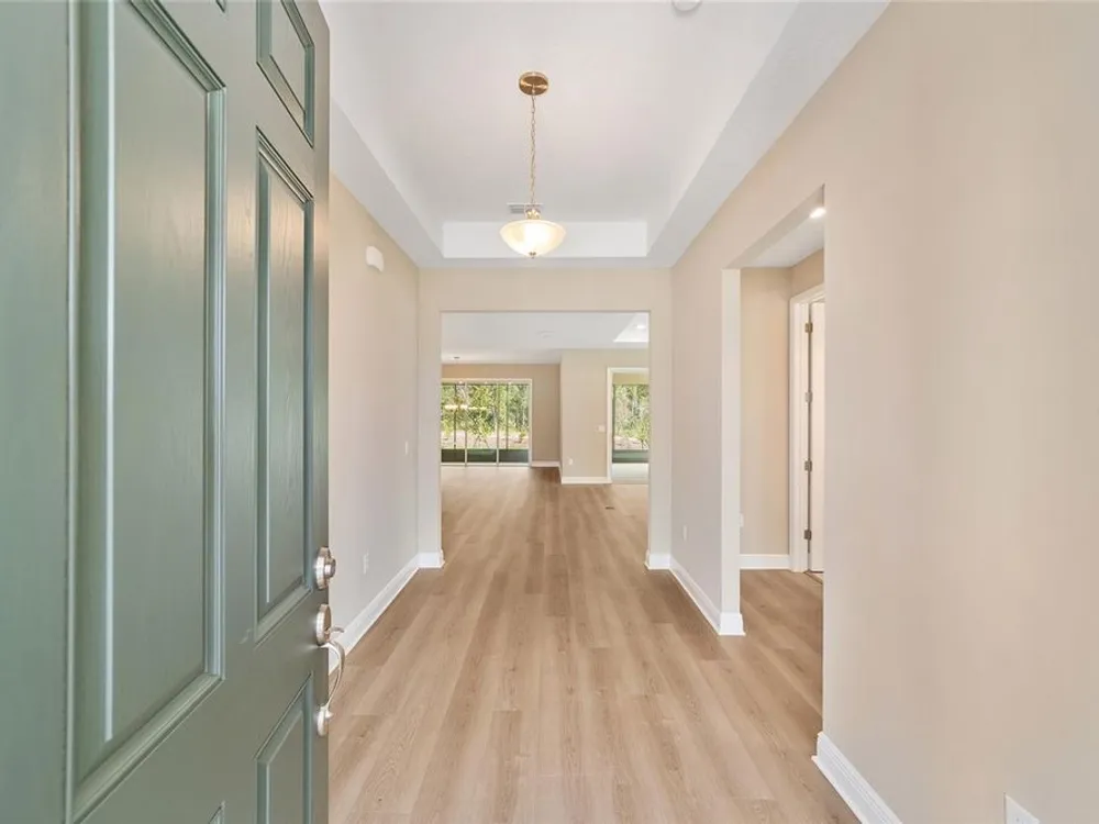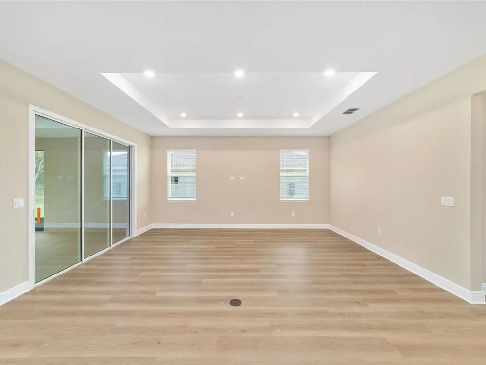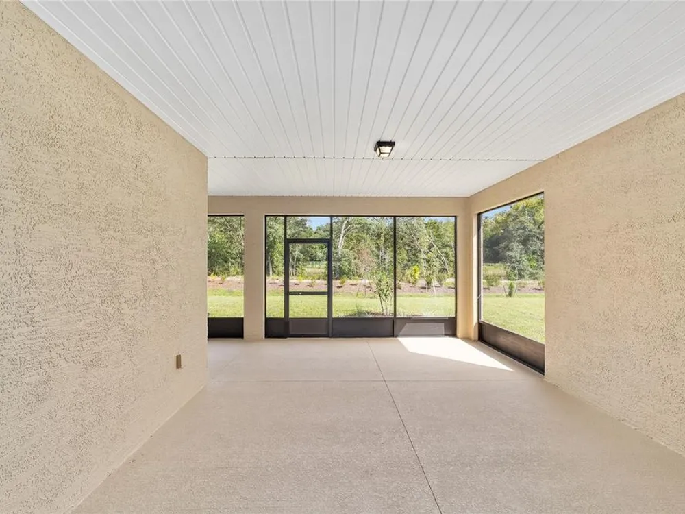 Elegant Arlington Model in LongLeaf Ridge at On Top of the World! This stunning new construction home offers 3 bedrooms, 3 bathrooms, and a spacious 3-car garage with an additional workshop area, perfect for extra storage or projects. Step inside to discover an open floor plan with tray ceilings and abundant natural light. The gourmet kitchen is a showstopper, featuring premium white staggered cabinets with crown molding, under-cabinet lighting, quartz countertops, a built-in oven and microwave, a 5-burner cooktop, and a walk-in pantry—ideal for anyone who loves to cook or entertain. Two sets of sliding glass doors lead to the screened lanai, offering peaceful views with no rear neighbors—the perfect space for relaxing or hosting guests. Located in the sought-after LongLeaf Ridge neighborhood within Ocala’s premier 55+ community, On Top of the World, this Arlington Model combines elegant design, quality craftsmanship, and the best of Florida living. Call for your private showing today!