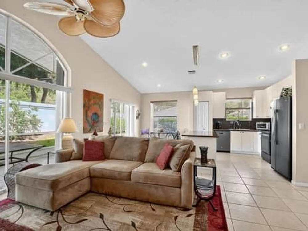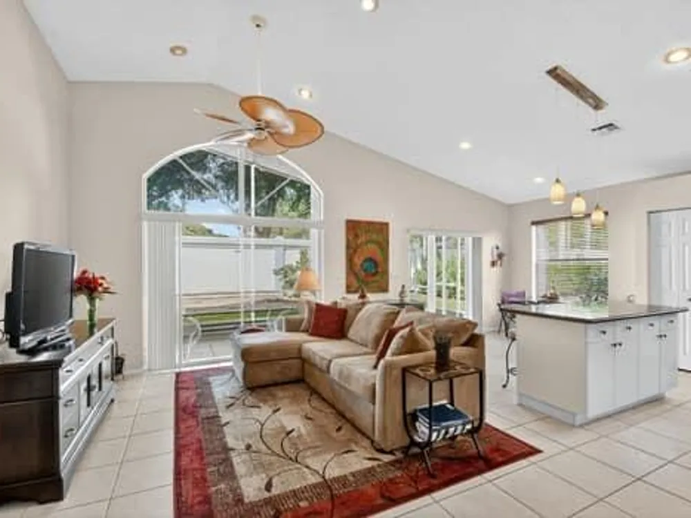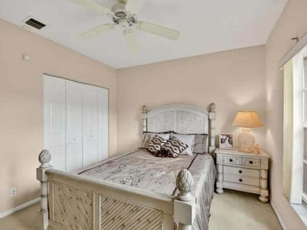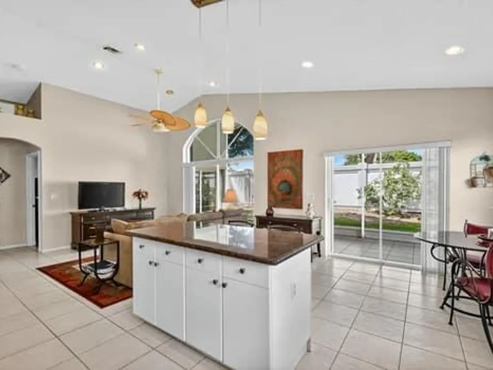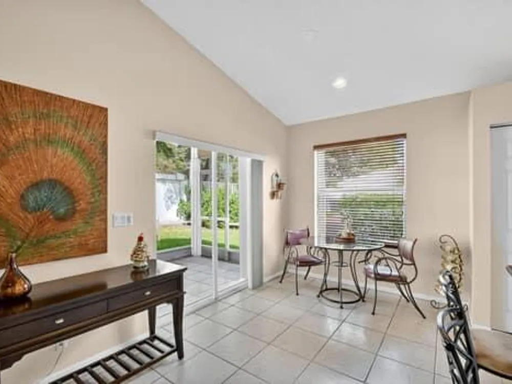 Welcome to this beautifully maintained 2 bedroom, 2 bathroom home with a den, located in the active 55+ community of Grove Isle. This spacious residence features vaulted ceilings, split floor plan and an open living area making it ideal for comfort and entertaining. The eat-in kitchen is equipped with granite countertops, fingerprint-resistant stainless steel appliances, a center island, and plenty of cabinetry. The primary suite is equipped with a generous walk-in closet and a well appointed bathroom that offers a spacious layout with a large walk-in shower, dual sinks and modern conveniences. This home is ready for you to move in! Grove Isle provides exceptional amenities, including a newly remodeled clubhouse, resort-style pool,