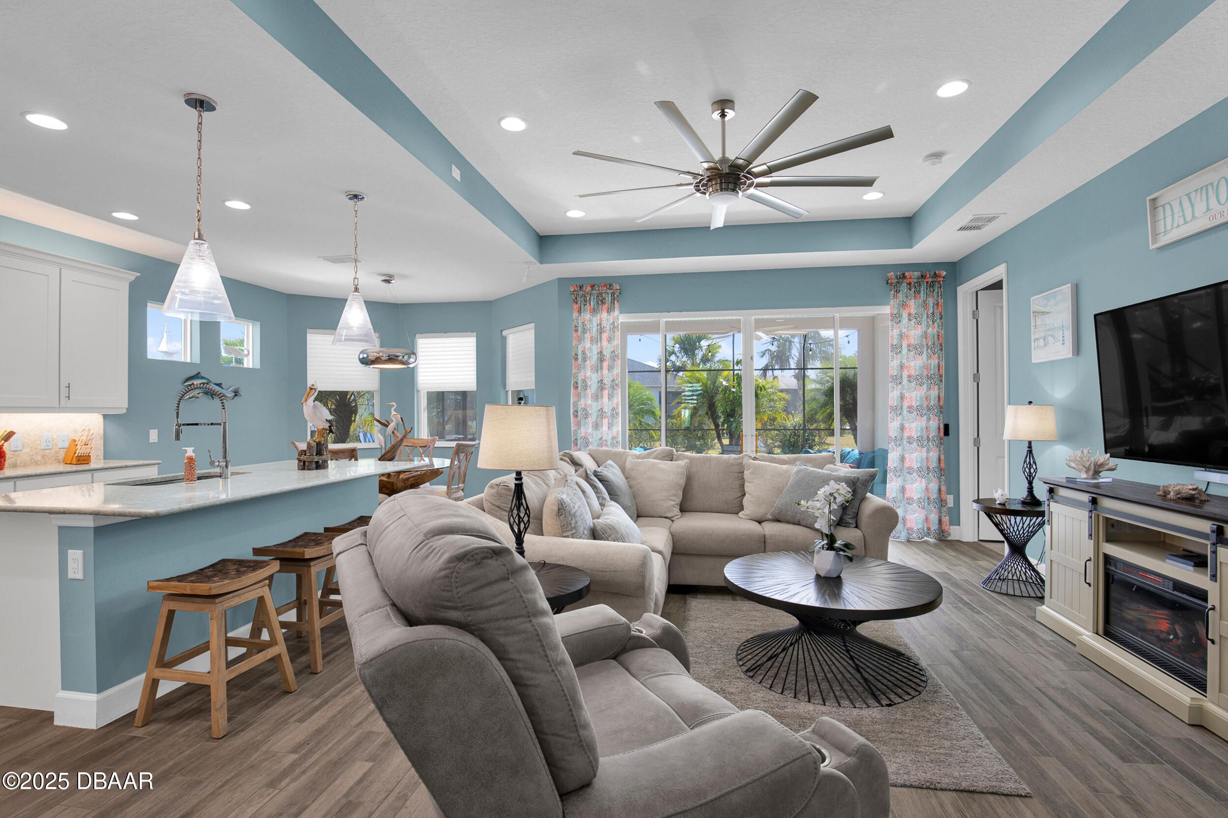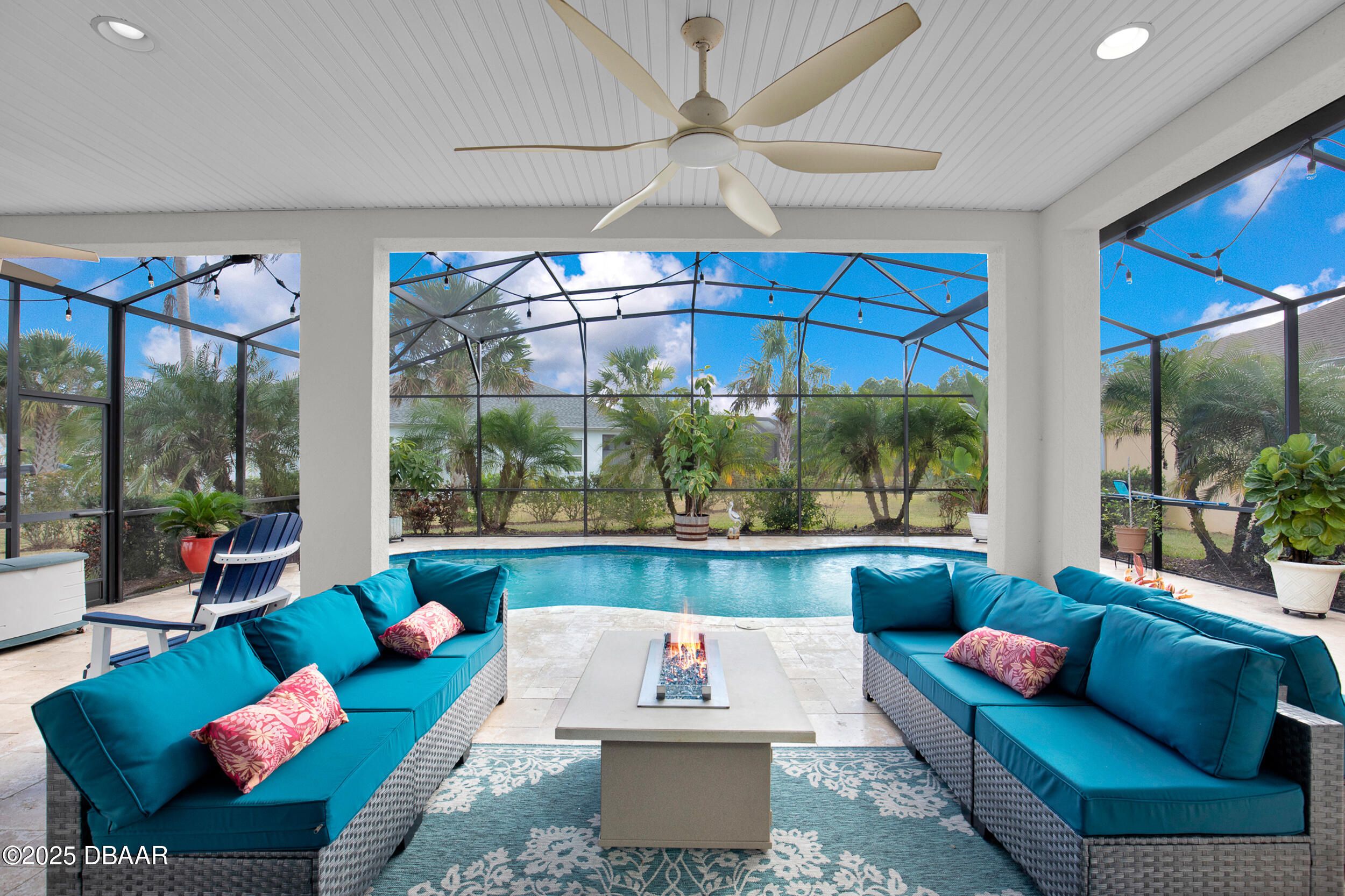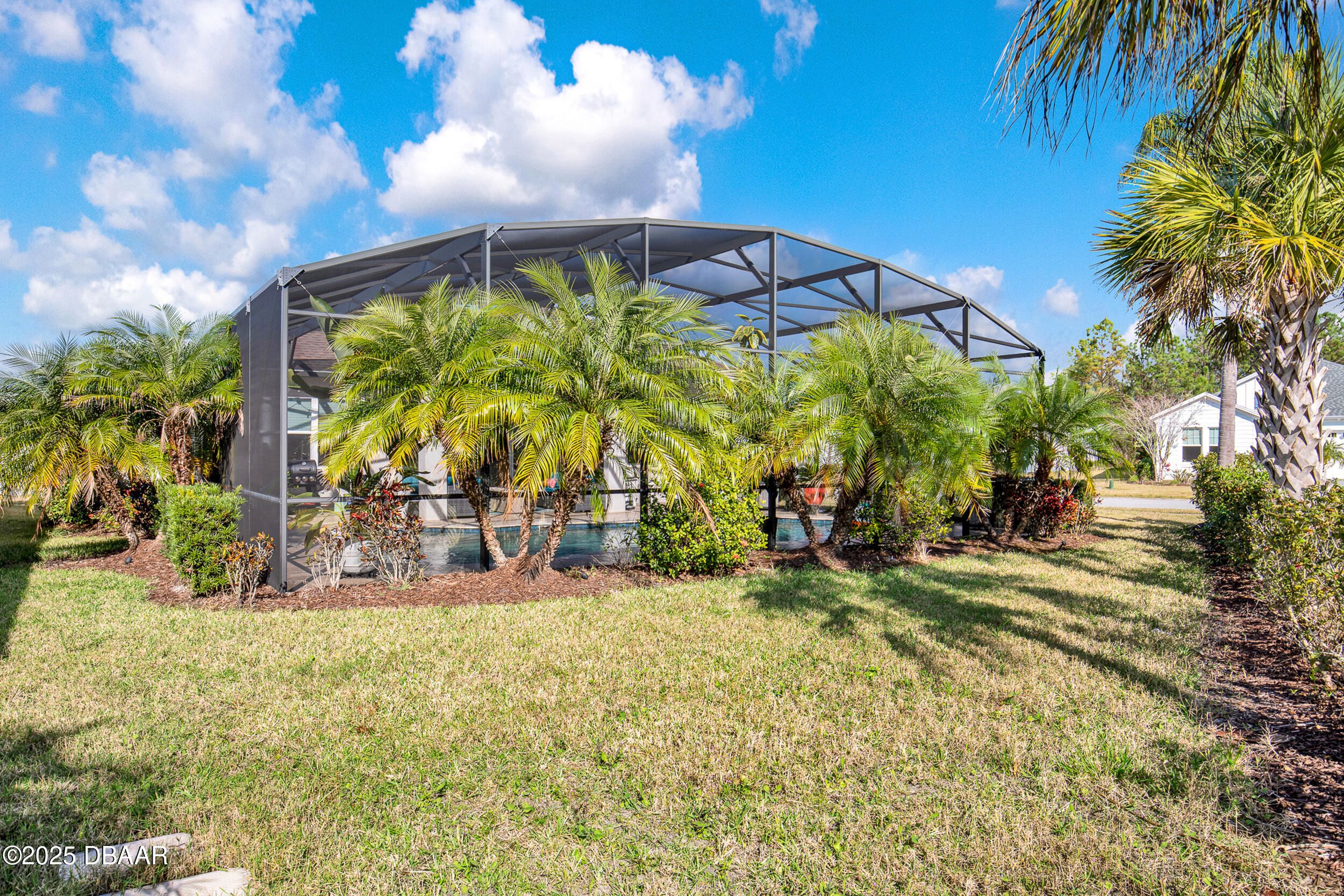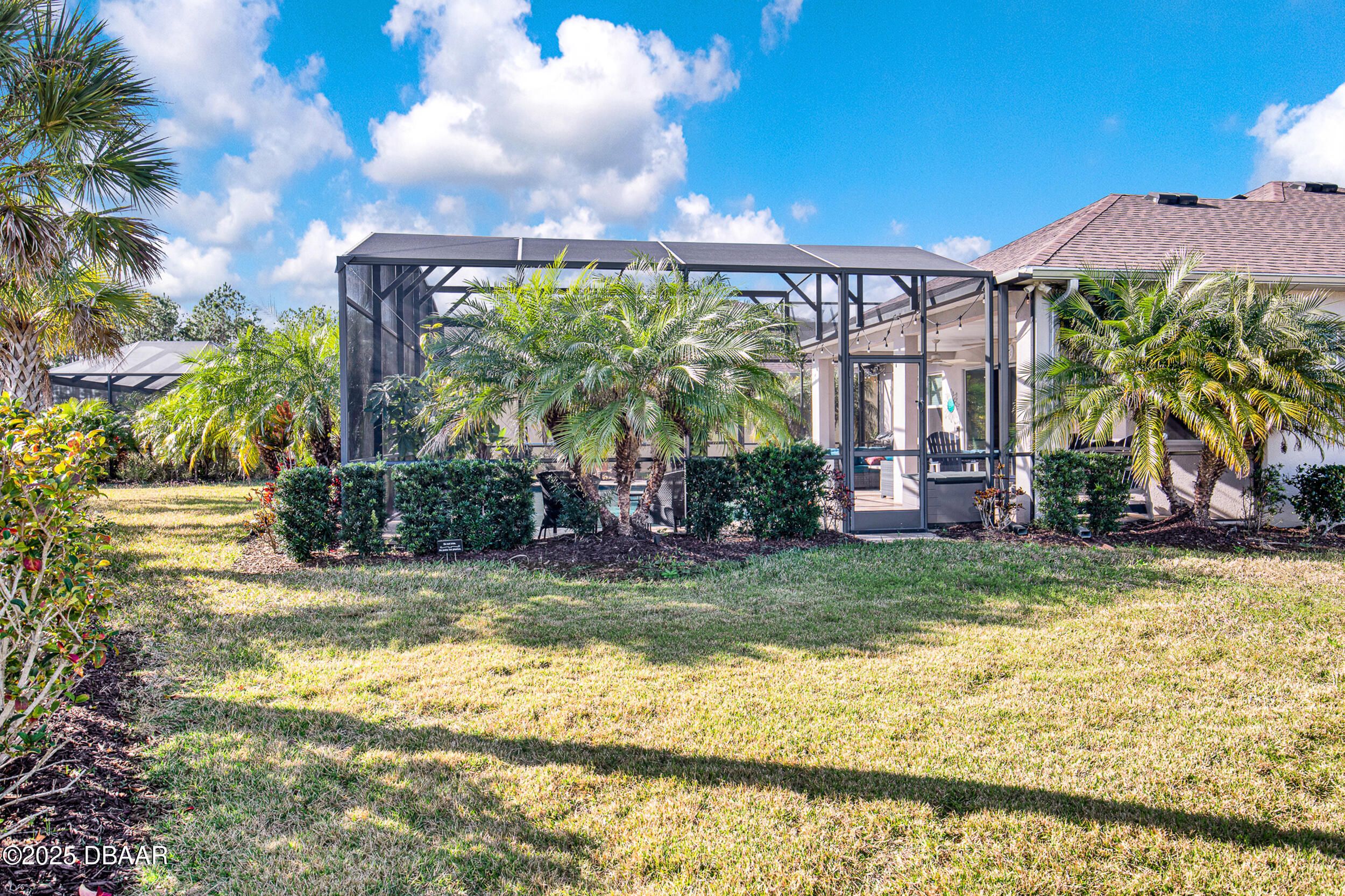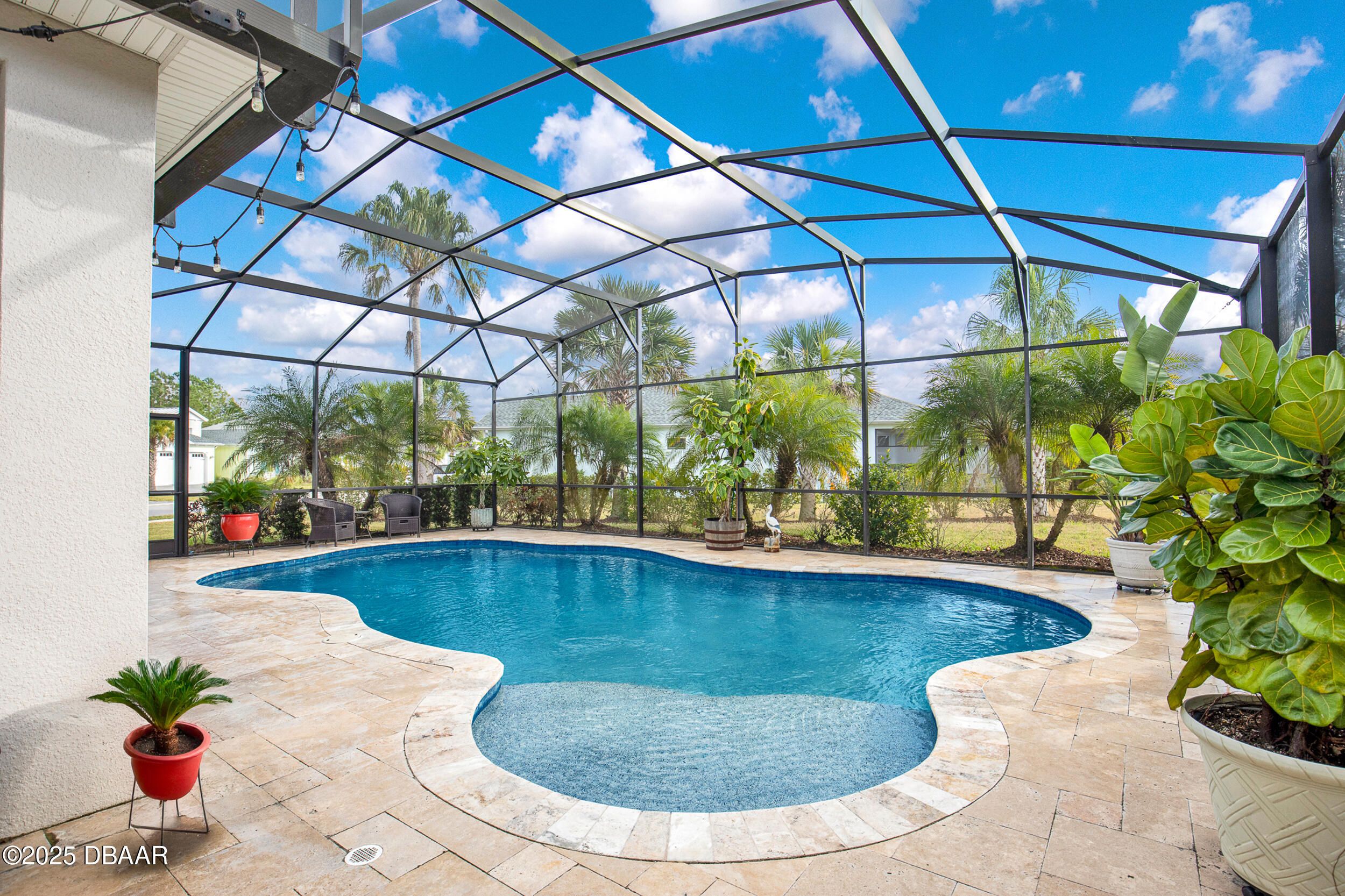 Discover this beautiful Coconut pool home in desirable Phase 1 of Latitude Margaritaville, offering $100K+ in builder upgrades & pond views. Located on a corner lot with extra green space. The chef's kitchen impresses with 42'' upper white cabinetry with pullouts, GE Profile appliances, cooktop, wall oven & stunning Cambria quartz counters/backsplash. A large island flows into the bright living & dining areas with tray ceiling & lanai/pool views. This home features 2 bedrooms, 2 baths & den/office with double doors that can convert to a 3rd bedroom. Custom paint in all rooms. Enjoy an upgraded Bose surround system, enhanced HVAC w/ dehumidifier, gutters & Hunter Douglas silhouette blinds. The cul‑de‑sac lot offers serenity & spectacular outdoor retreat with a screened lanai, 20x36 heated UV/Ozone pool w/ travertine deck surrounded by lush palm landscaping. South exposure on pool. 8ft doors. Storage racks in garage. Golf cart negotiable. Start living the Margaritaville lifestyle toda