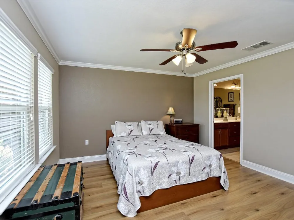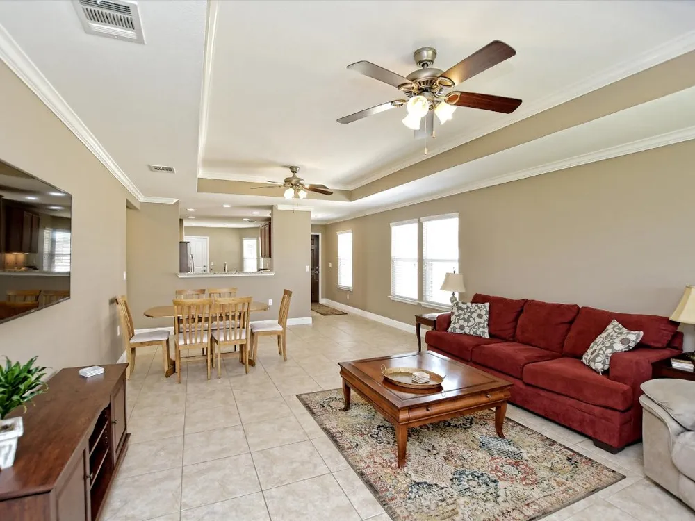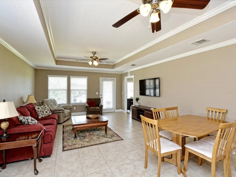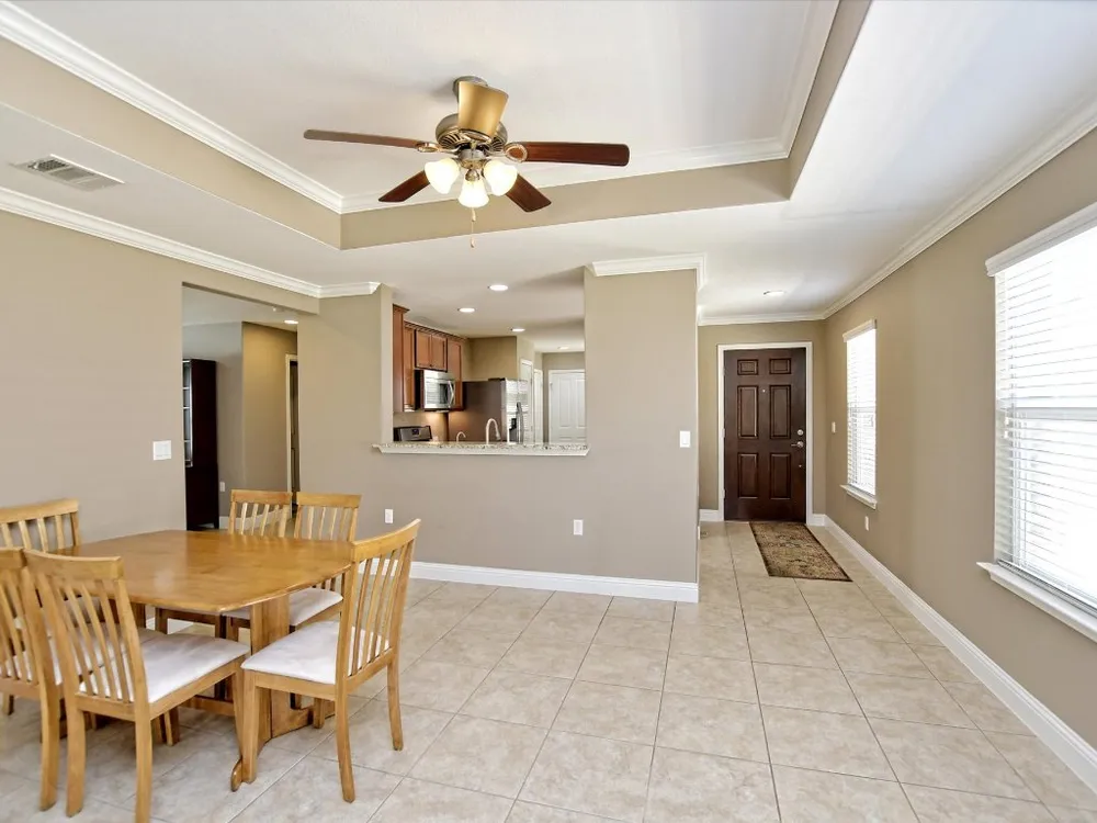 - Tray Ceiling(s), Ceiling Fan(s), Crown Molding, Separate/Formal Dining Room, Eat-in Kitchen, Granite Counters, In-Law Floorplan, Multiple Dining Areas, Main Level Primary, Walk-In Closet(s)