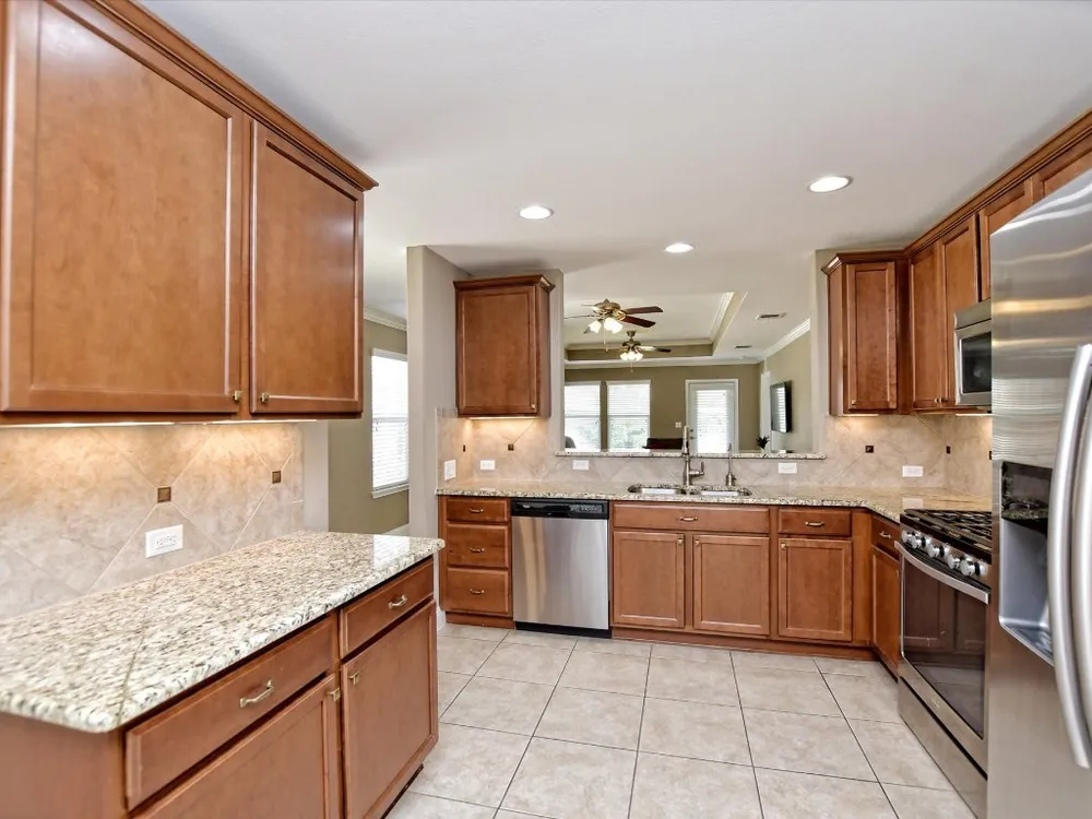 - Built-In Gas Range, Dishwasher, Exhaust Fan, Disposal, Microwave, Self Cleaning Oven