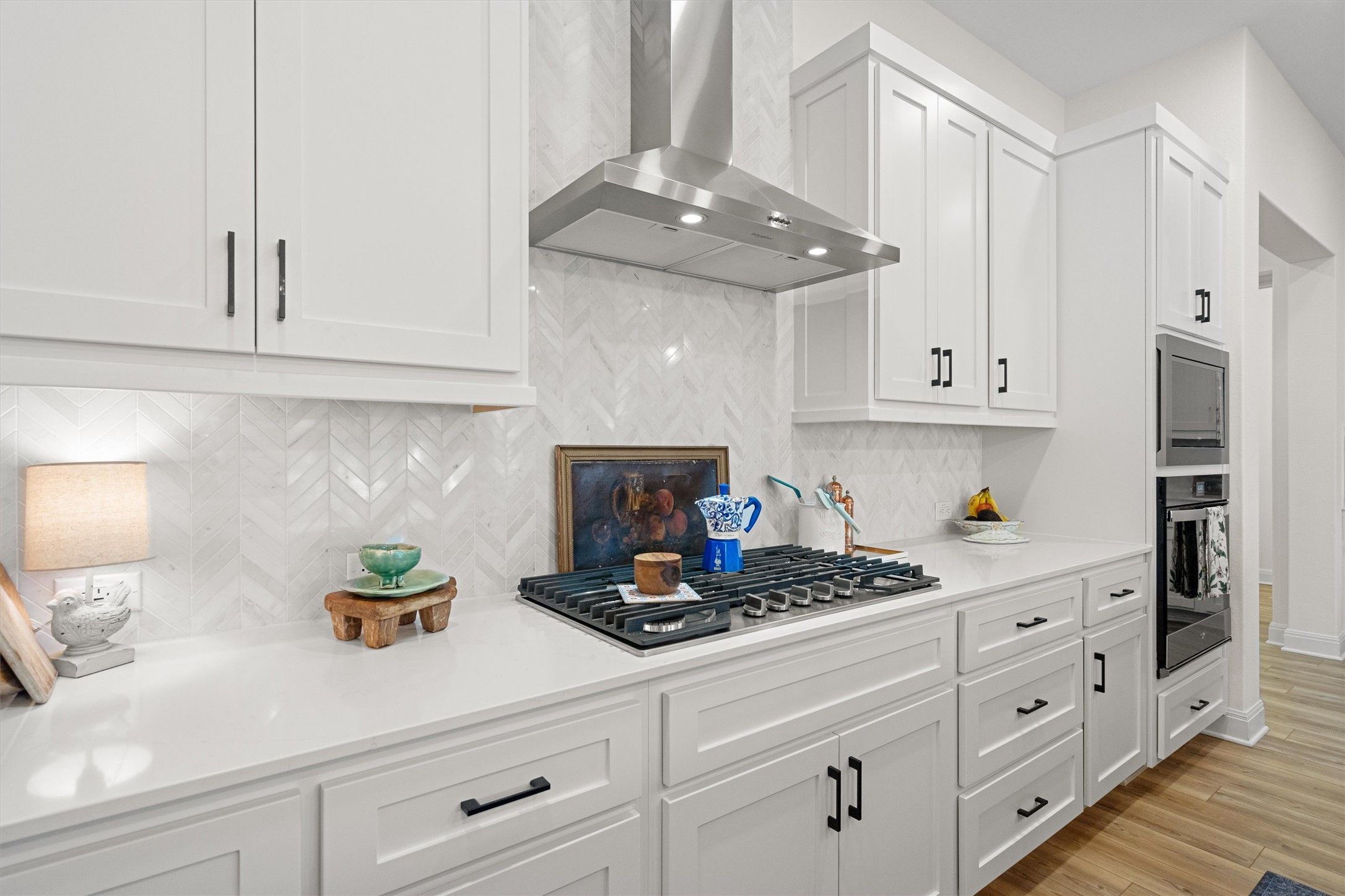 - Built-In Electric Oven, Dishwasher, Gas Cooktop, Disposal, Gas Water Heater, Microwave, Oven, Refrigerator, Range Hood, Stainless Steel Appliance(s), Wine Cooler