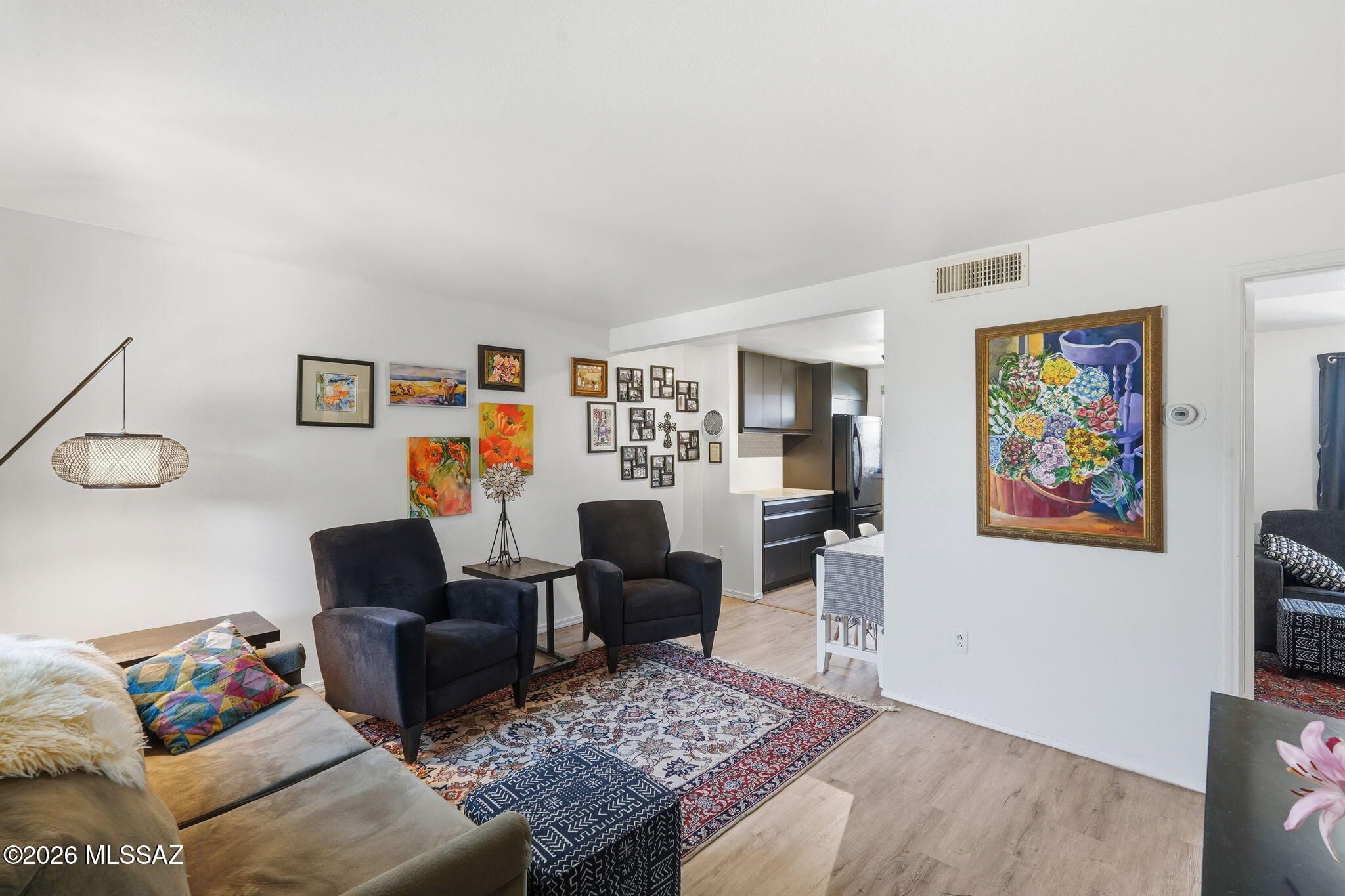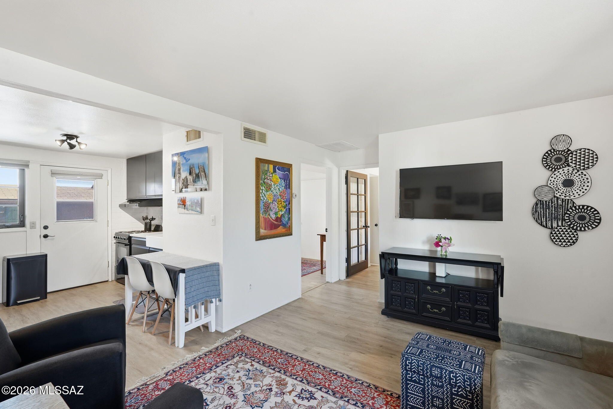 Discover easy desert living in this beautifully updated Villas West home. Newer flooring creates a cohesive look throughout while offering easy, low-maintenance living. The updated kitchen features an apron-front sink, modern faucet, abundant custom cabinetry, space for an island, and a cozy eating area--perfect for morning coffee or casual meals.The spacious guest room easily doubles as a bedroom or additional living space. The primary suite offers two closets and peaceful views of the quaint, covered front patio. Step outside to the manicured courtyard and enjoy relaxing afternoons in the beautiful Southwest weather. Recent improvements include new windows, a newer HVAC system, and a re-coated roof, adding comfort, efficiency, and peace of mind.