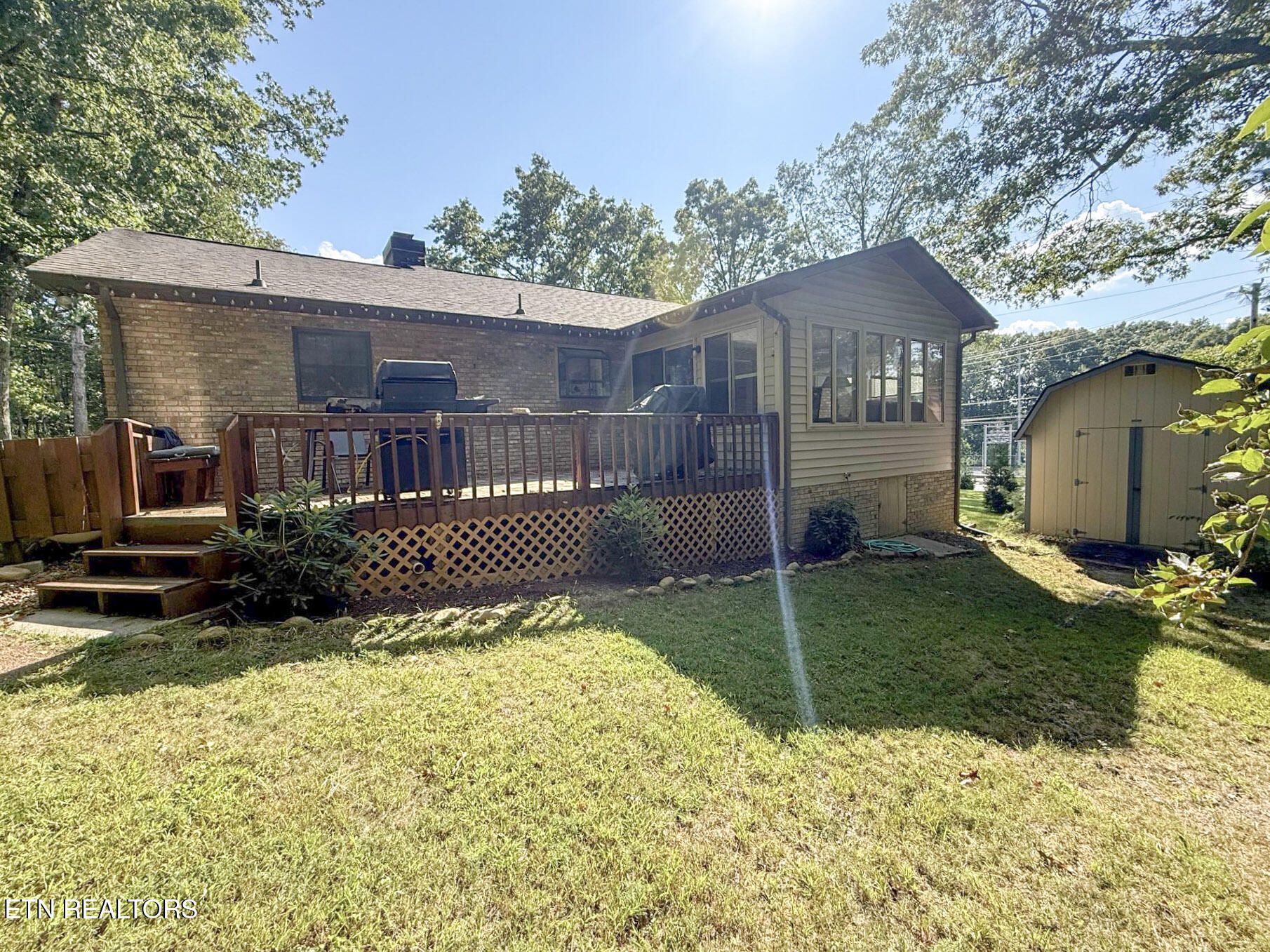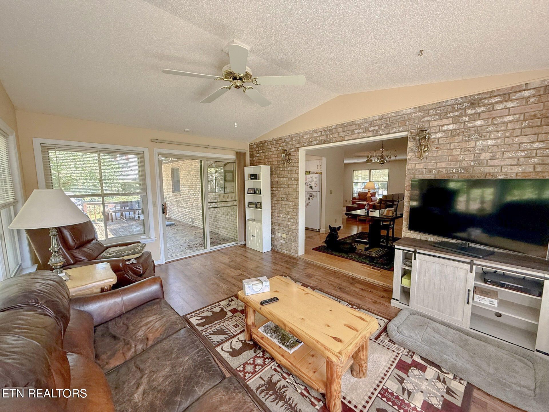 Welcome to this beautifully maintained 2-bedroom, 2-bath brick home situated on a spacious corner lot in the heart of Fairfield Glade. With thoughtful updates and inviting living spaces, this property offers both comfort and convenience. Step inside to find hardwood floors flowing through a bright, spacious living room complete with a cozy gas fireplace. The open-concept dining area connects seamlessly to the galley kitchen, featuring new cabinets, countertops, and a pantry. A utility room and attached one car garage and everyday practicality. Both bedrooms boast walk-in closets and ceiling fans, while the primary suite offers an updated en suite with a tile shower. The second bathroom also shines with new cabinetry and countertops. Enjoy year round relaxation in the gorgeous sunroom or entertain guests outdoors on the huge deck- perfect for grilling and gatherings. A storage shed provides additional space for tools and hobbies. This move in ready home blends comfort, style, and function- all at an incredible value! Don't miss the chance to make it yours! (Buyer to verify all information before making an informed offer.)