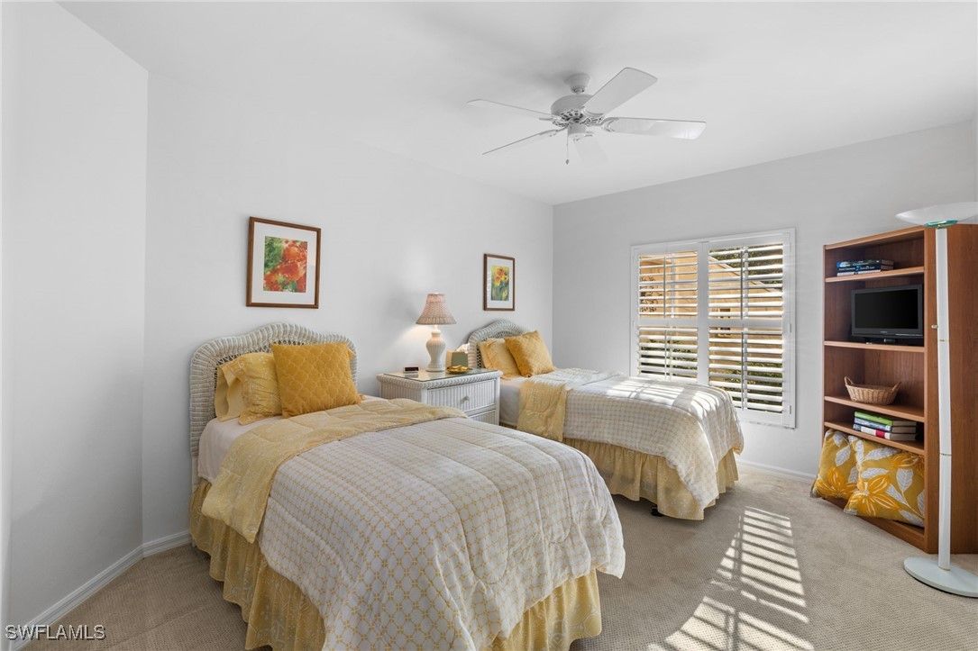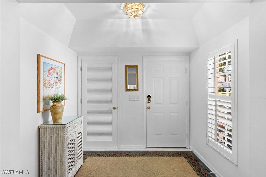 First-floor, no-stairs condo in charming Tuscany at The Vineyards—a tranquil enclave nestled among mature landscaping. Enjoy a glass-enclosed lanai with peaceful views and glimpses of the lake. This 2-bedroom + den, 2-bath home offers a spacious split-bedroom floor plan with excellent privacy for guests and flexible living. The den is currently used as a guest space and also works beautifully as an office or hobby room. Storage is exceptional with two walk-in closets plus a foyer storage closet. Freshly painted with newer carpet (recently cleaned) and sold furnished/turnkey—your Naples getaway is ready to enjoy. Convenient carport parking nearby, with plenty of guest parking available. Tuscany offers a welcoming lifestyle with a clubhouse, pool, BBQ/grilling area, and bike storage. Optional membership opportunities are available at Vineyards Country Club, featuring golf, tennis, dining, and a 15,000 sq. ft. Wellness Center & Spa with a fitness center, café dining, spa/salon services, and an outdoor half-Olympic saltwater lap pool. (Golf membership is optional—not mandatory.) Ideally located near Crossroads Market, across from Physicians Regional Medical Center – Pine Ridge, and close to I-75 for quick access to RSW International Airport. Enjoy a short drive to Vanderbilt Beach and a short drive to Downtown Naples & Fifth Avenue South for dining, boutiques, galleries, and entertainment.