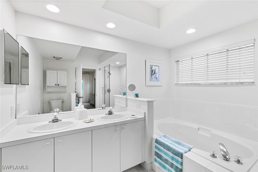 - Breakfast Bar, Bathtub, Dual Sinks, Entrance Foyer, Living/Dining Room, Separate Shower, Walk-In Closet(s), Window Treatments, High Speed Internet, Split Bedrooms