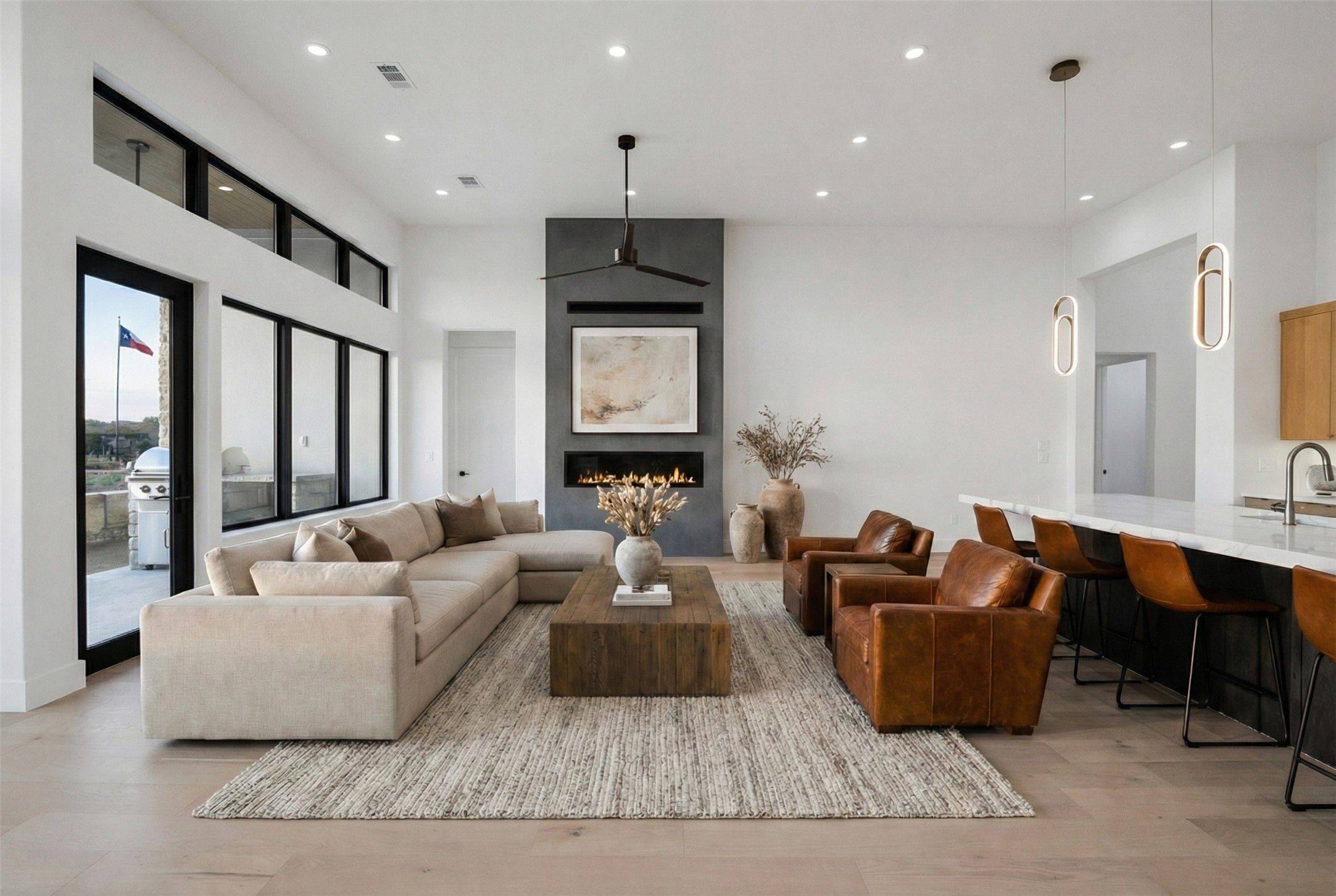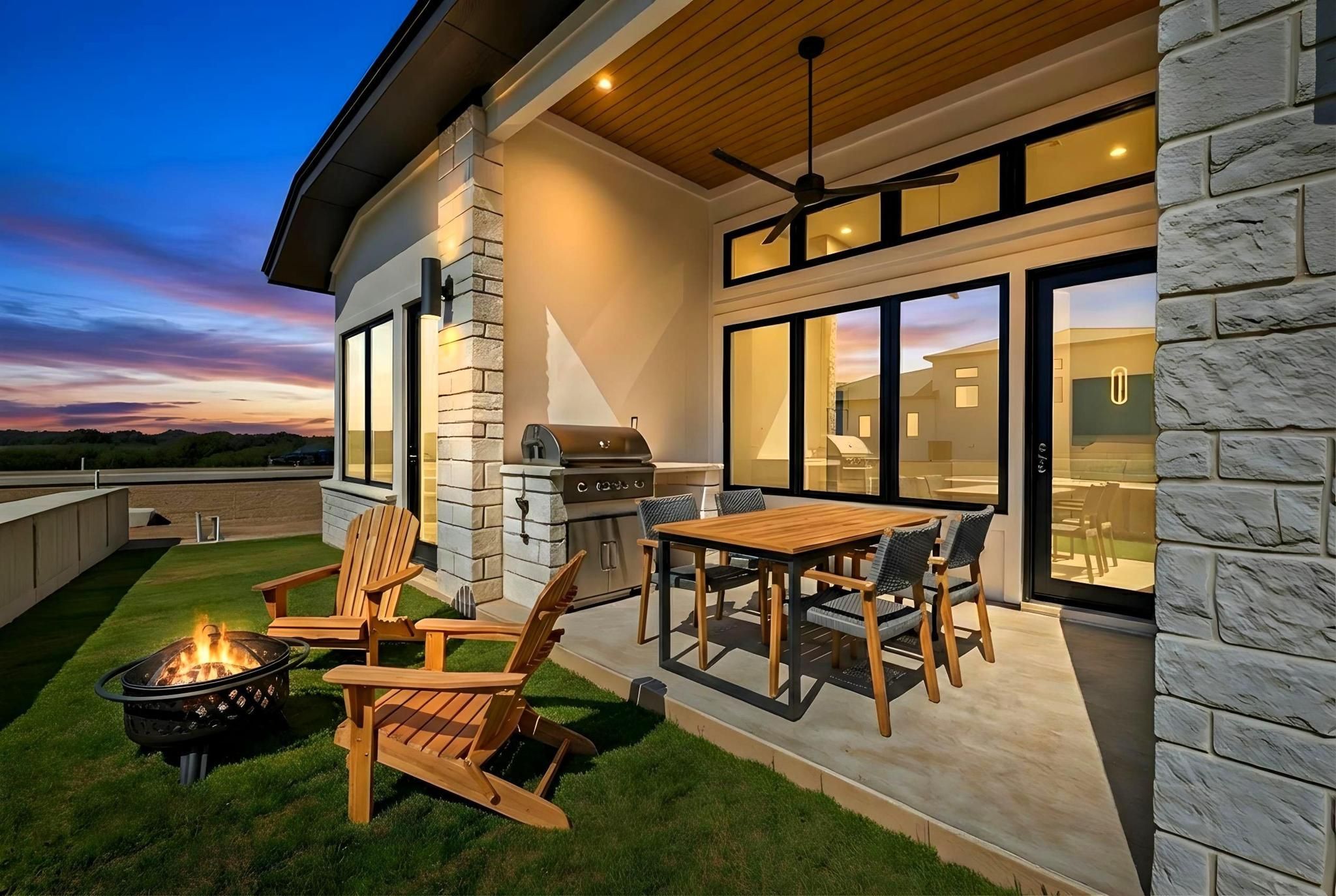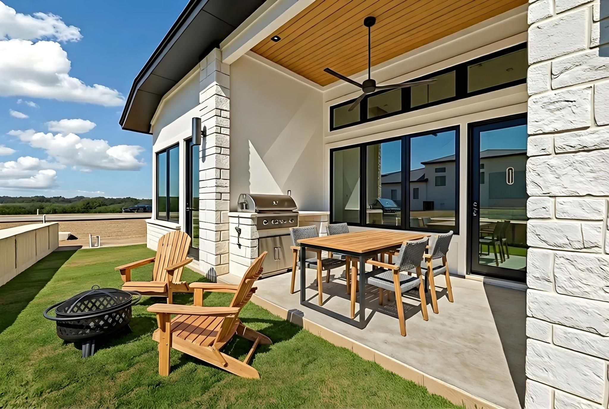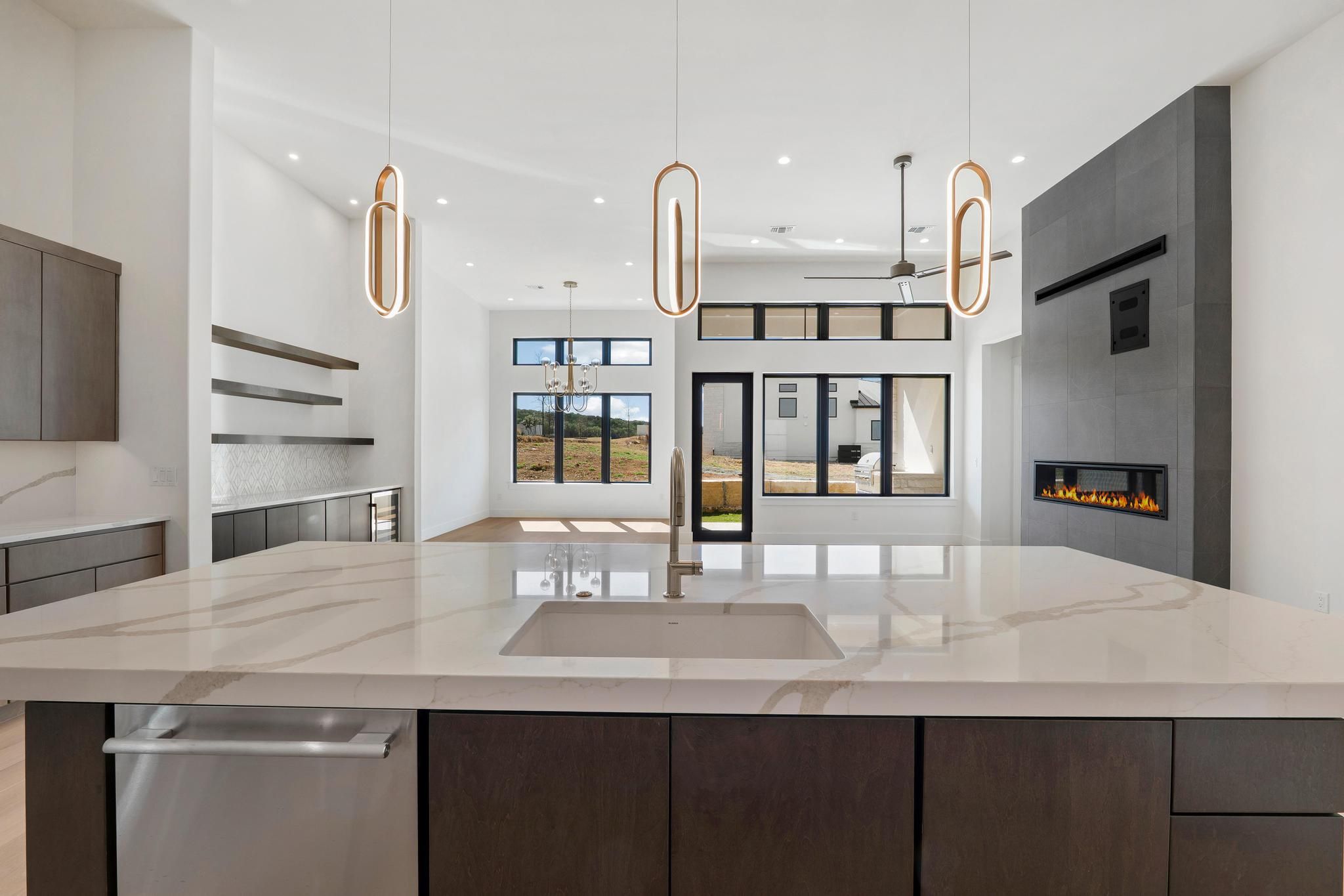 Welcome to 103 Via Roma, an exceptional new construction home in Tuscan Village at Summit Rock Estates, a premier 55+ active adult resort-style community nestled in the peaceful beauty of the Texas Hill Country. Thoughtfully designed with contemporary elegance and comfort in mind, this residence offers refined living in a serene setting. The open-concept floor plan features three bedrooms, three bathrooms, and a two-car garage. The inviting family room showcases a sleek linear fireplace set against a striking tile feature wall, while expansive sliding glass doors create seamless indoor-outdoor flow for effortless entertaining and relaxation. The gourmet kitchen is a chef’s dream, appointed with quartz countertops, abundant cabinetry, and a spacious dining area. A separate prep kitchen with a second sink and additional storage enhances functionality and convenience. The luxurious primary suite serves as a private retreat, complete with a spa-inspired bath featuring dual vanities, a soaking tub, walk-in shower, and a generous walk-in closet. Residents of Tuscan Village enjoy exclusive resort-style amenities including a gated entrance, community pool, pickleball and tennis courts, fitness center, and beautifully maintained grounds Experience low-maintenance luxury living in one of Horseshoe Bay’s most desirable communities. As an added bonus, a developer paid Links Level initiation waiver for The Club and Horseshoe Bay upon membership approval and a $25,000 Discretionary Package is included.