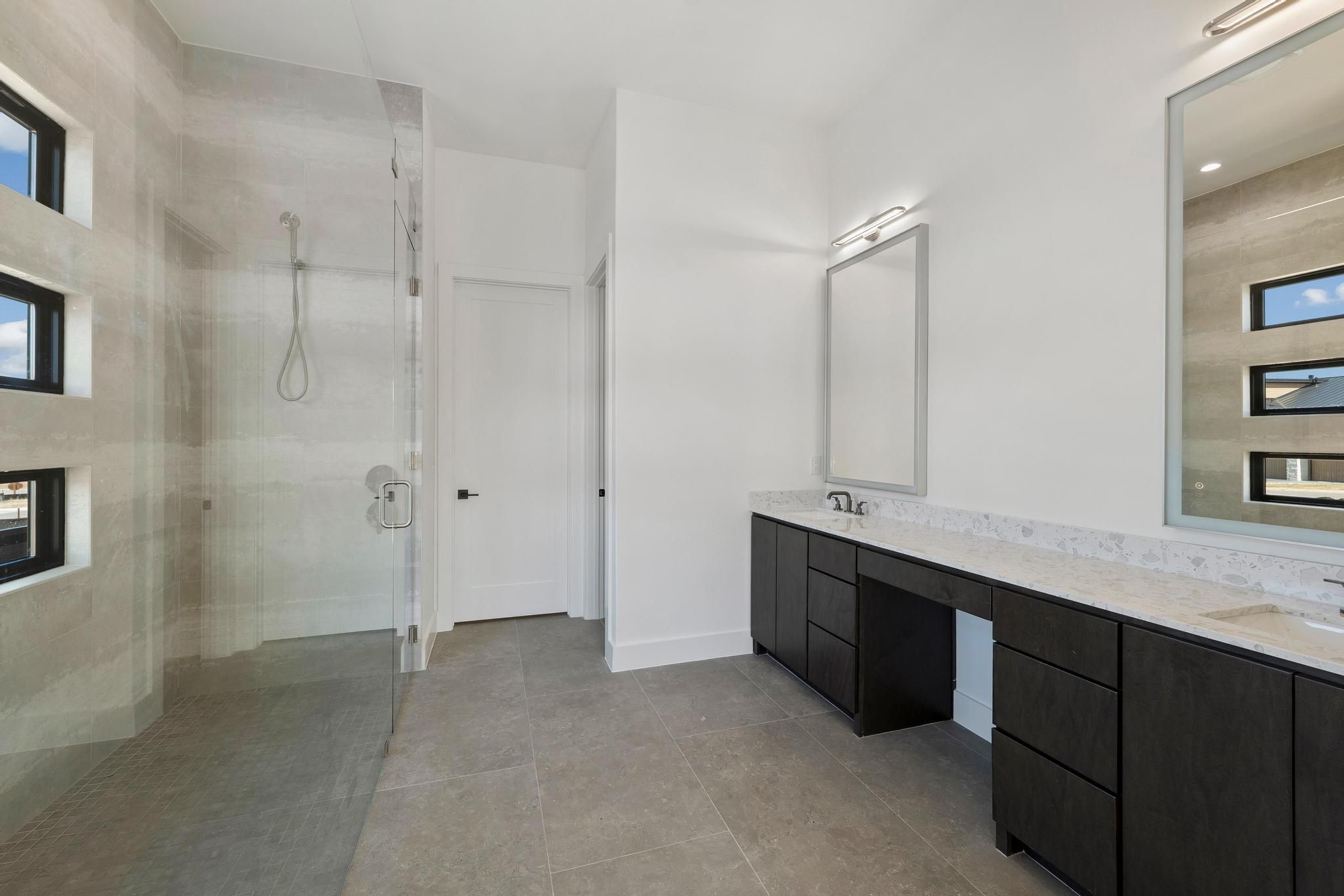- Ceiling Fan(s), Chandelier, Crown Molding, Double Vanity, Entrance Foyer, High Ceilings, Kitchen Island, Main Level Primary, Open Floorplan, Pantry, Quartz Countertops, Recessed Lighting, Soaking Tub, Walk-In Closet(s)