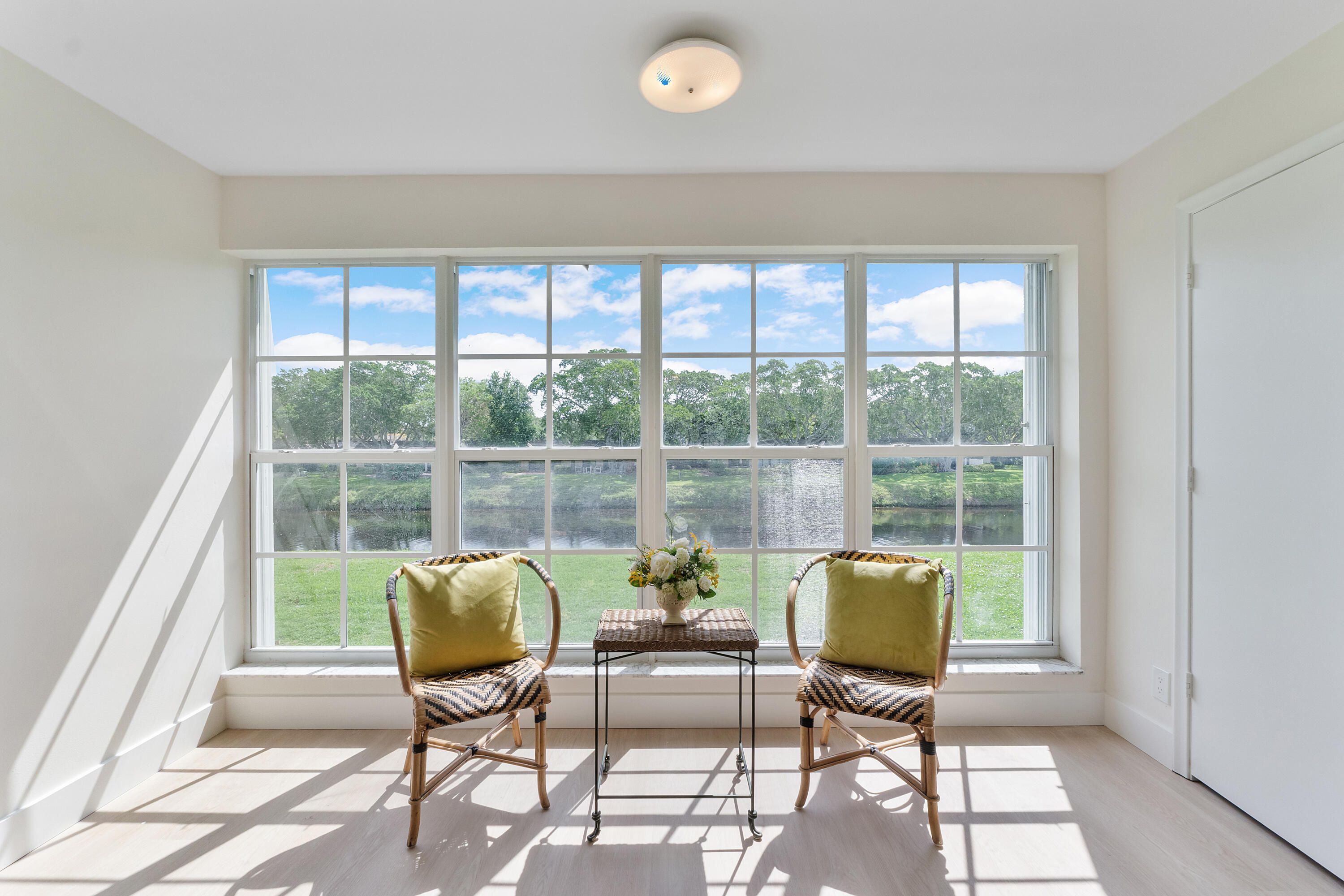 Sunny light completely remodeled waterfront..navigable canal view that will delight you with glorious morning sunrises..A corner apartment with extra windows and cross ventilation...blond wood floors throughout.Sophisticated appliances to delight the user. Vey active friendly senior community that will attract you to the many amenities and clubs . A fiscally sound community with full reserves.Be close to bustling Atlantic Avenue and 5 supermarkets within one mile..other large stores within i mile. Frolic at the beach only 2 miles away