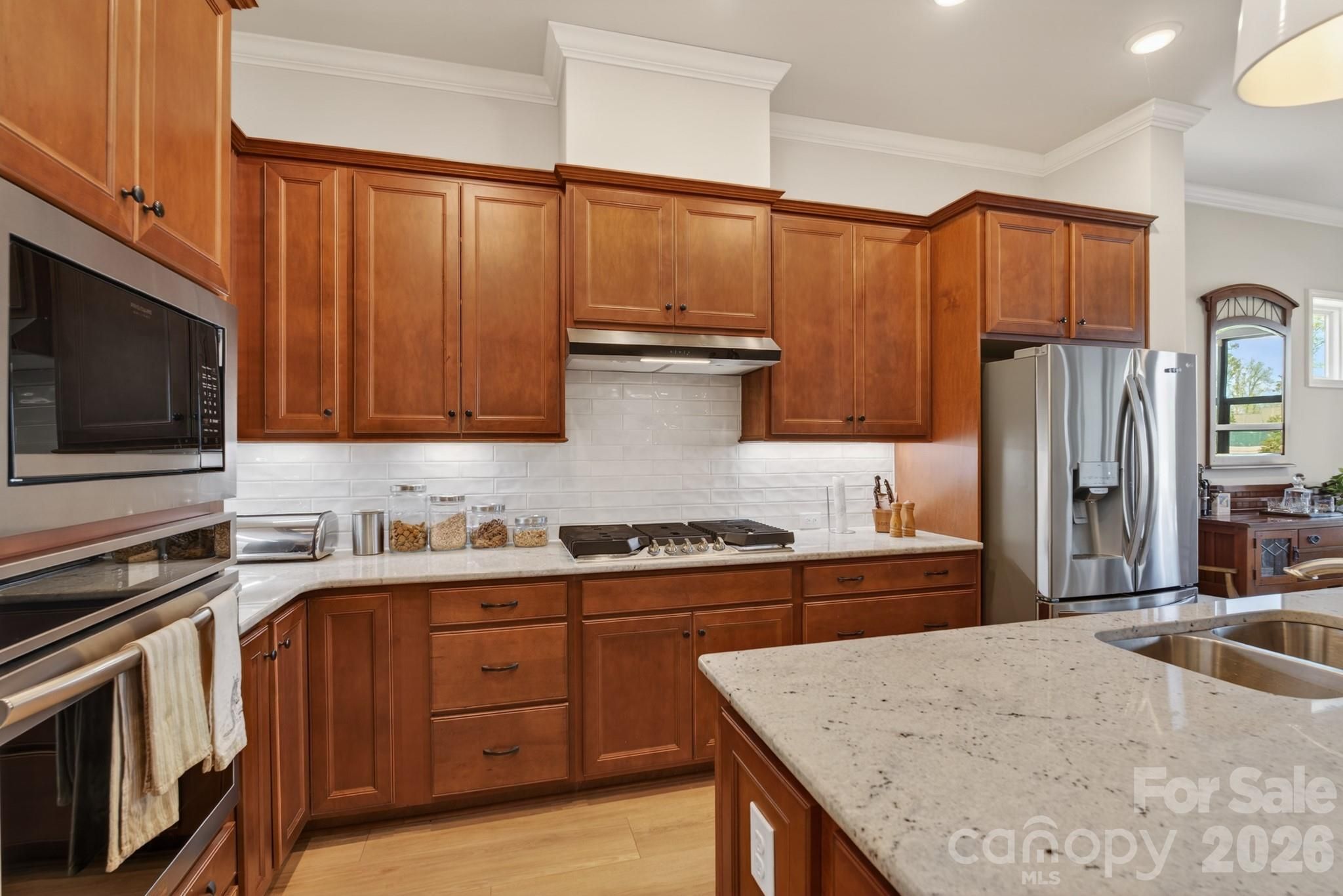 - Dishwasher, Disposal, Electric Oven, Exhaust Hood, Gas Cooktop, Microwave, Self Cleaning Oven