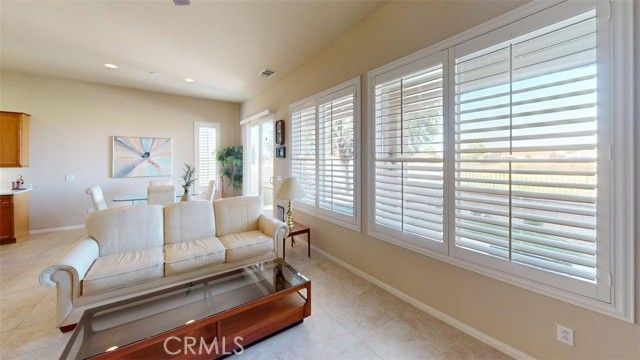 PRICE IMPROVEMENT!!! Welcome to this stunning home in the Sun City by Del Webb Community, a true gem offering picturesque golf course view with an active 55+Community. This 1,544 sq ft residence features 2 bed, 2 bath and a versatile bonus room that can serve as an office or additional guest room. Enjoy the open floor plan with abundant natural light and high ceilings. The kitchen boasts Corian counters, maple cabinets and a large breakfast island with ample storage space. The primary suite offers golf course views, a spacious ensuite with double sinks, and a huge walk-in closet. Additional highlights include beautiful tile floors, a indoor laundry, dual pane windows with shutters, 2-car garage, low maintenance yard. This home has tons of storage with 2 large storage closets and a large linen closet. The extended covered patio is perfect for relaxation offering cool shade in the heat of the day. Experience security, Community, and convenience with gated access, Ashwood Golf Course, fitness center and clubhouse, pools/spa, and proximity to entertainment, shopping, and medical facilities. Your ideal home awaits!