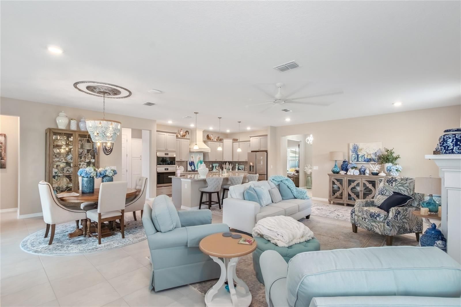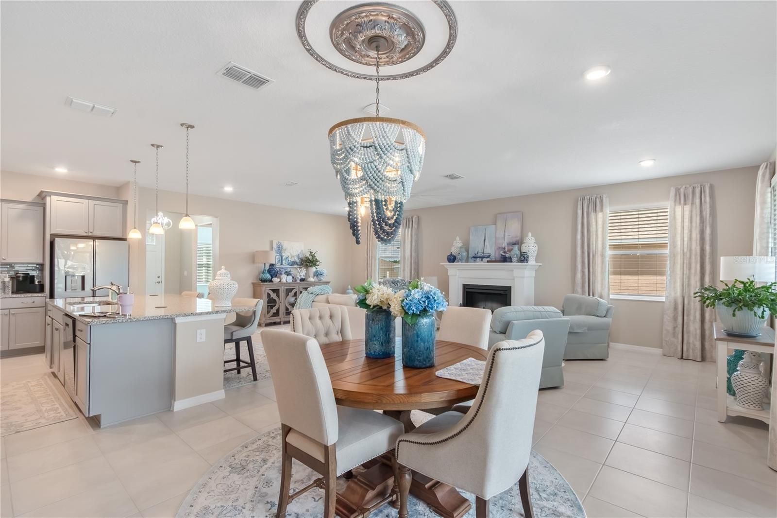 - High Ceilings, Kitchen/Family Room Combo, Open Floorplan, Main Level Primary, Smart Home, Solid Surface Counters, Walk-In Closet(s)