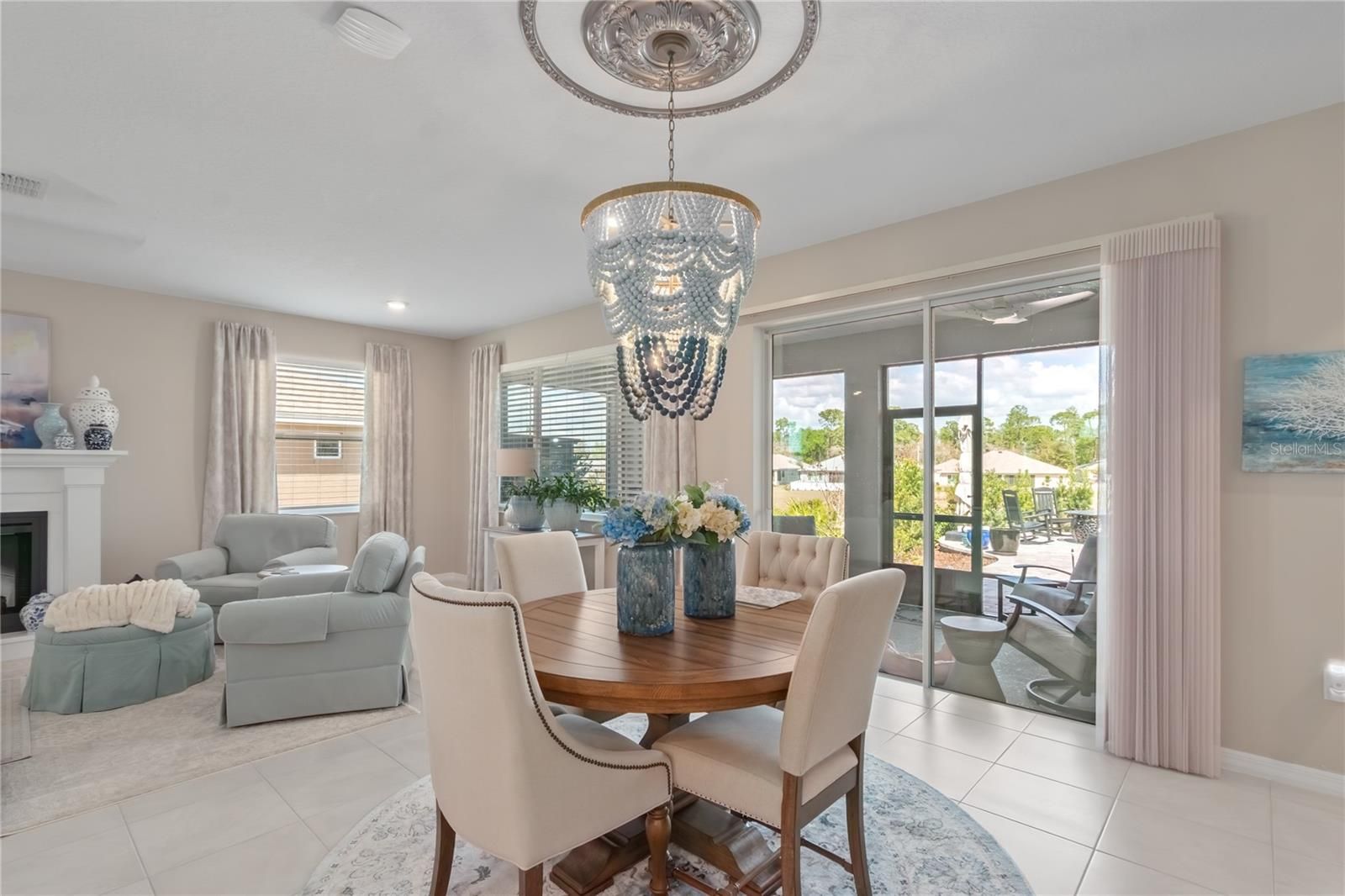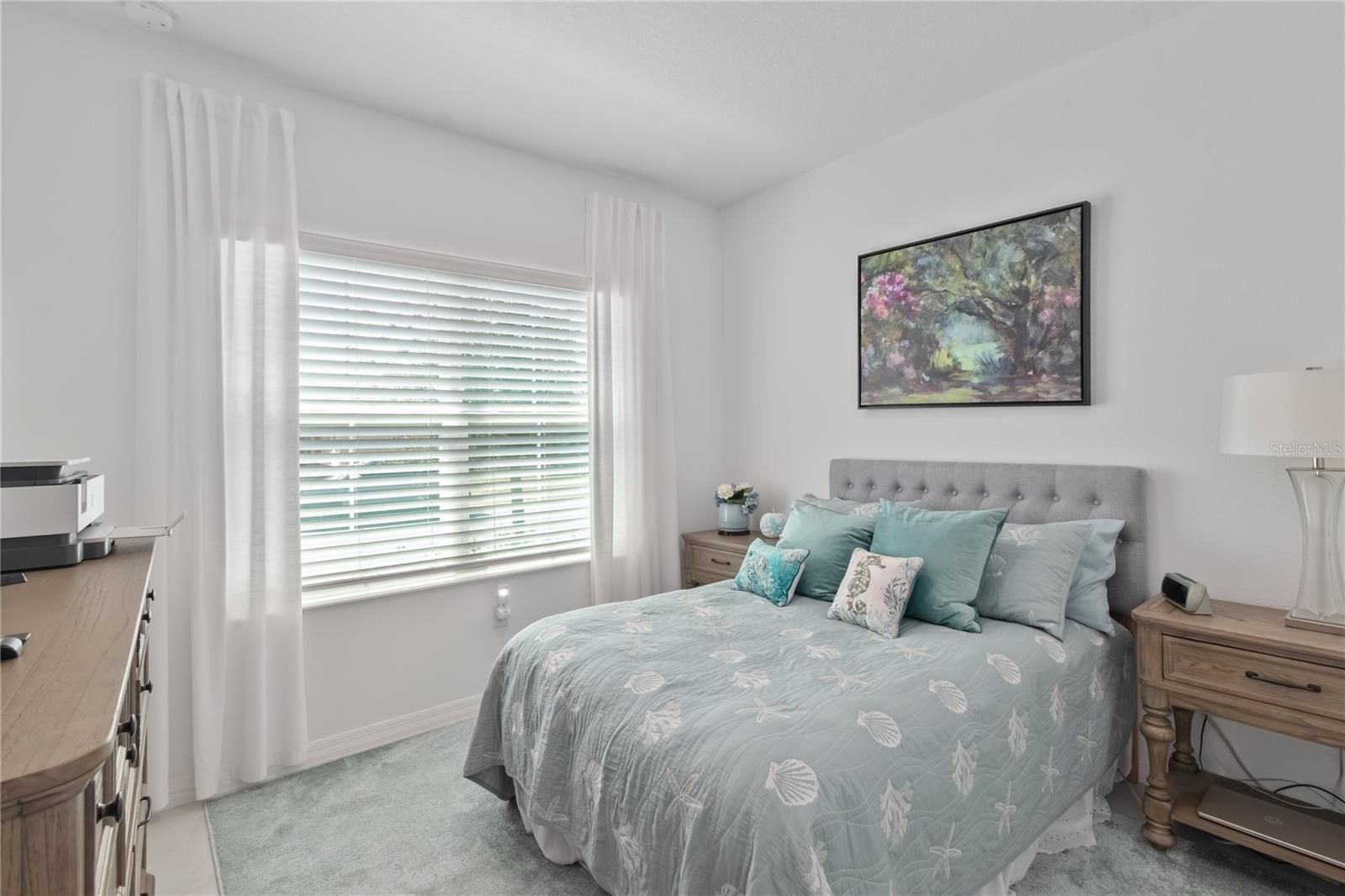 Stunning 2-bedroom, 2-bath home with a versatile flex room, ideally situated on a private lot offering a tranquil setting. The beautifully hardscaped backyard features a paver patio and outdoor grilling area, perfect for relaxing or entertaining. Inside, the gourmet kitchen is a standout with GE Café appliances, a custom range hood, granite counters, staggered cabinets with pot drawers, and tile floors throughout the home. The living area is enhanced by a cozy electric fireplace and the home has custom window treatments throughout. The extended garage features epoxy floors, a water line for a second refrigerator and added functionality. Additional upgrades include gutters, a water softener, and an alarm system, making this home as practical as it is elegant.